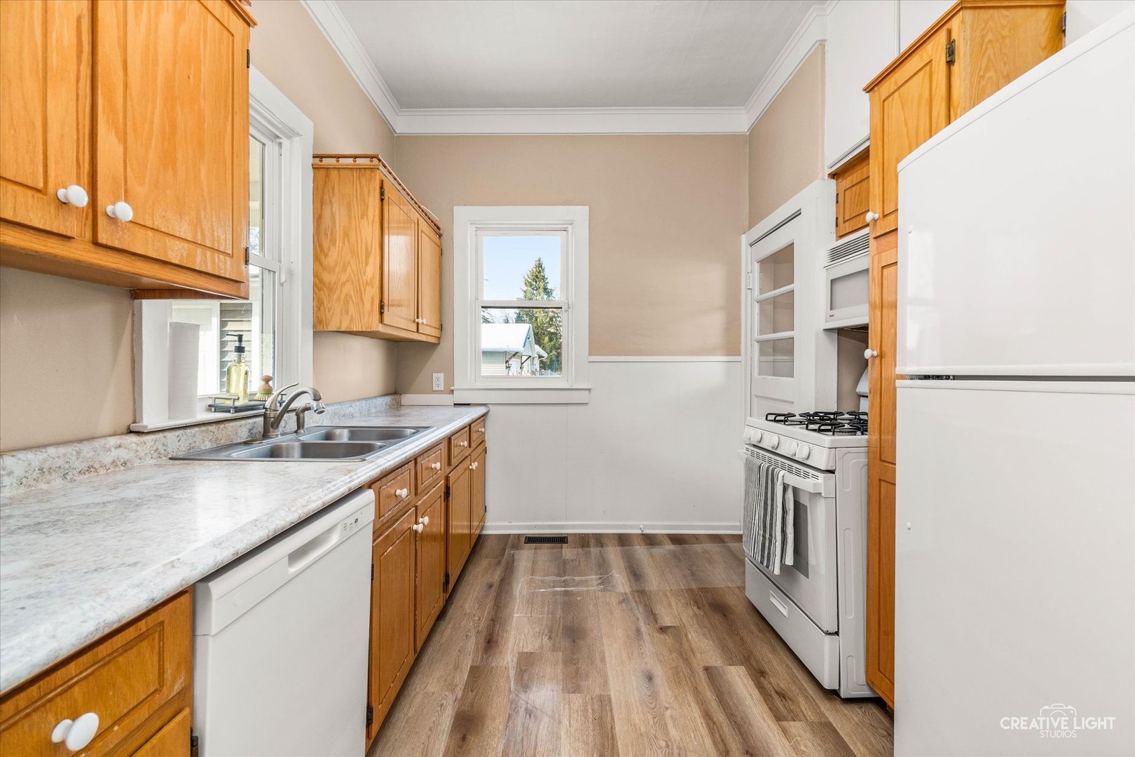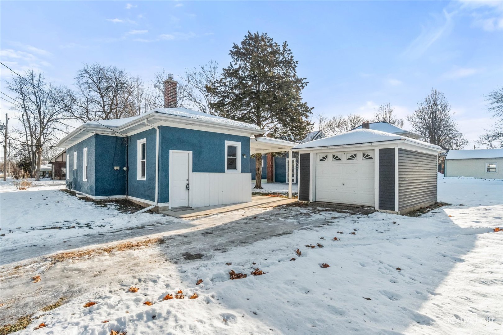 Charming 3-bedroom, 1-bath home situated on a desirable corner lot, offering added space and curb appeal. Step into the inviting living room featuring a built-in bookcase that adds warmth and timeless character. The separate dining room includes a classic corner hutch, perfect for displaying cherished pieces. The galley-style kitchen is efficient and functional, while the enclosed side porch offers flexible use as a mudroom, seasonal sitting area, or hobby space. Recent updates include brand-new carpet and durable LVP flooring throughout, giving the home a fresh, move-in-ready feel. A full basement provides ample storage, and the 1-car detached garage adds everyday convenience. Ideal for first-time buyers, downsizers, or investors seeking a solid opportunity, this corner-lot home offers both charm and versatility. Schedule your showing today and imagine the possibilities.
