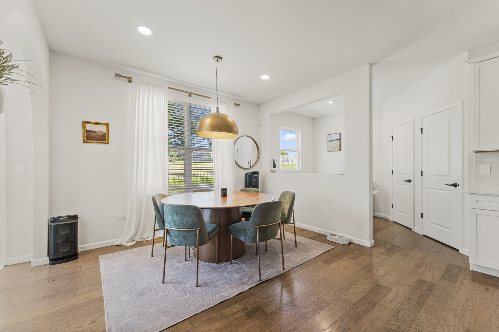 Beautiful 4 bedrooms, 2,5 bathrooms house in a gorgeous newest community in an ideal location near shopping, dining and in Lake Zurich School District 95. This house was built in 2022 and even more modern touch ups were added in 2024. Backyard completely redone with the built-in grill, bar and fence in 2024, living room also updated in 2024 with a wonderful fireplace, new staircases, can lights etc. This is a two-story home with plenty of living space for family and for entertaining. As you enter the foyer, on the left is a flex room that you can use as an office, den or 5th bedroom – your choice. First floor features the great room, dining area, kitchen with built-in SS appliances and granite counters with a ceramic tile backsplash plus a large island with room for seating. Second floor features spacious master bedroom with private luxurious bath, a double bowl vanity, quartz counters and separate shower with glass door plus a soaking tub, 3 other bedrooms, second bathroom and a large loft that is perfect for movies or family games. Additional this house will surprise you with a bright airy sun room, full 9′ unfinished basement, engineered wood floors and more. Also the garage is equipped with an electrical vehicle charger. This is just a great house in a great area! Do not miss it!