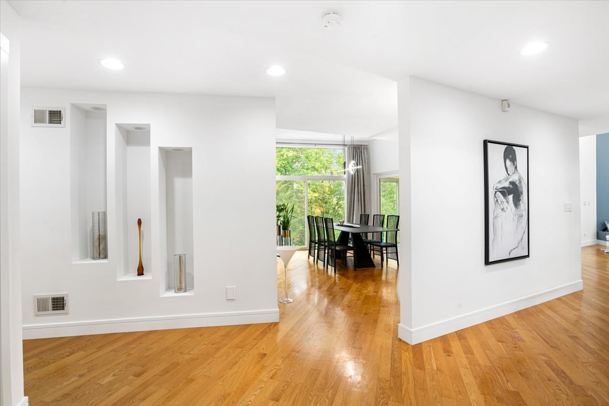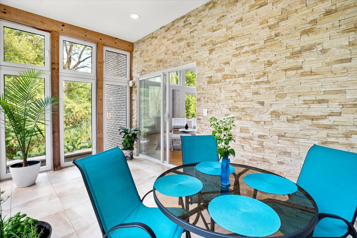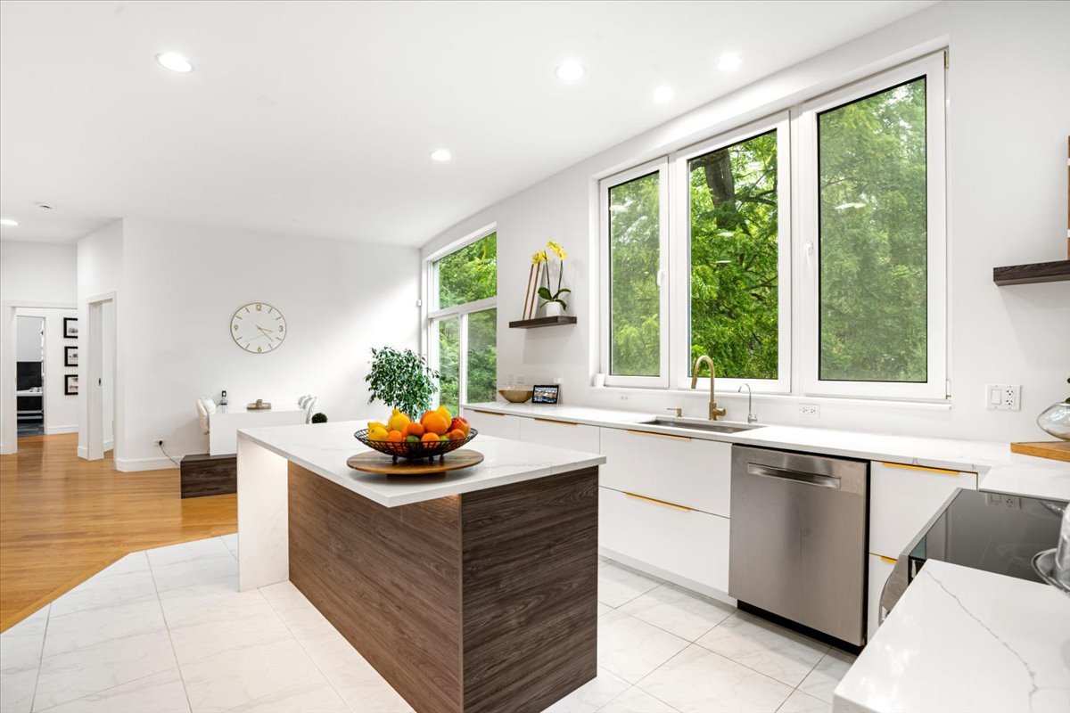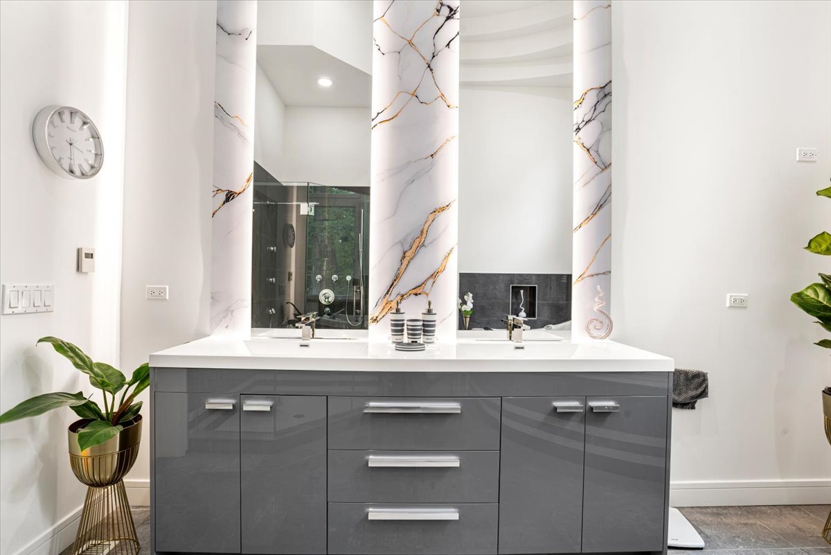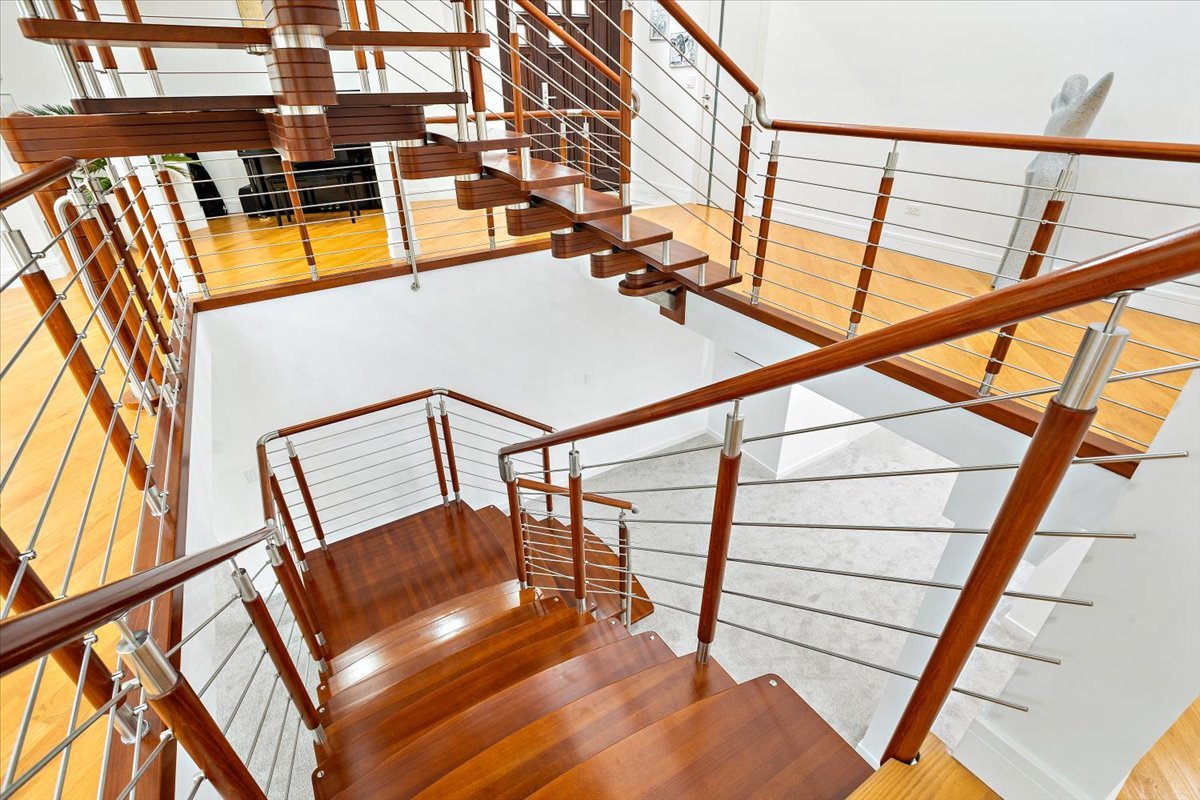 Welcome to this iconic modern home nestled on 1.62 private wooded acres in sought-after Kildeer, just minutes from Deer Park’s premier shopping, dining, and entertainment. Built in 2007 and meticulously maintained by its original owners, this 4,000+ sq ft residence is a masterclass in elevated European-inspired design – where modern lines meet warmth, natural light, and elegant finishes. From the moment you arrive, the striking roofline and sculptural geometry set a bold tone. Inside, the drama continues with soaring 17-foot ceilings, gallery-white walls, and a showstopping custom Italian floating staircase that anchors the heart of the home. Walls of glass in every direction bring the outside in, flooding the home with light and framing the surrounding woods like art. The chef’s kitchen is sleek and refined – outfitted with waterfall quartz countertops, flush cabinetry, brushed gold hardware, and integrated appliances. Oversized windows and an open-concept layout flow into the living room, where a modern painted fireplace adds understated warmth and sophistication to the minimalist space. Elegant oak floors, cable-railed stairways, and subtle tiered ceilings amplify the architectural presence throughout. The first-floor primary suite is a true private sanctuary, featuring sliding doors to the yard, soaring windows, and a luxuriously appointed spa bath with radiant heated floors. Relax in the jetted soaking tub with full-body massage jets, or step into the large walk-in shower with dual sprayers and custom tilework. Marble-inspired backlit backsplash and a designer double vanity complete the experience. A huge walk-in dressing room offers elegant built-in storage and boutique-style organization. A second main-level bathroom also features heated floors for added comfort. Additional highlights include a dedicated home office, full laundry room, and an attached garage that accommodates two cars, plus a third bay with a 9-foot-tall garage door ideal for a large SUV or specialty storage. The walkout basement offers even more potential to expand. No detail has been overlooked: German-engineered Rehau windows ,Hormann garage doors ,Imported Italian interior doors Hansgrohe and Swiss luxury faucets in all bathrooms. Behind the walls, comfort is ensured with: Three HVAC zones, Two new Carrier furnaces , Three A/C systems (two with new motors) High-performance -insulation: foam in the ceiling and blown-in wall insulation for superior efficiency. This is a rare opportunity to own a thoughtfully crafted, design-forward home that feels like a modern retreat – just minutes from the best of suburban life.