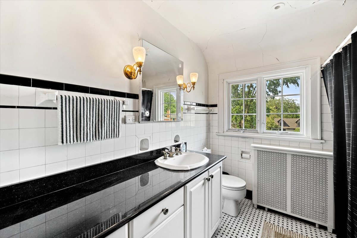 Look at this very charming, spacious all brick single-family home. OUR PREFFERED LENDER IS LOWERING THE INTEREST RATE BY HALF A PERCENT ON CONVENTIONAL FINANCING FOR THE FIRST YEAR AT NO COST TO THE BUYER(FLYER ATTACHED). The home has been thoughtfully upgraded, featuring Pella windows (2020), tuckpointing (2020), new soffits and fascia (2015), and copper gutters (2005). The electrical system, including service, panel, and wiring, was fully updated in 2005. A dual-zone high-velocity Unico AC system (2007) ensures comfort, while heating is provided by a boiler and radiators. Ceiling height is 8’5″ on both floors. Inside, the home impresses with arched doorways, a wide staircase, cove molding, and curved ceilings upstairs. The kitchen and bath showcase stone countertops and hand-laid woven basket pattern tile floors. French doors, hardwood floors throughout, fortress-like original wood doors, stained glass garage windows, and a back door canopy add distinctive character. The media room comes equipped with surround sound and an equipment closet. With ample storage, including a walk-in closet in the primary bedroom, and thoughtful design details throughout, this home is move-in ready.