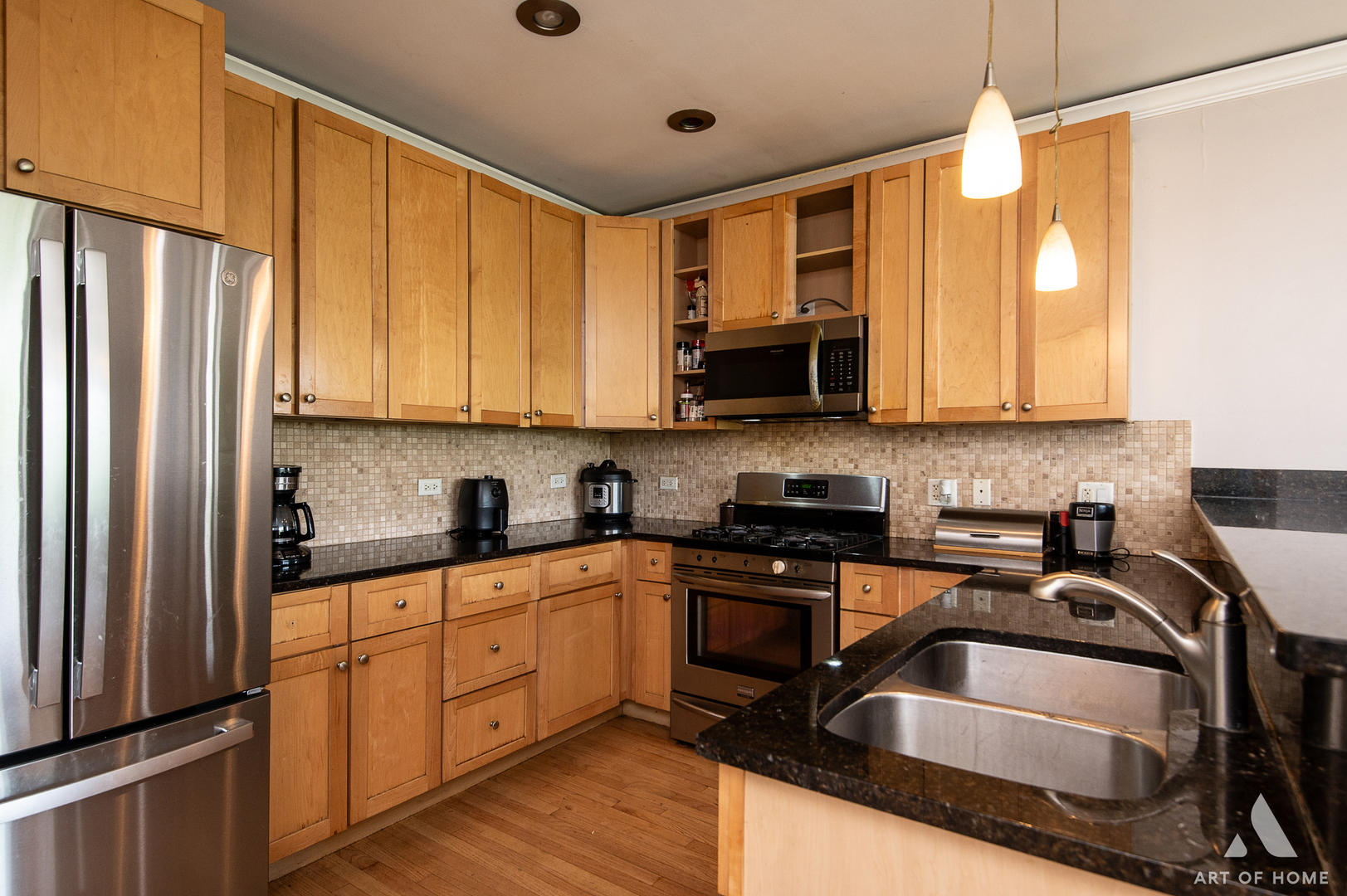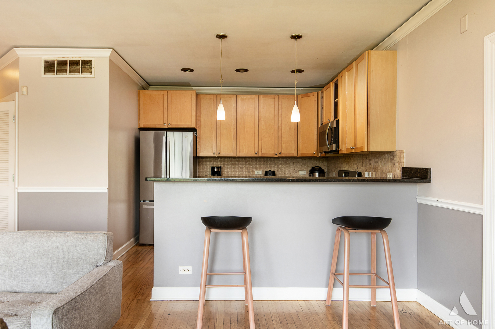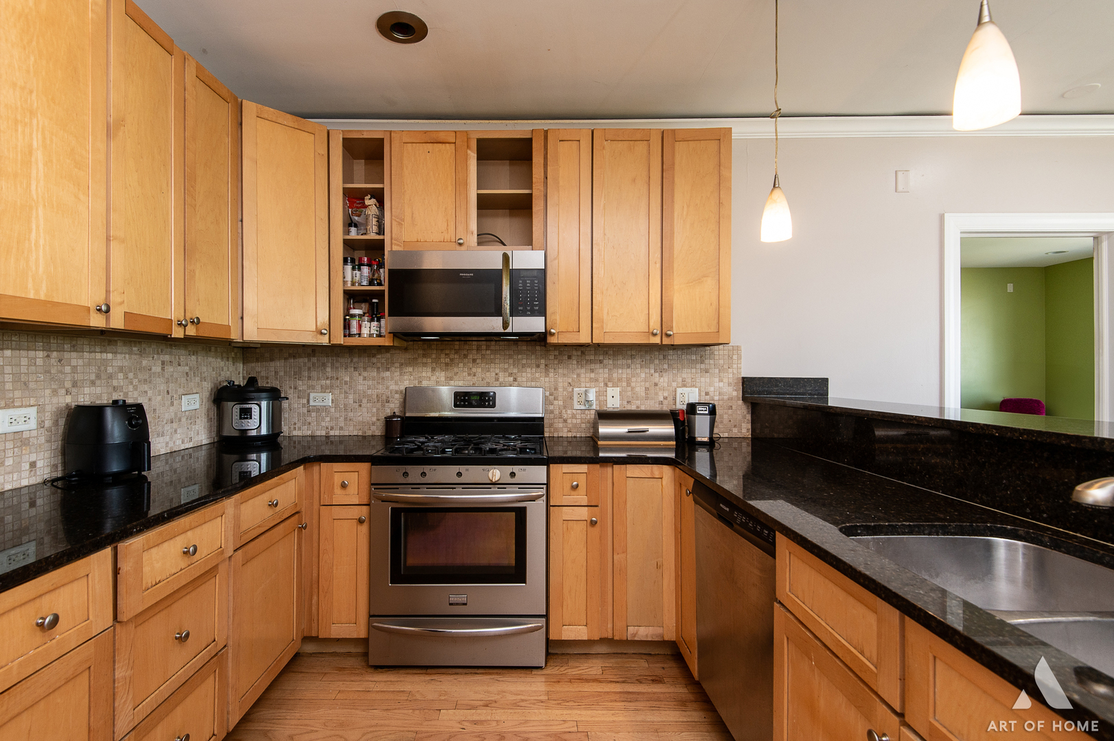 Don’t miss this rarely available 2 bedroom, 2 full bath home offering park views and city convenience. From your 14′ private balcony, enjoy Sain Park. Inside, the open layout features granite counters, a breakfast bar, 42″ cabinets, hardwood flooring, a cozy gas fireplace, and in-unit laundry. One garage space included. The secure, well-kept elevator building offers video intercom and a rooftop deck with breathtaking skyline views. Located minutes from Rush Hospital, UIC, I-290, Blue and Green line transits, Pete’s Market, United Center, and the city-approved $7B 1901 Project. Some cosmetic updates will make this a true gem. Sold as-is. Perfect for both owners and investors.