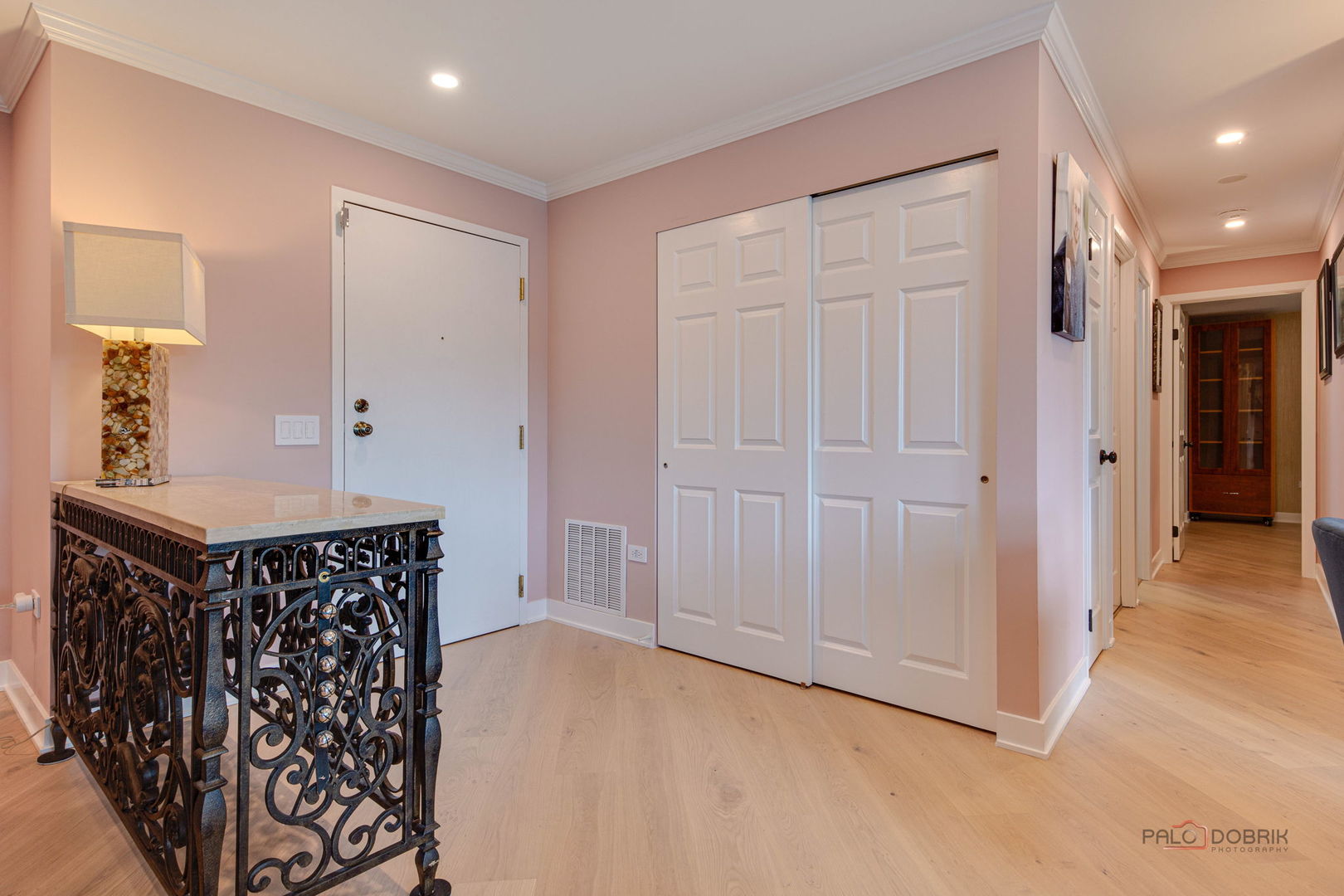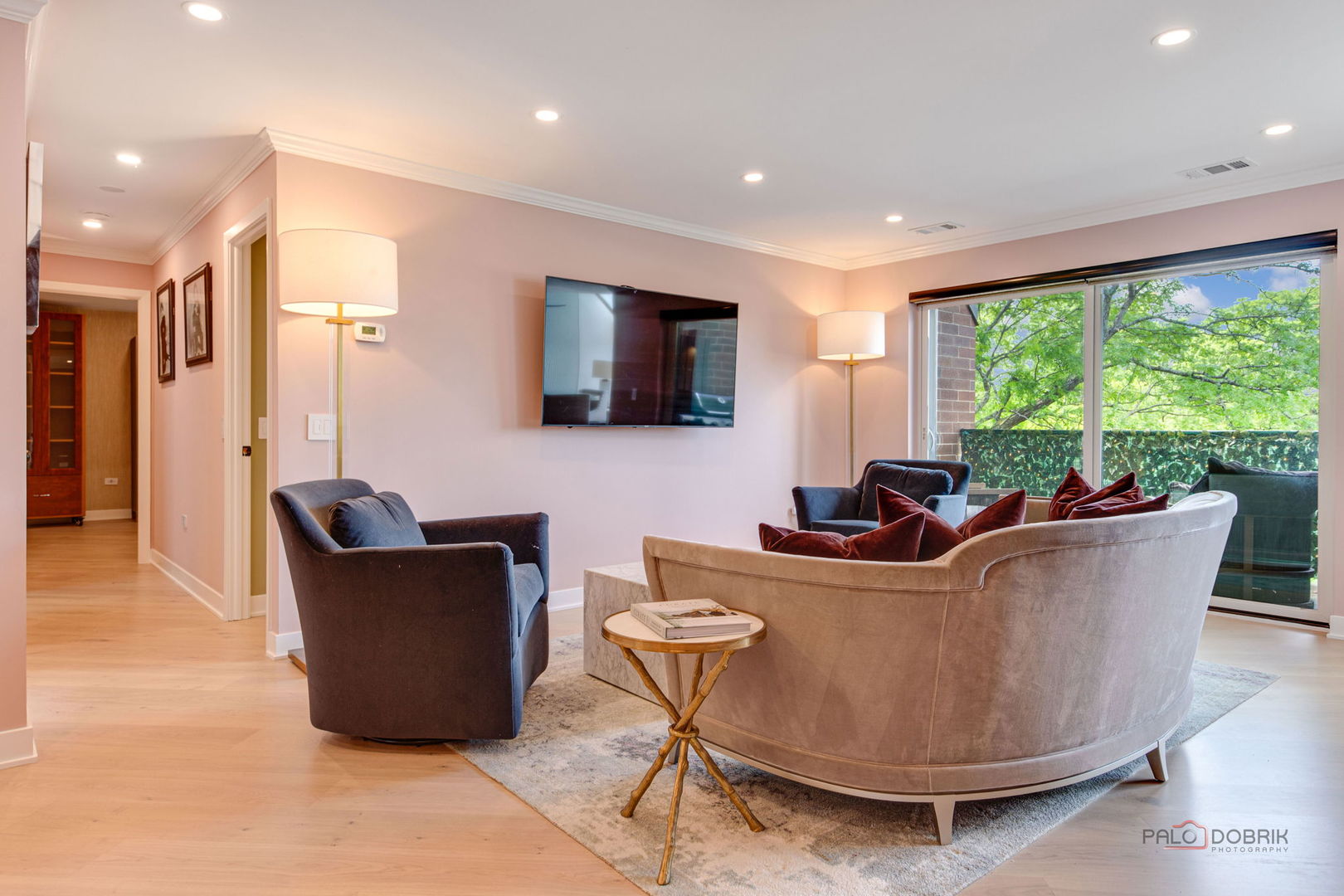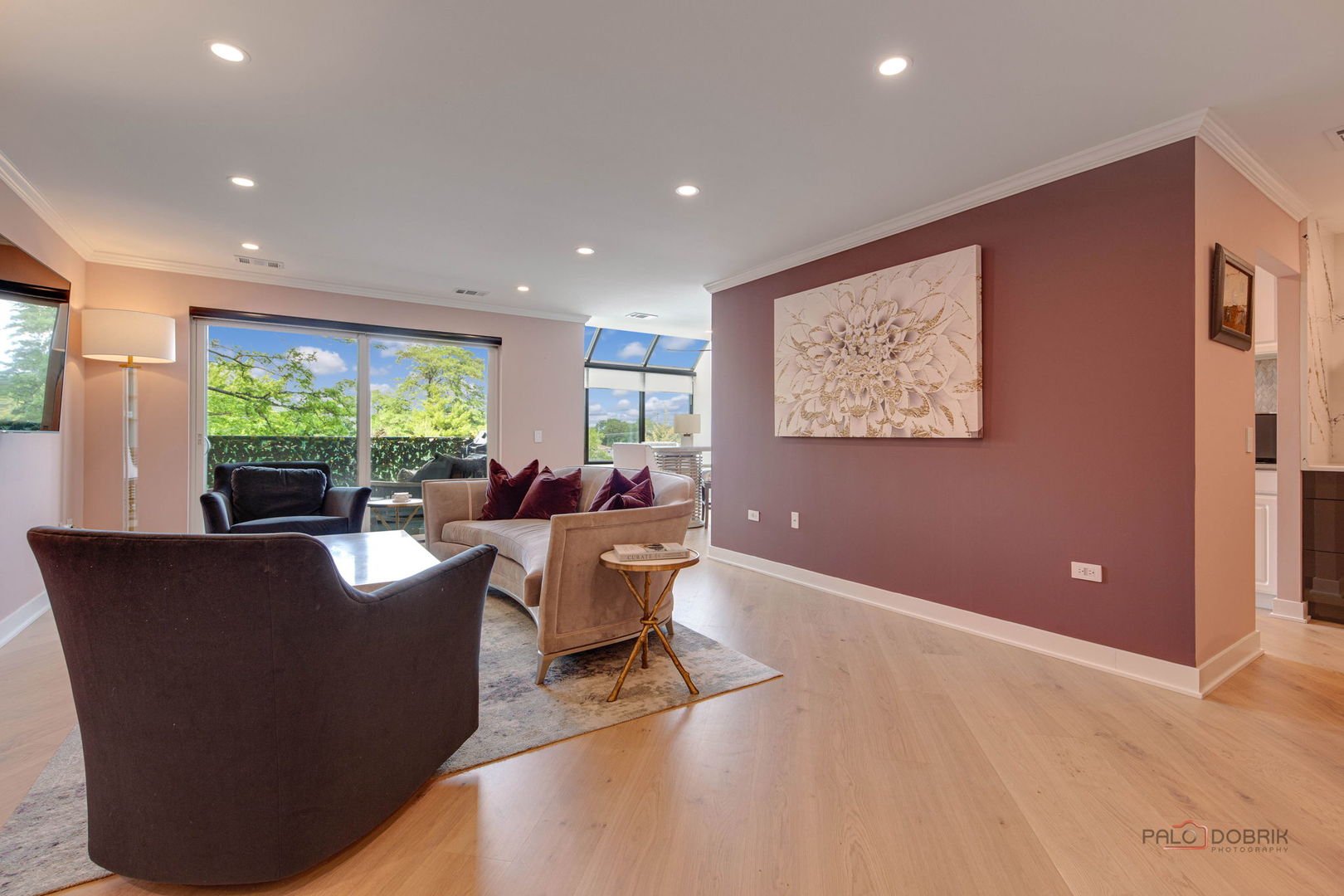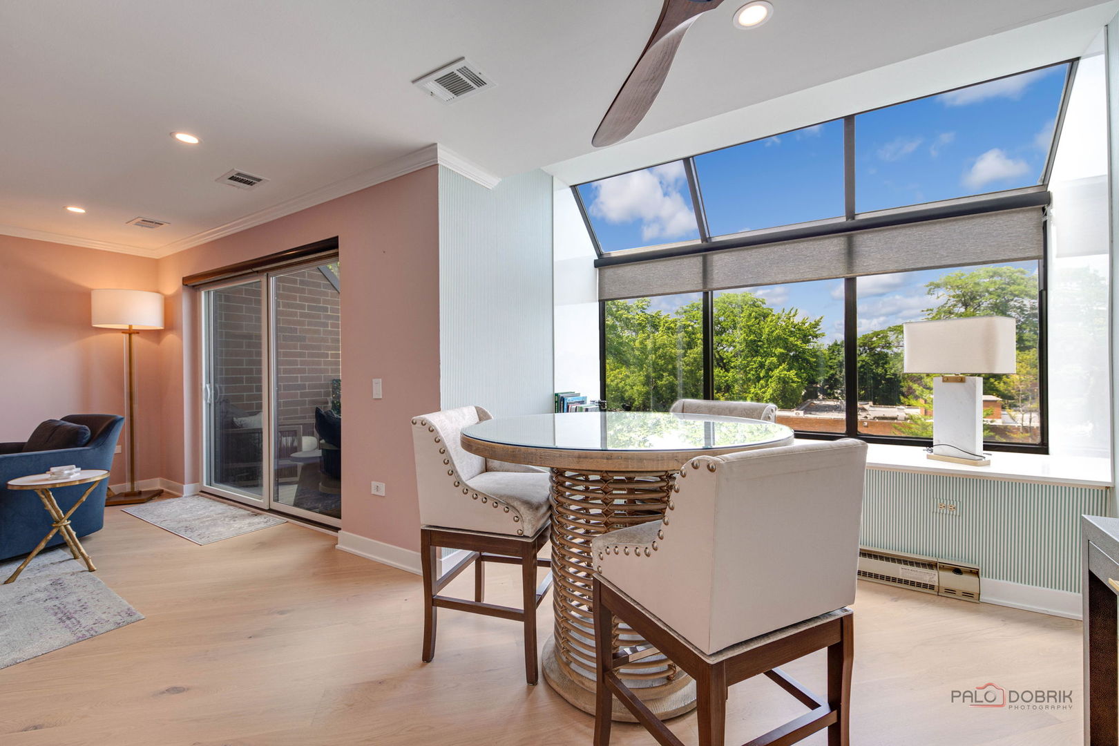 Stylish Unit #407 blends luxury with lifestyle. Top floor (4th level) of the Gallery Park Ridge Condominiums. This renovated 2 bed, 2 bath unit features a modern open layout, custom kitchen with 36″ induction cooktop, and a built-in entertaining buffet with wine & beverage fridges. Spa inspired baths with high end tiling & finishes. Primary en-suite featuring a steam shower and floor-to-ceiling tilework. Primary features two large custom closets. Updated mechanicals, private storage, and heated garage parking included. Move-in ready and truly one of a kind. Ideally located near the Dee Road Metra Station, convenient access to O’Hare International Airport, while still being moments from Uptown Park Ridge’s dining, shopping, library, and more. All set within a charming, tree-lined neighborhood, it’s the best of connected living and classic suburban ease.