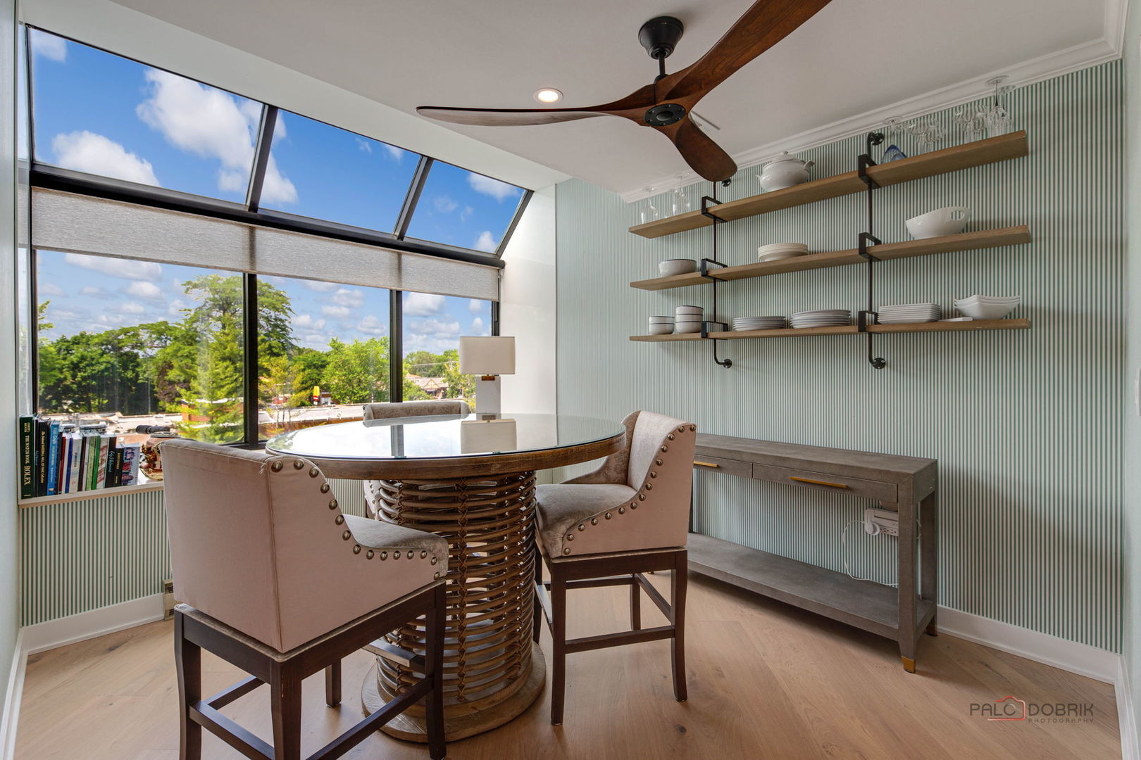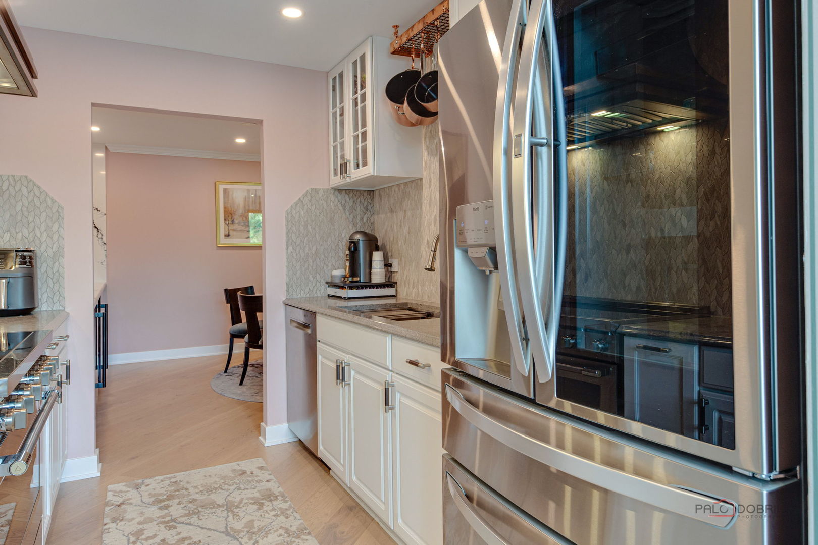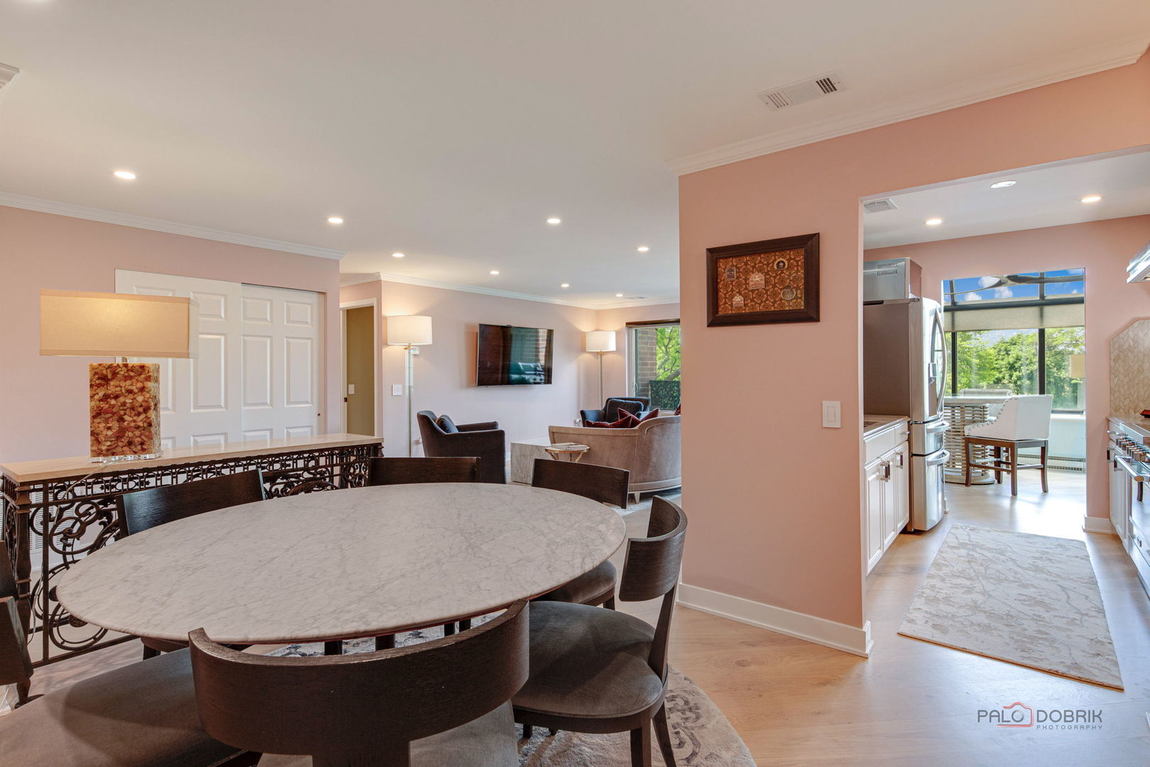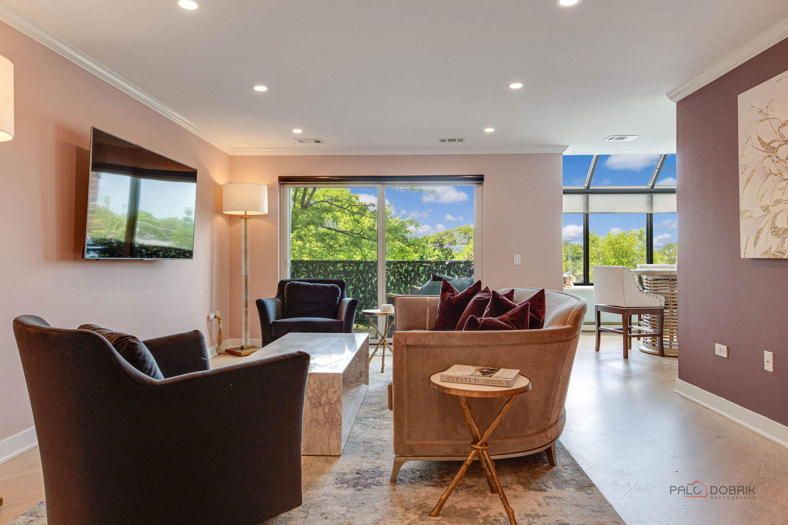 Stylish Unit #407 blends luxury with lifestyle. Top floor (4th level) of the Gallery Park Ridge Condominiums. This renovated 2 bed, 2 bath unit features a modern open layout, custom kitchen with 36″ induction cooktop, and a built-in entertaining buffet with wine & beverage fridges. Spa inspired baths with high end tiling & finishes. Primary en-suite featuring a steam shower and floor-to-ceiling tilework. Primary features two large custom closets. Updated mechanicals, private storage, and heated garage parking included. Move-in ready and truly one of a kind. Ideally located near the Dee Road Metra Station, convenient access to O’Hare International Airport, while still being moments from Uptown Park Ridge’s dining, shopping, library, and more. All set within a charming, tree-lined neighborhood, it’s the best of connected living and classic suburban ease.