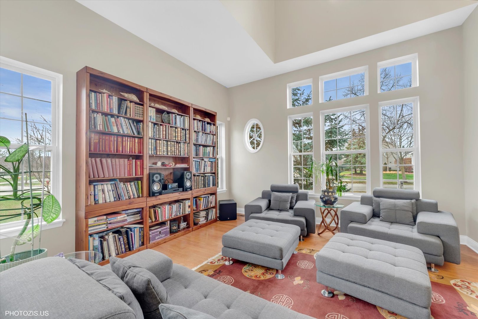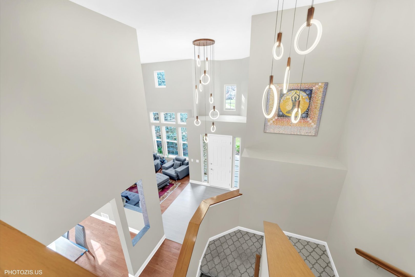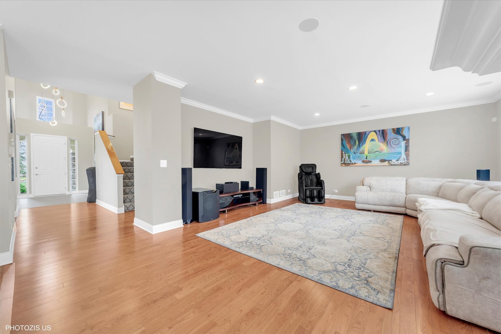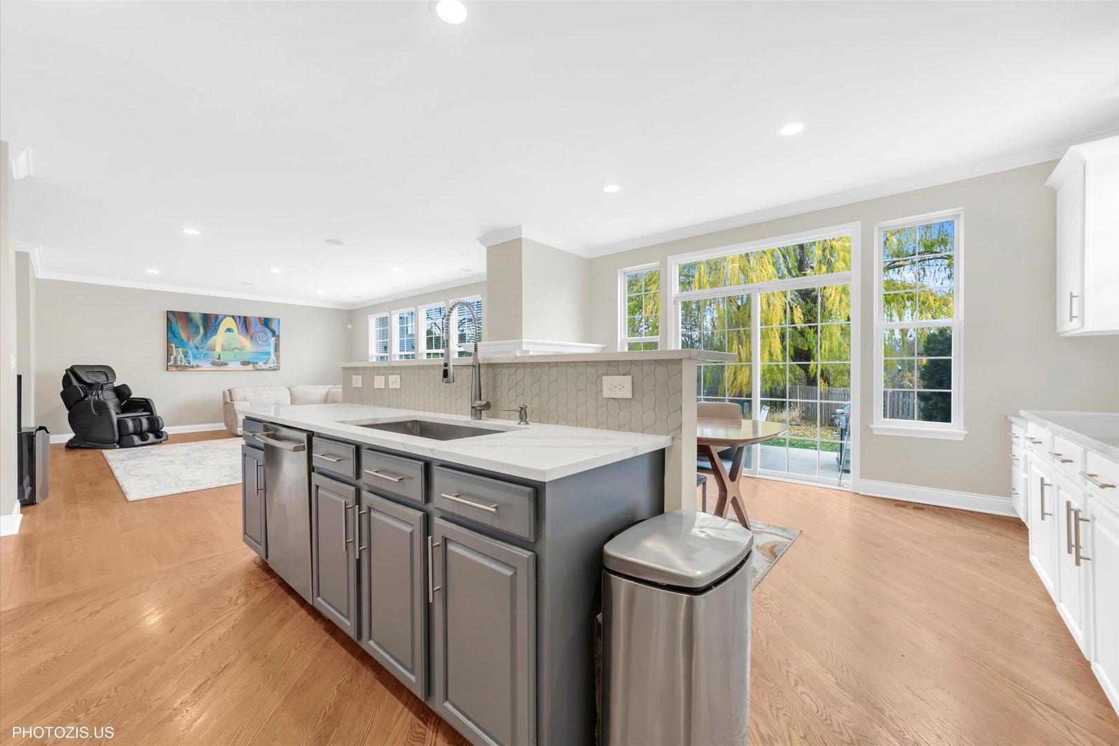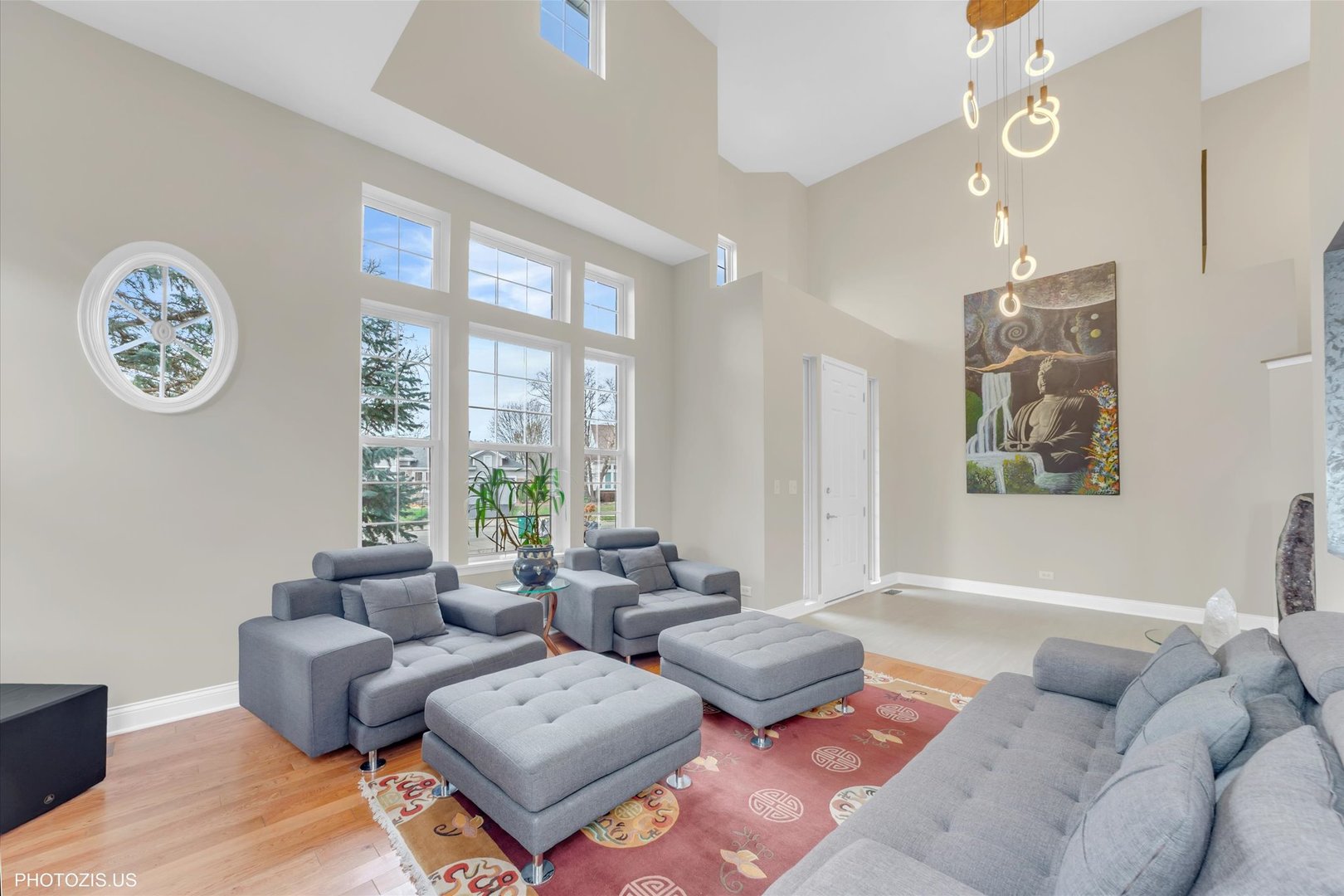 Beautiful Tressara Model in Mirielle – Stevenson High School District! Located on the largest lot in the subdivision, this updated 5-bedroom home features a striking light gray rock and Dryvit exterior and is just a short walk to Stevenson High School. The dramatic entry opens to a 18-foot living room ceiling and with 9-foot ceilings on the main level. The first floor offers hardwood floors, a three-sided fireplace connecting the family room and kitchen, and a first-floor bedroom/office with a full bath-ideal for in-law or guest arrangements. The remodeled 2020 kitchen includes 42-inch white cabinets and stainless steel appliances. The luxury primary suite features a separate shower, soaking tub, and walk-in closet. The full finished basement adds exceptional living space with a recreational room, meditation room, workout room, full bathroom, and an additional bedroom. Enjoy outdoor living on the expansive 650 sq ft concrete patio. Major updates include: roof (2019), zoned HVAC (2018), and exterior paint (2022). A wonderful home offering space, updates, and top-rated schools!