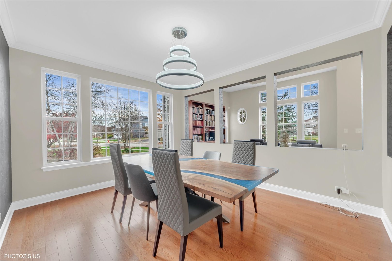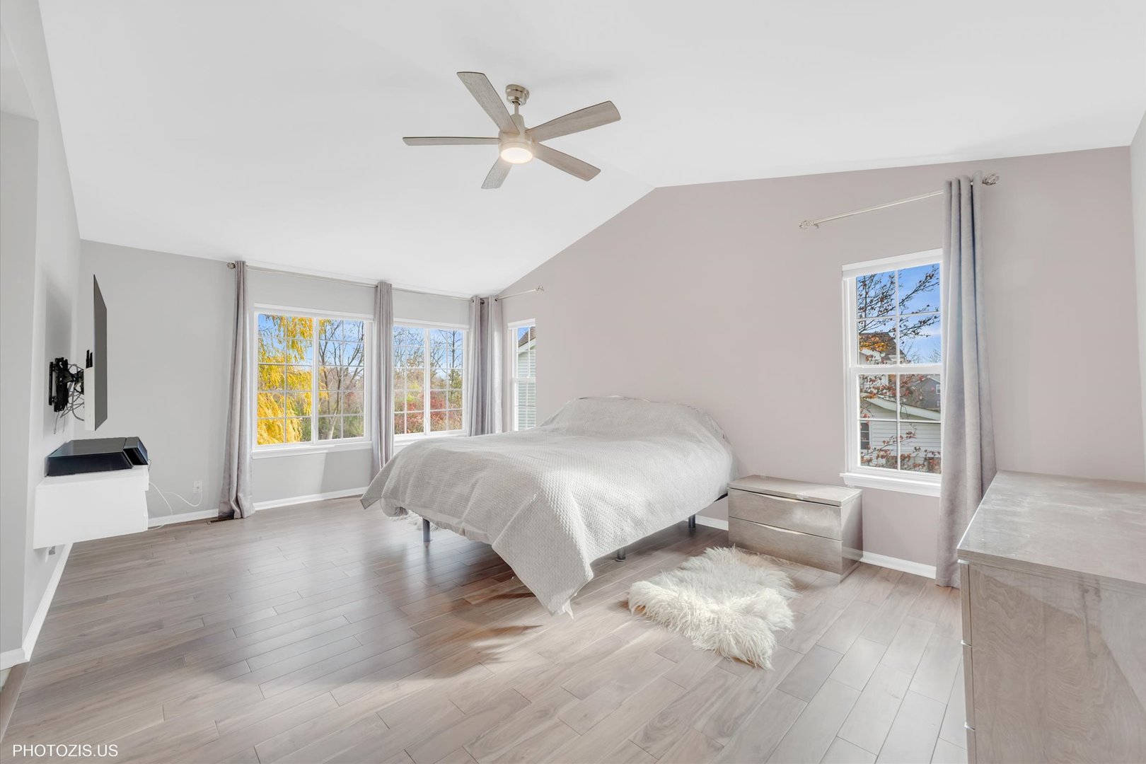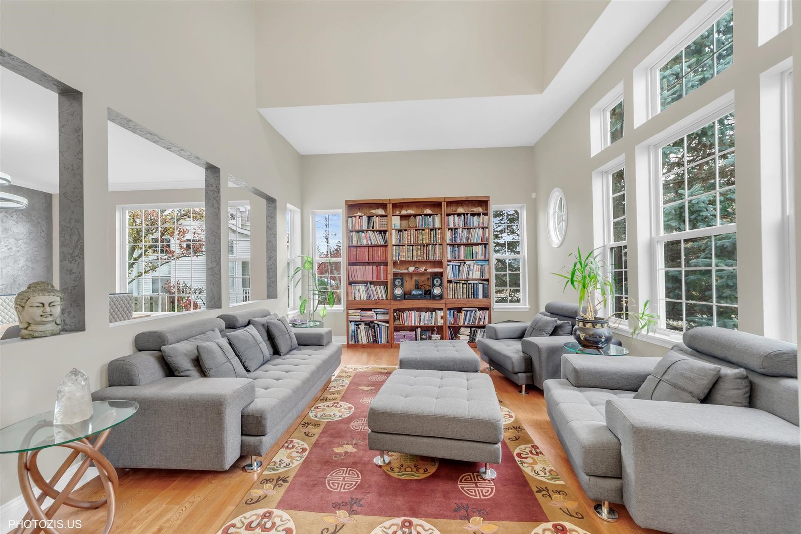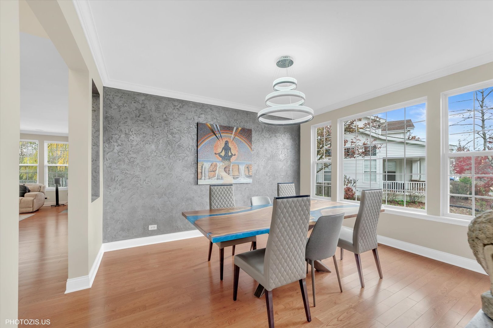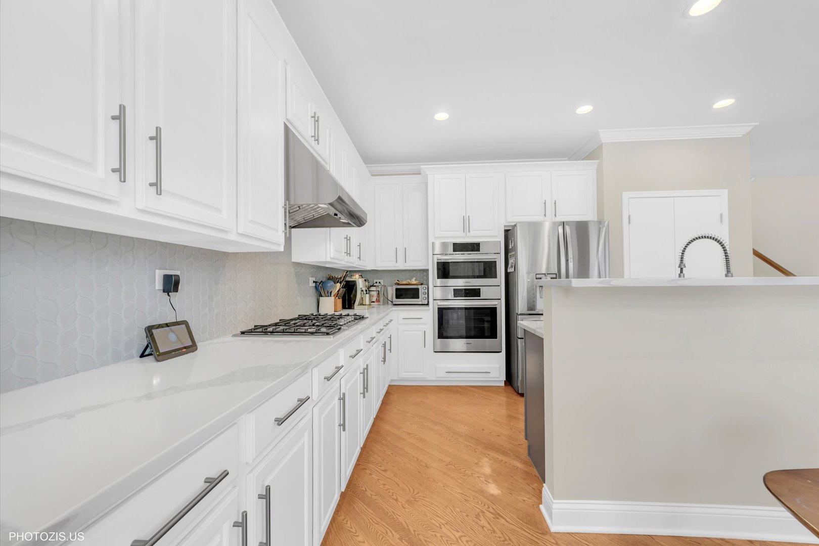 Beautiful Tressara Model in Mirielle – Stevenson High School District! Located on the largest lot in the subdivision, this updated 5-bedroom home features a striking light gray rock and Dryvit exterior and is just a short walk to Stevenson High School. The dramatic entry opens to a 18-foot living room ceiling and with 9-foot ceilings on the main level. The first floor offers hardwood floors, a three-sided fireplace connecting the family room and kitchen, and a first-floor bedroom/office with a full bath-ideal for in-law or guest arrangements. The remodeled 2020 kitchen includes 42-inch white cabinets and stainless steel appliances. The luxury primary suite features a separate shower, soaking tub, and walk-in closet. The full finished basement adds exceptional living space with a recreational room, meditation room, workout room, full bathroom, and an additional bedroom. Enjoy outdoor living on the expansive 650 sq ft concrete patio. Major updates include: roof (2019), zoned HVAC (2018), and exterior paint (2022). A wonderful home offering space, updates, and top-rated schools!