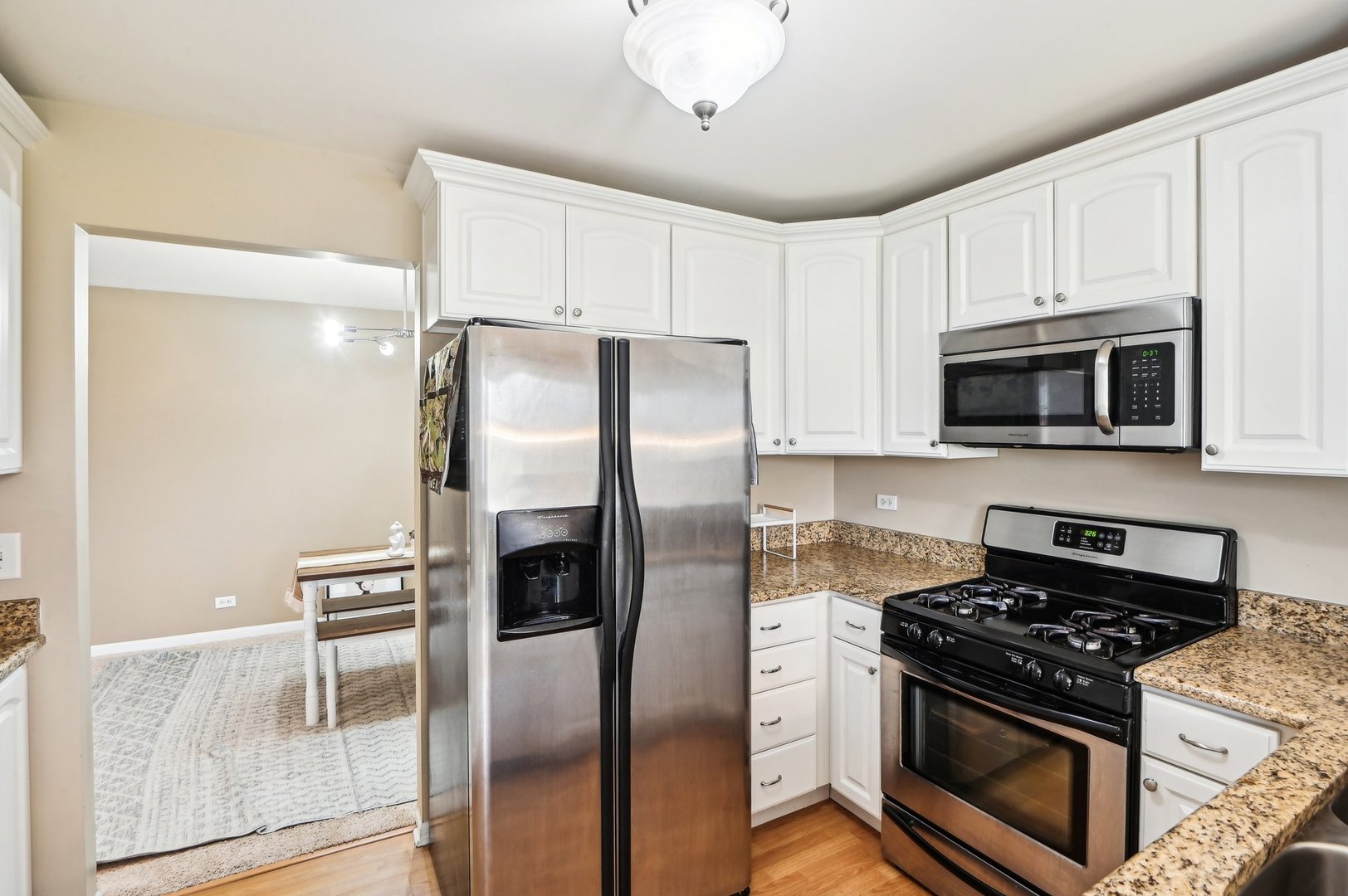 Welcome to 221 Hampshire Ct #201D, Naperville-a rare, move-in-ready condo that combines peace, privacy, and everyday convenience. This second-floor unit offers vaulted ceilings in the living, dining, and kitchen areas for an airy, open feel, plus a private balcony with serene views and no neighbors above or behind! Inside, you’ll find upgraded finishes throughout, including granite counters, stainless steel Frigidaire appliances, 42″ white cabinets with crown molding, neutral decor, and custom storage with a granite butler bar that sets this home apart. Both bedrooms feature true walk-in closets (one of which is 8’x5′), and the in-unit laundry room includes a full-size Samsung washer and dryer. Even better-the huge attic above the garage gives you the kind of storage space you rarely see in a condo. Buyers with an eye on education will love that this home is in the highly acclaimed Naperville District 203, serving Kingsley Elementary, Lincoln Junior High, and Naperville Central High School-some of the best-ranked schools in the state. Beyond academics, this neighborhood is close to beautiful green spaces, including Knock Knolls Nature Center, Springbrook Prairie Forest Preserve, and Knoch Park, offering trails, playgrounds, and year-round recreation. It’s a perfect balance of suburban quiet with plenty of outdoor options nearby. Commuters will appreciate access to the Naperville Metra station, I-355, and I-88, while weekends are made for enjoying the vibrant dining, shopping, and entertainment of downtown Naperville just minutes away. Whether you’re looking for top-rated schools, unbeatable storage, or a prime location near parks and transportation, this condo delivers it all-and it’s priced to sell. Don’t miss your chance to make it yours!