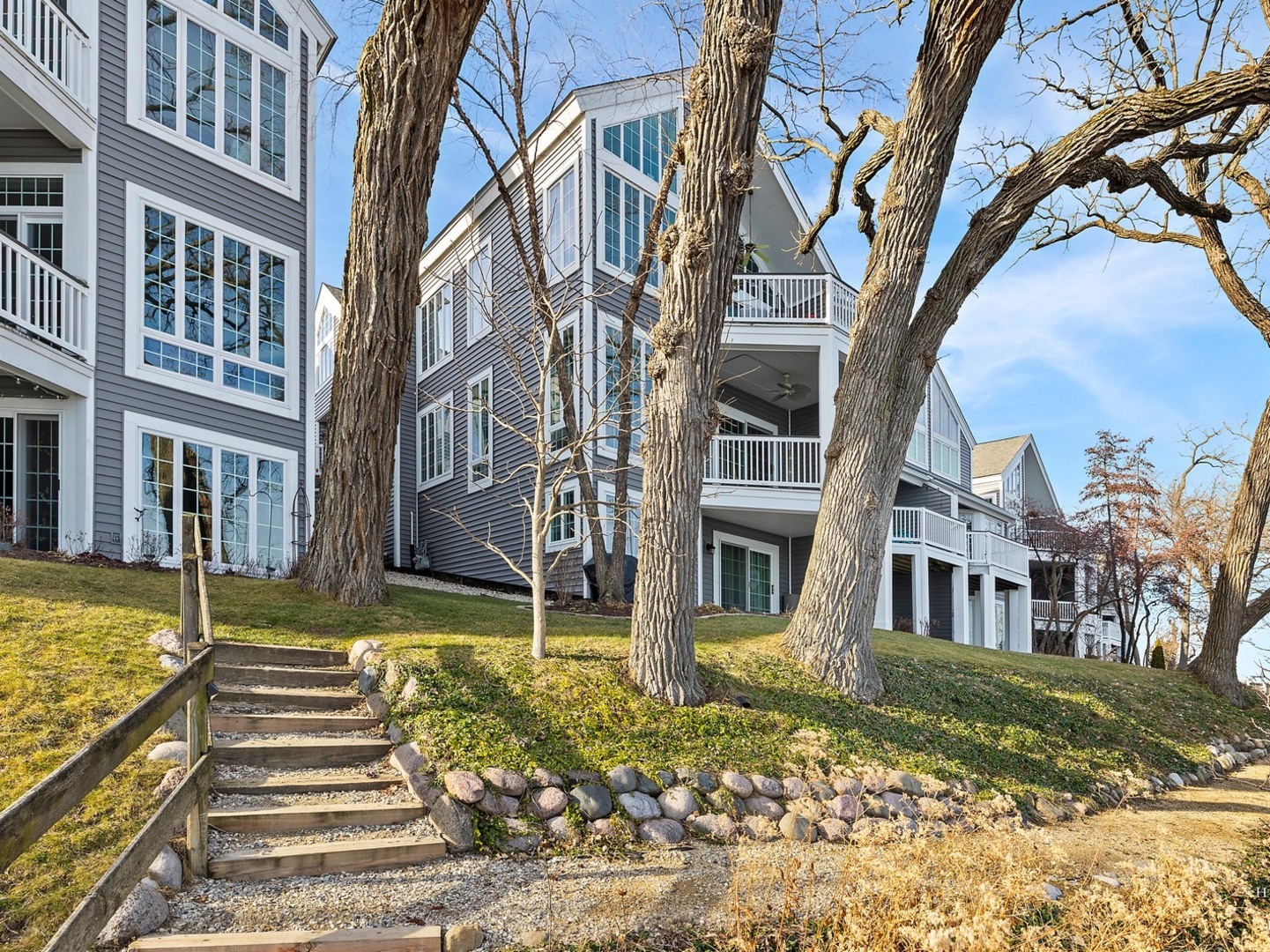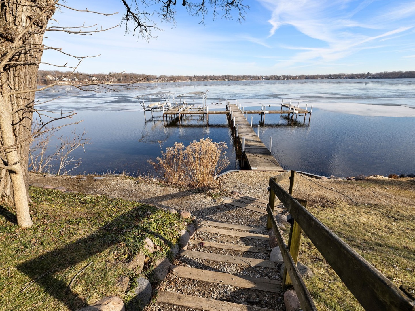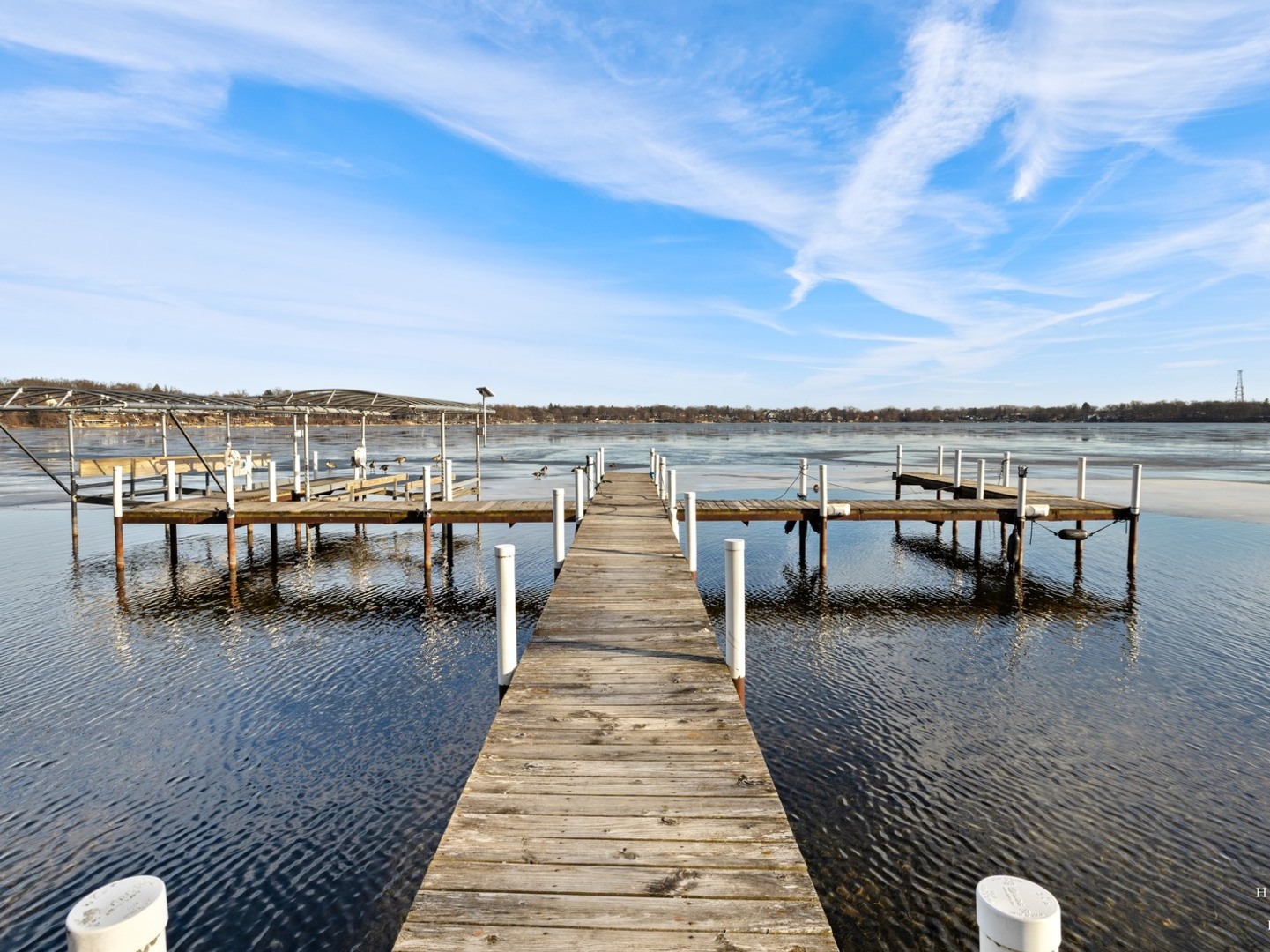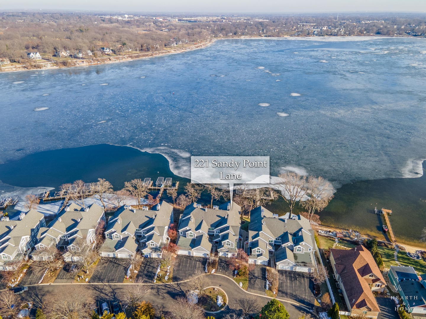 Wake up to lake views every day with this rare opportunity to live in the highly desirable Sandy Point community. From the moment you walk in, soaring ceilings and expansive windows frame the water. Everything you see is custom built from the trim to the doors to the beautiful staircase. Hardwood flooring runs through main level and all of the windows have been replaced. The kitchen features custom cabinetry with quartz countertops and updates including the stovetop and refrigerator. (2025) Unwind and cozy up taking in the lakeview in front of your dual sided fireplace. New washer and dryer (2025) This is the only unit with a second story loft addition, giving you an incredible work from home space or peaceful retreat overlooking the lake. There is also a cozy built in nook perfect for reading, relaxing or additional sleeping space when needed. The primary suite feels like a private getaway with its own deck facing the water and fireplace. No storage issues with three separate closets. Primary bath boasts a whirlpool tub with a separate shower and an updated shower door. (2022) The home also offers EV charger wiring and a full fire sprinkler suppression system for peace of mind. You will enjoy lake rights and your own private dock just steps from the home along with mature trees and quiet surroundings. You’re conveniently located just minutes away from shopping/dining and Paulus Park (playground, volleyball, picnic area and bike trails) Move in and enjoy lake living at Sandy Point. Welcome home.