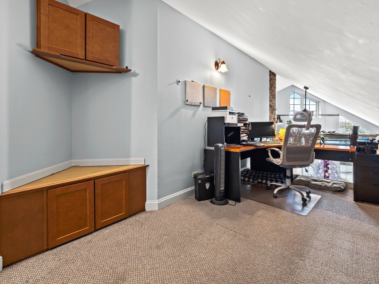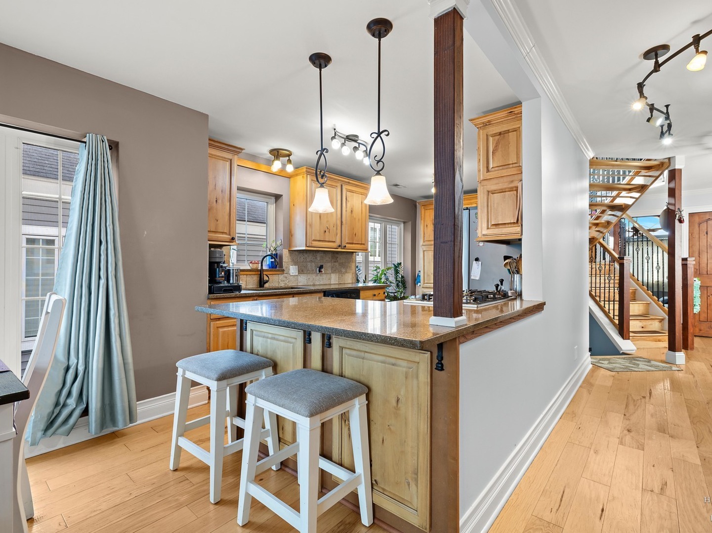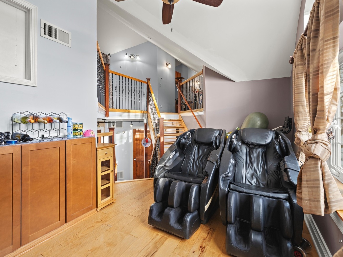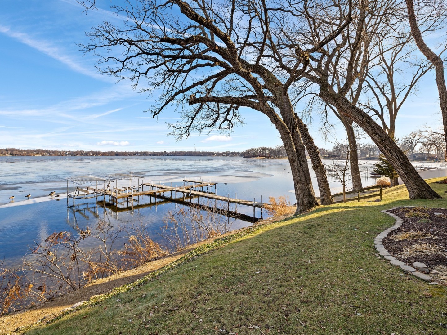Wake up to lake views every day with this rare opportunity to live in the highly desirable Sandy Point community. From the moment you walk in, soaring ceilings and expansive windows frame the water. Everything you see is custom built from the trim to the doors to the beautiful staircase. Hardwood flooring runs through main level and all of the windows have been replaced. The kitchen features custom cabinetry with quartz countertops and updates including the stovetop and refrigerator. (2025) Unwind and cozy up taking in the lakeview in front of your dual sided fireplace. New washer and dryer (2025) This is the only unit with a second story loft addition, giving you an incredible work from home space or peaceful retreat overlooking the lake. There is also a cozy built in nook perfect for reading, relaxing or additional sleeping space when needed. The primary suite feels like a private getaway with its own deck facing the water and fireplace. No storage issues with three separate closets. Primary bath boasts a whirlpool tub with a separate shower and an updated shower door. (2022) The home also offers EV charger wiring and a full fire sprinkler suppression system for peace of mind. You will enjoy lake rights and your own private dock just steps from the home along with mature trees and quiet surroundings. You’re conveniently located just minutes away from shopping/dining and Paulus Park (playground, volleyball, picnic area and bike trails) Move in and enjoy lake living at Sandy Point. Welcome home.