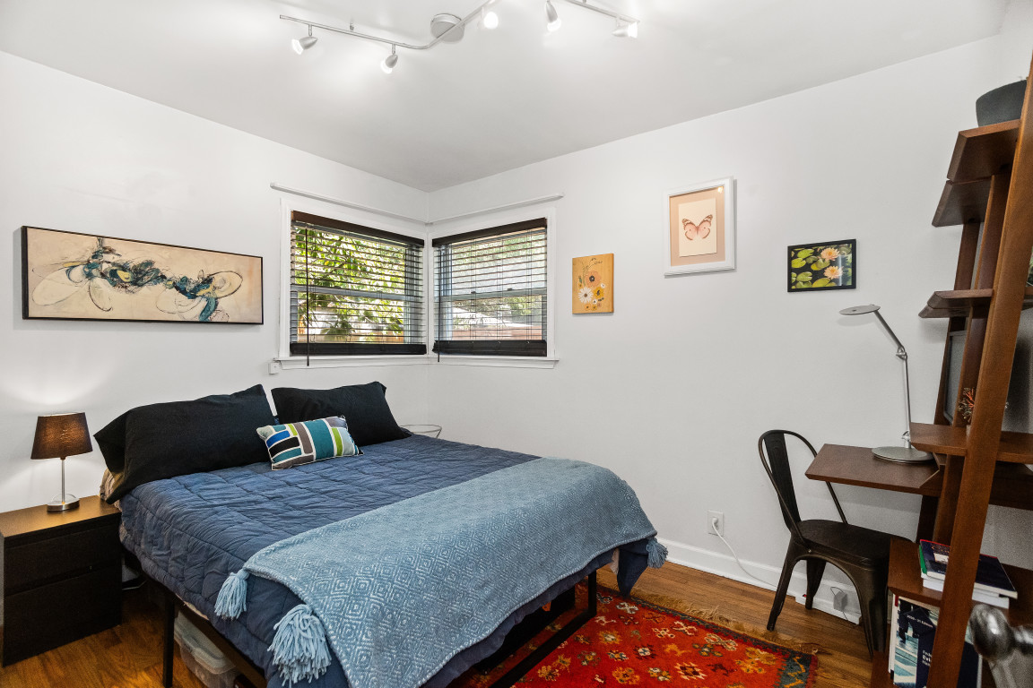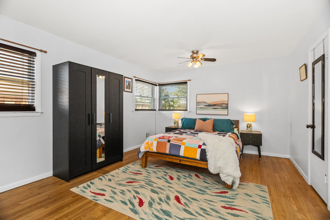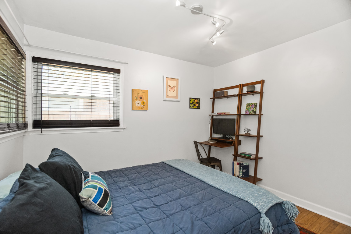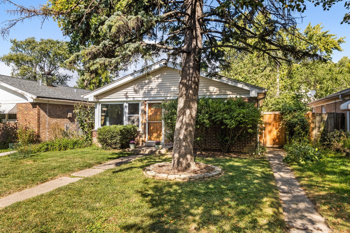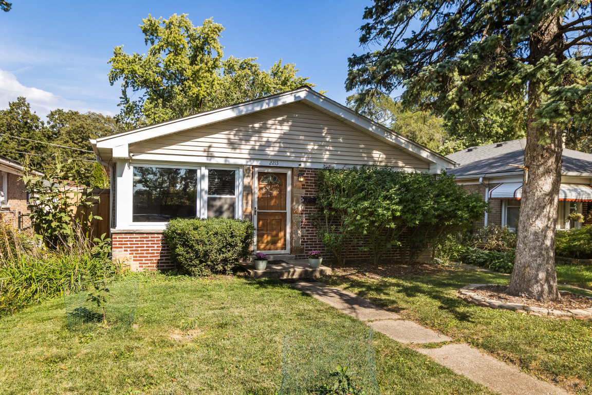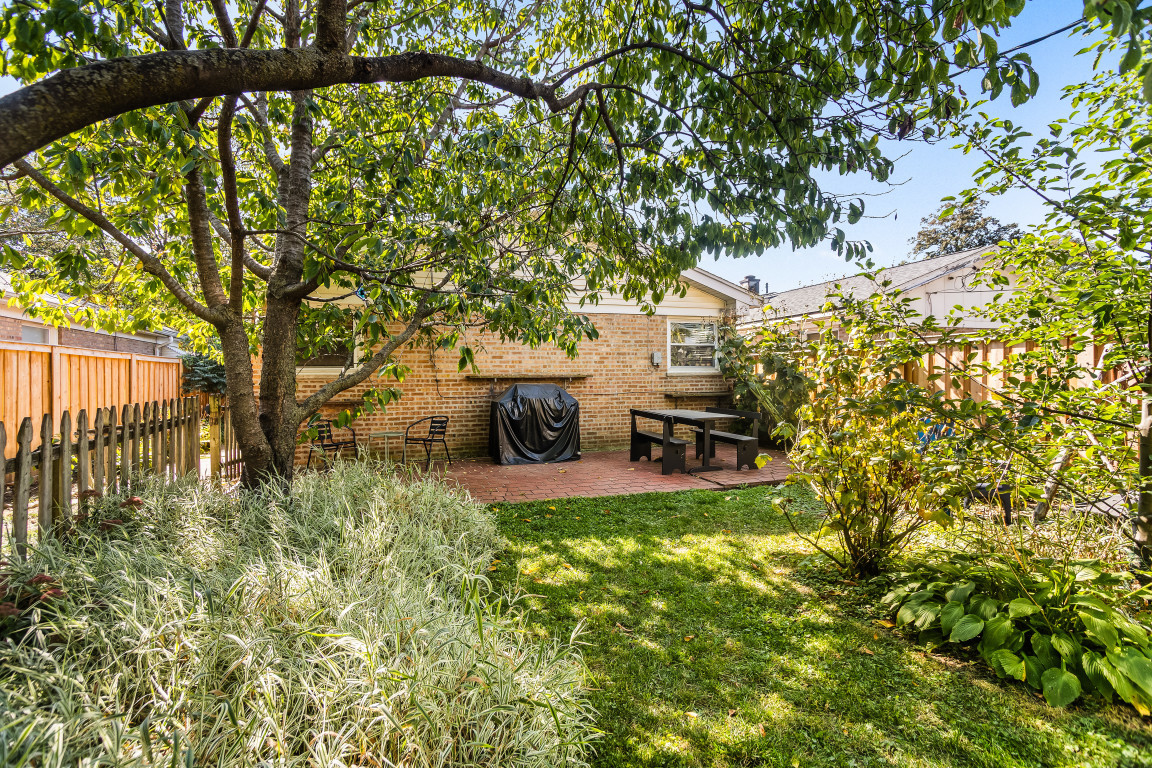 Charming 2-bedroom, 1 bath ranch home on private street in SW Evanston. This sunny house features a living/dining room with a large picture window. Updated eat-in kitchen with abundant wood-cabinets, granite countertops and tile backsplash. The oversized primary bedroom can comfortably fit a king-sized bed-and then some. Spacious second bedroom could also be used as a home office. Full bathroom with vanity, soaking tub/shower and tile floor and tub surround. Ample closet space & hardwood floors throughout! Large attic with bessler stairs-perfect for storage. Separate laundry/utility room. The magical, private backyard has a paver patio, fire pit and separate dog run. Brand new cedar privacy fence wrap-around this organically maintained yard. It is a pollinator’s paradise, with mature cup plants, goldenrod, and trumpet vine that attract bumblebees, hummingbirds, and butterflies, alongside a variety of well-maintained perennials. The property also includes multiple fruit trees and a currant bush. Newer, oversized 2 1/2 car garage. Wonderful location: steps from the brand new The AUX commercial hub and Oakton & Main Street shopping malls, in-between two lovely parks: James and Harbert Payne. Easy access to the expressway and Chicago, Northwestern University and Lake Michigan!