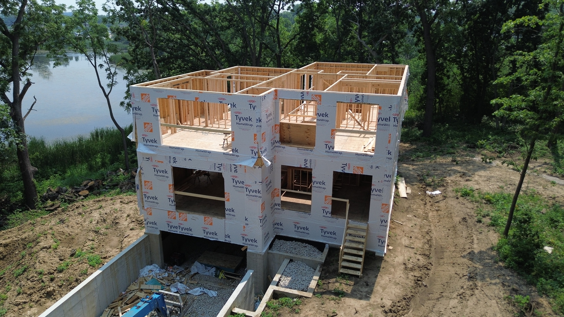 Stunning New Construction with Sleek Modern Design and Breathtaking Lake Views! This beautifully crafted home features 4 spacious bedrooms, 3 full bathrooms, and 2 half baths, offering a perfect blend of luxury, comfort, and functionality. Designed with modern living in mind, it boasts an open-concept layout with a gourmet kitchen, expansive living areas, and high-end finishes throughout. Large windows flood the interior with natural light and showcase picturesque lake views. A fully finished basement adds even more versatile living space-perfect for a family room, home gym, media room, or guest suite. Enjoy the perfect balance of indoor and outdoor living with thoughtfully designed outdoor areas-ideal for entertaining or relaxing. Estimated completion in the beginning of 2026 – don’t miss this rare opportunity to own a one-of-a-kind, custom new construction home in a premier location!