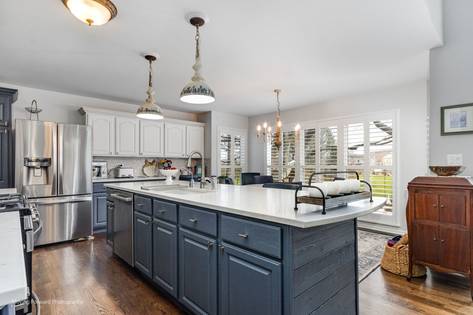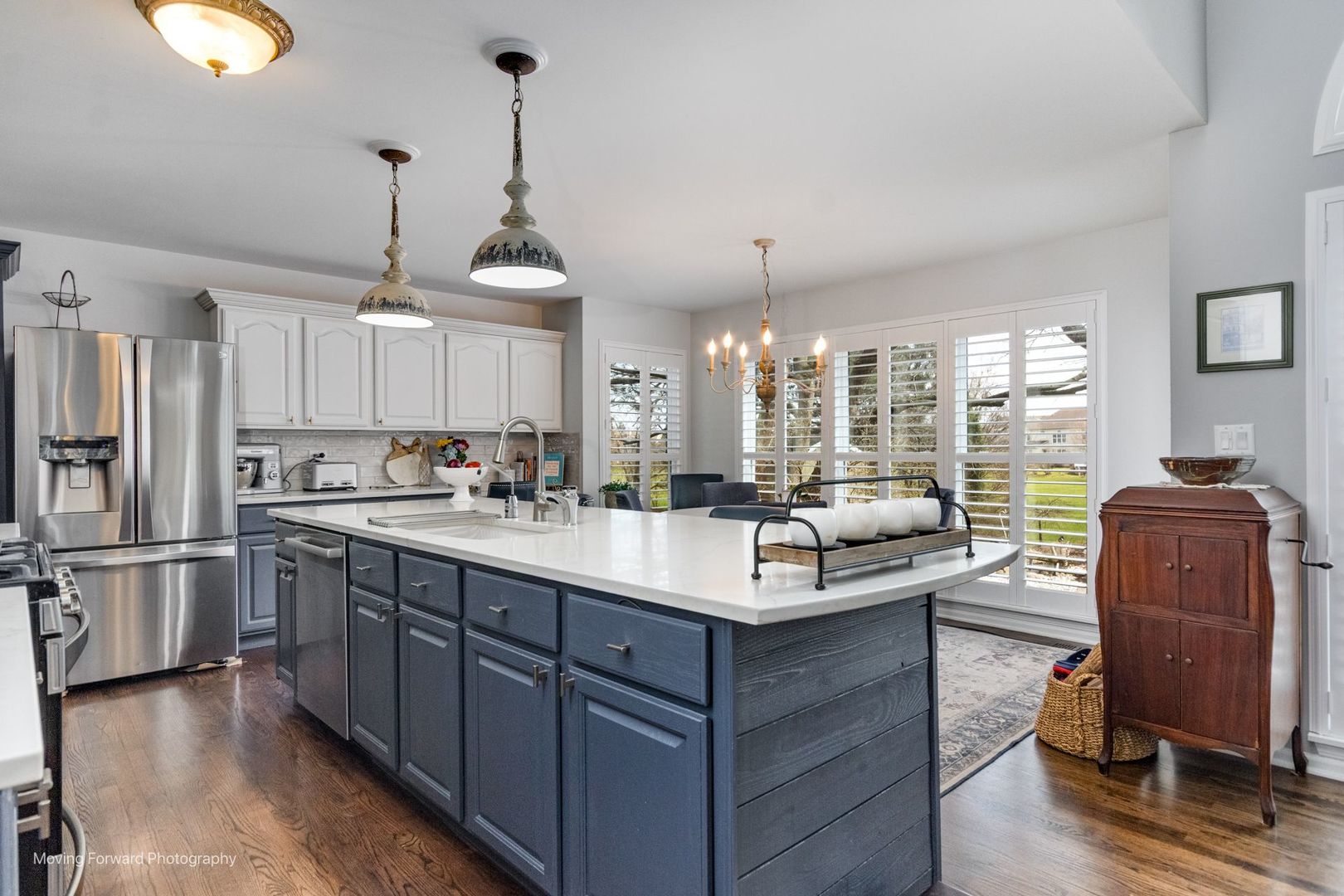 When only the best will do, this home truly exemplifies excellence! The owners have consistently updated this beautiful home with high quality fixtures. Over $200,000 in updates in the past few years. The family room with volume ceilings opens to a newly renovated kitchen that features quartz countertops, new appliances, and trendy color schemes. The eating area provides a view of the resort-like backyard, which includes a pond, a paver patio, a fire pit, and beautiful mature landscaping. The first floor boasts formal living and dining rooms, as well as a space ideal for multi-generational families, featuring a bedroom, full bath, and a well appointed butlers pantry. On the second floor, you’ll find 4 generous bedrooms with newly updated bathrooms. The master suite has been expertly upgraded with a custom bath including sep shower, a spa soaking tub w/bubbler, top of the line smart toilet, 2 walk in closets, and custom built in cabinets fit for royalty. This home also includes a 3 1/2 car garage w/epoxy flooring, and new designer doors. Lush mature professional landscaping extends from the front through to the back surrounding the paver patio and pond, backing to the spacious open area perfect for enjoying the serenity of the outdoors or hosting a great gathering. In ground sprinkler system. Recent updates include: roof, leaf guard gutters, garage doors, epoxy garage flooring, new windows, flooring throughout, bathrooms, kitchen, butler’s pantry, plantation shutters, appliances, HVAC, fireplace surround, freshly painted in popular tones, all new interior doors, ceiling fans, light fixtures, and an invisible fence. Unfinished basement with over 1000 sq ft for you to finish to your hearts desire! All you need to do is unpack, relax and enjoy.