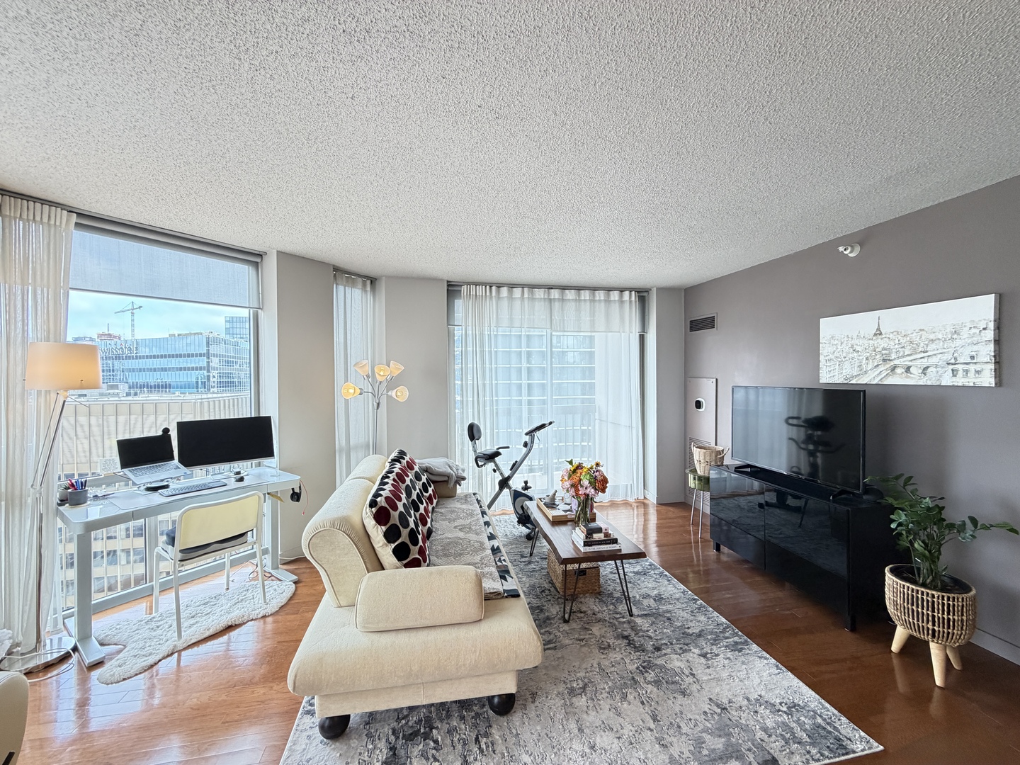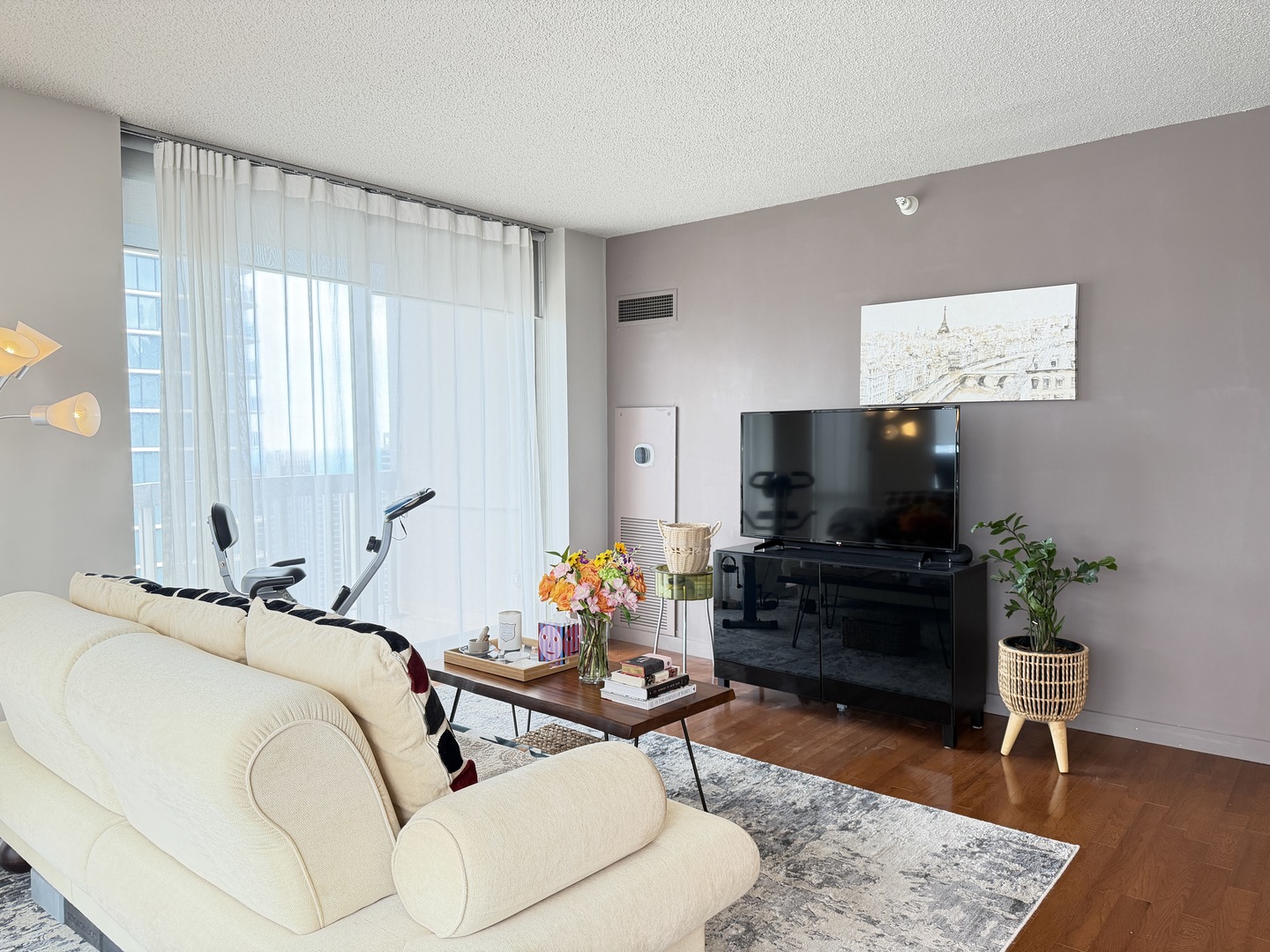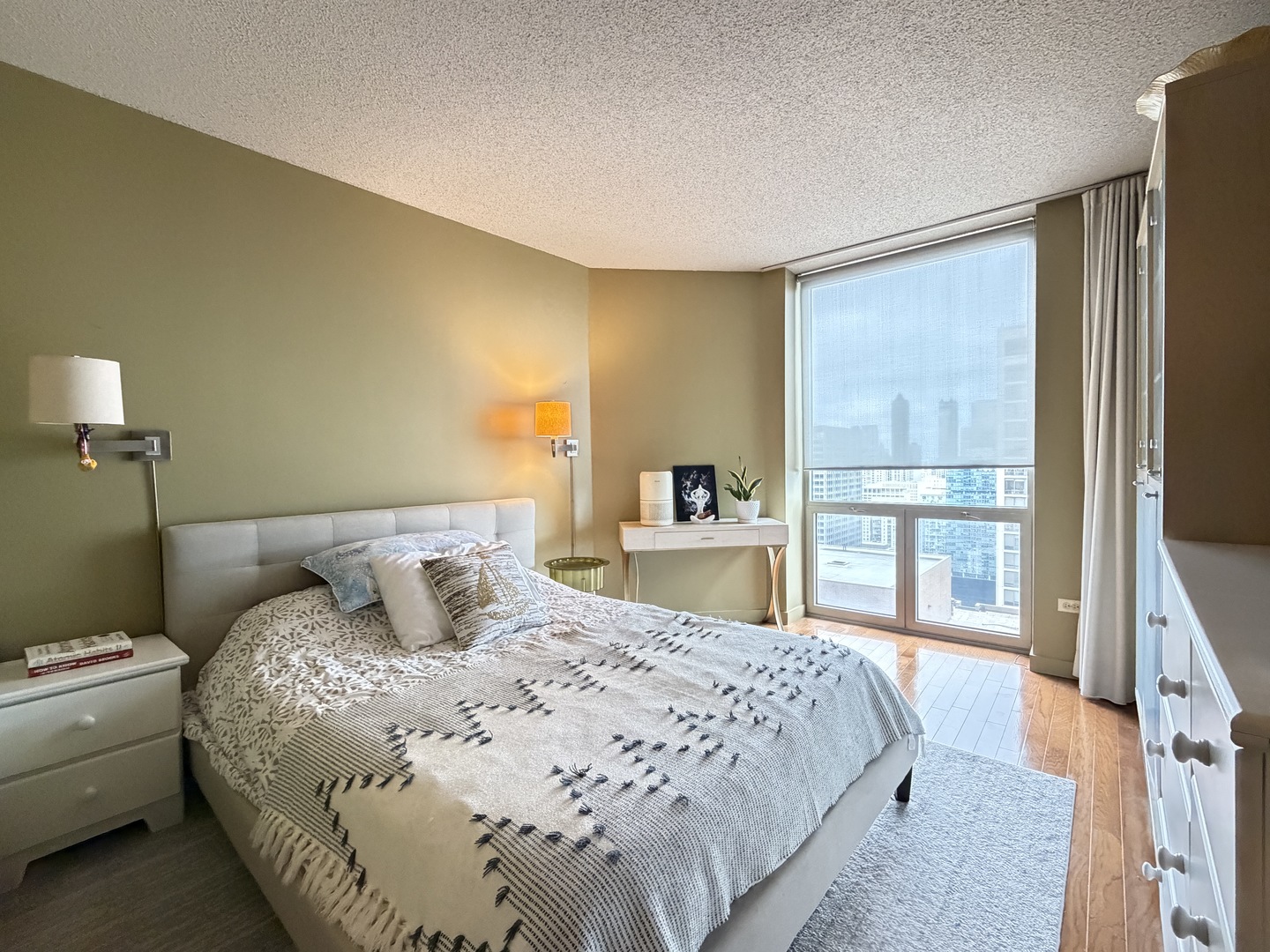 Move right into this gorgeous unit on the 40th floor, a beautifully updated northeast corner condo with stunning floor-to-ceiling windows that showcase a breathtaking panoramic view of Millennium Park. This spacious and thoughtfully designed split two-bedroom layout features rich hardwood floors throughout, a bright and airy open living/dining area, sleek granite countertops, upgraded stainless steel appliances, generous walk-in closets, a recently renovated spa-like primary bath with a walk-in shower, and a new modern in-unit washer/dryer. The building is situated in a luxurious, full-amenity complex featuring 24-hour door staff, a state-of-the-art fitness center, indoor pool, sunny sundeck with grills, stylish media and party rooms, a business center, on-site grocery store, and more. The bustling East Side location puts the best of the city within reach and is a walker’s paradise. Blocks away from the Loop, River North, and Millennium Park – all packed with shops, restaurants, and public transportation. In addition, pets are welcome, making it a perfect home for both you and your furry companions. Perfectly steps away from everything downtown Chicago has to offer – parking available!