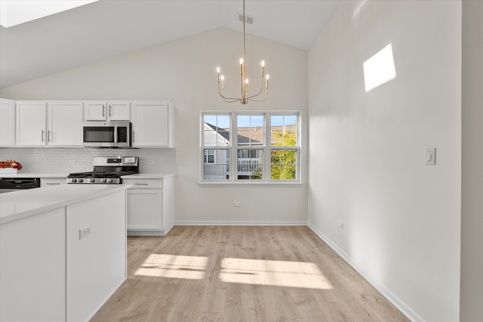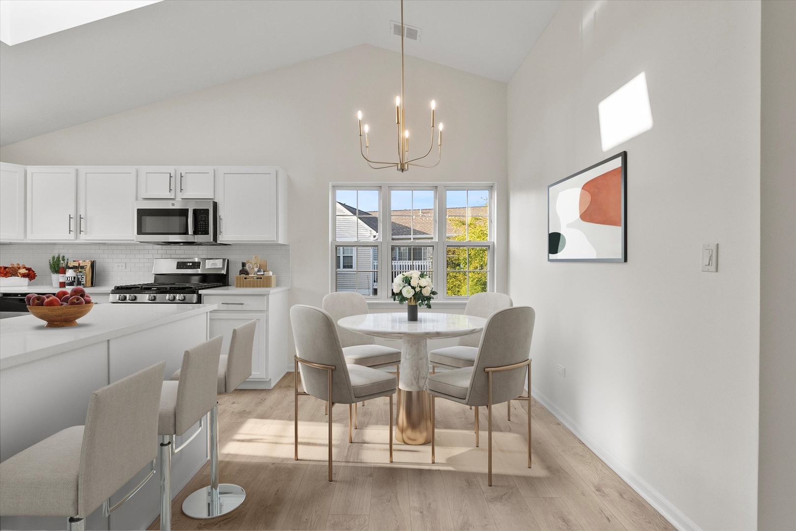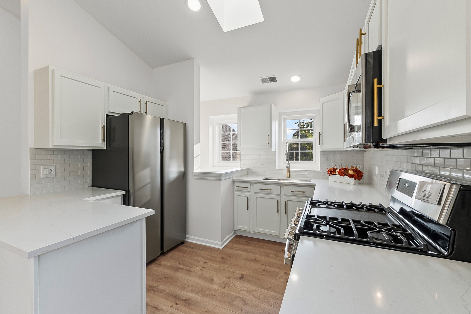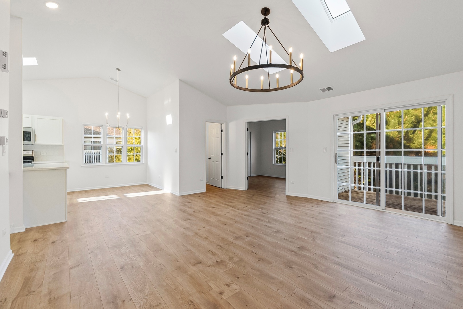Bright and updated two-story townhome in Windridge, fully renovated in 2025 with fresh, contemporary finishes throughout. This 2-bedroom, 2-bath end-unit features new water-resistant wood-style laminate flooring, updated lighting, a spacious balcony, and convenient in-unit laundry. The fully remodeled kitchen boasts white cabinetry, quartz countertops, modern fixtures, and brand-new stainless steel appliances, while both bathrooms have been refreshed with updated vanities, countertops, faucets, and lighting. The large owner’s suite includes a walk-in closet and private bath with an oversized jetted tub and separate shower. Conveniently located near shopping, dining, entertainment, and the 95th Street Library, this home is within top-rated District 204 schools including Neuqua Valley High School, with nearby parks, a golf course, dog park, and scenic trails at Springbrook Prairie Forest Preserve. Investor-friendly-rentals allowed.