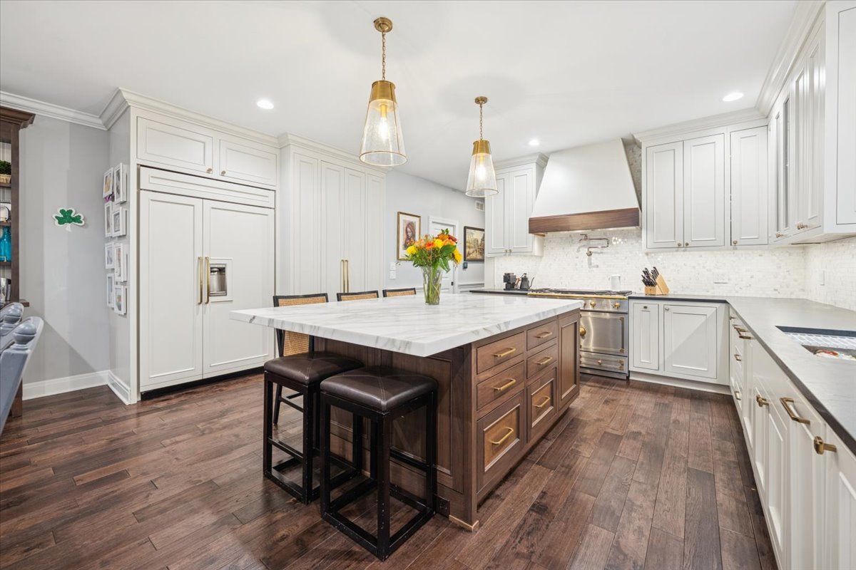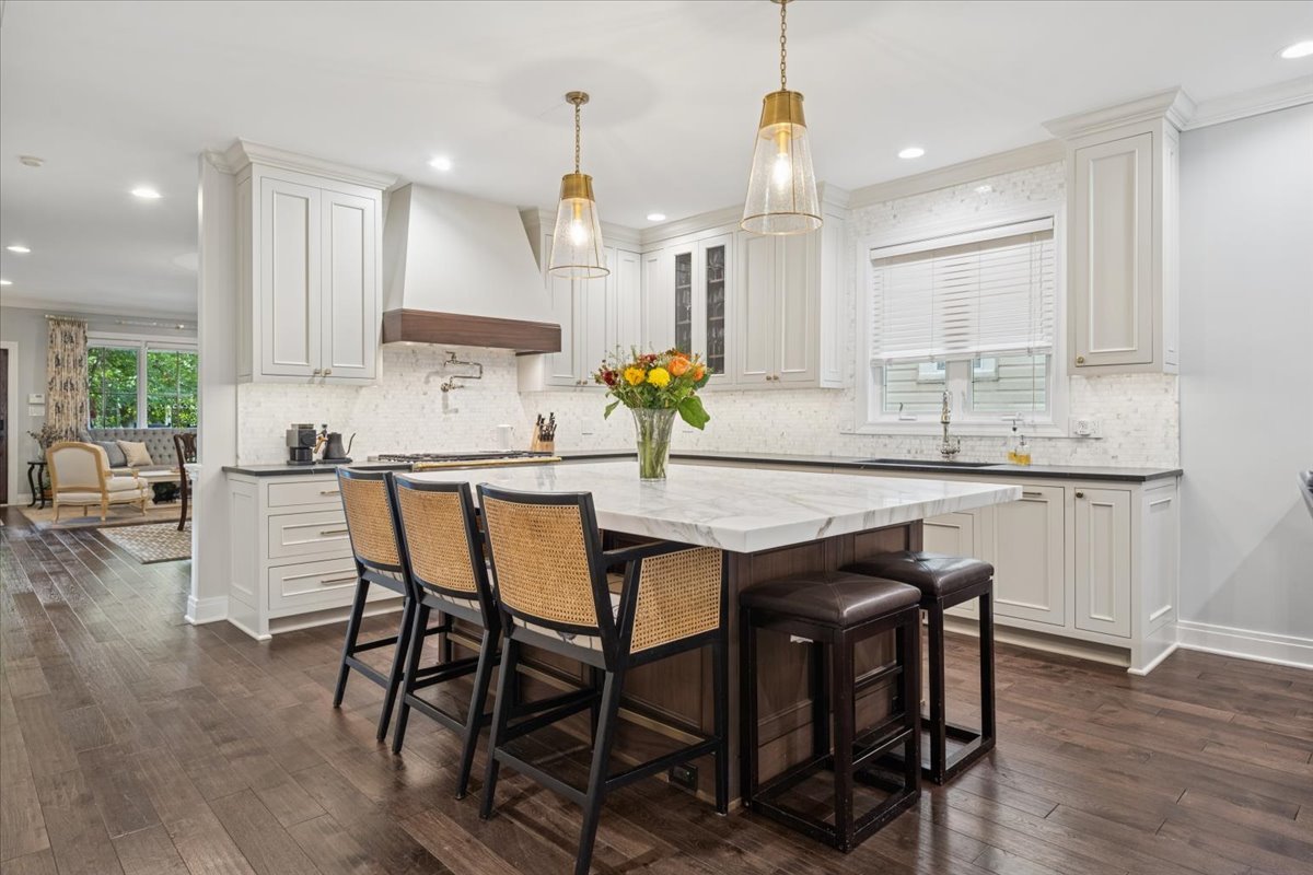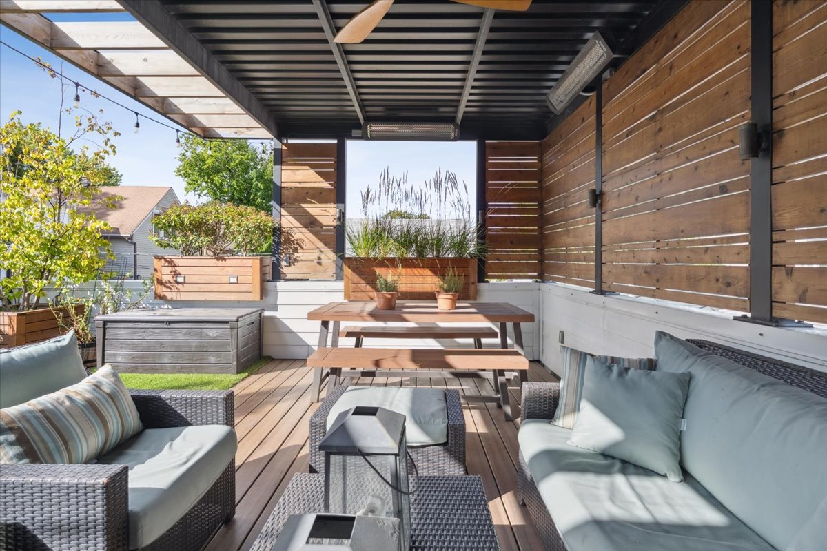 Absolutely stunning West Lakeview single family home in the sought after Hamlin Park area on a picturesque tree lined street. No detail was spared in this tastefully decorated and re-imagined home with amazing indoor & outdoor living beginning with the charming front porch ideal for morning coffee or hanging with neighbors. The sun-filled main level features an inviting foyer alongside the formal living and dining areas perfect for special occasions featuring great ceiling height throughout and a wood-burning fireplace with gas starter. The completely overhauled kitchen and family room area was rehabbed in 2023 and features an all new kitchen with custom cabinetry, soapstone and marble countertops, an extra large island with seating for five, a dedicated pantry space and a designer appliance package with La Cornue range, Sub-Zero fridge and Miele dishwasher. The massive family room and secondary dining area easily accommodates a sizable table as well as a large couch/sectional area centered around a sleek fireplace with white marble and timeless custom built-ins on either side. Finishing off the main level is an updated powder room and additional built-ins for coats/shoes giving you a mudroom feel. The thoughtfully designed second level has generous sized 2nd and 3rd bedrooms, a well appointed kids bathroom completely renovated in 2021, and a private laundry room rehabbed by California Closets complete with utility sink and cabinet storage. The deluxe primary suite has vaulted ceilings with skylights, a massive custom closet and a pristine spa-like marble bathroom with heated floors, soaking tub, steam shower, private water closet and a classic double-bowl vanity all completed in 2021. The lower level has an expansive family room with fantastic ceiling height highlighted by a large custom entertainment area with built-in cabinets/shelving and a gas fireplace as well as a full wet bar with wine fridge. The spacious 4th bedroom has a stylish built-in office setup with an attached Murphy bed that sits adjacent to the pristine fourth bathroom making for an ideal guest room setup. Other additions in the basement include two more storage closets, supplemental heating for the lower level, a whole home water filtration system and a tankless water heater. Completing this exquisitely appointed home is an outdoor lover’s dream with one deck immediately off the rear of the home ideal for grilling and al fresco dining in addition to a fully built-out garage roof deck with an extensive pergola setup, attached heat lamps, outdoor TV setup and custom planters. All the decking in the front and rear of the home was upgraded to composite decking. A truly wonderful turn-key home in impeccable condition that is perfectly situated steps away from popular Hamlin Park with free access to the large field, outdoor pool, tennis courts, brand new dog park and large fieldhouse. Leave your car in the garage and walk to all things Roscoe Village, Whole Foods, Southport Corridor, Bitter Pops, Frasca and the Paulina Brown Line stop! For a comprehensive list of the extensive work performed by the sellers including new Hardie Board siding on the entire home, new windows, new doors and a new slate roof on the front of the home please see the attached materials.