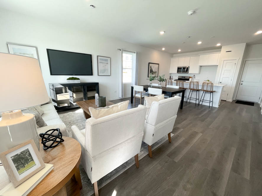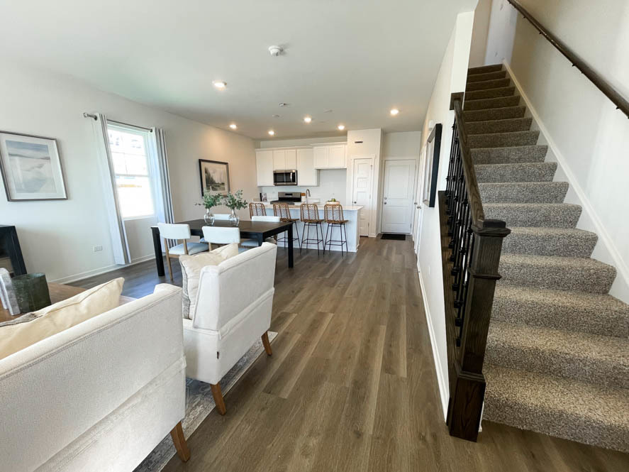 You can tour this property on your own time! This home offers self-guided tours! Discover yourself at 2229 Riesling Rd, Oswego, Illinois, a beautiful new home in our Sonoma Trails community. This townhome will be ready for a QUICK move-in! Homesite includes a fully sodded yard that is maintained throughout the year as well as snow removal in the winter. This home is built on a corner end unit premium lot with a spacious front yard adjacent to the newer single-family homes. This Richmond condo townhomes plan offers over 1,500 square feet of living space with 3 bedrooms plus a loft, 2.5 baths and a 2-car garage. As soon as you step inside, you’ll be greeted by our open concept living area, featuring luxury vinyl plank throughout the main living areas. The expansive kitchen overlooks both the front dining and back great room areas, making it the ideal space to entertain. Additionally, your kitchen features white designer 42-inch cabinetry, a spacious island with quartz countertops, and pantry. Enjoy your large primary bedroom with a walk-in closet and connecting En suite bathroom. The rest of the upper level features a laundry room, secondary bedrooms with a full second bath, and linen closet. You’ll find luxury vinyl plank flooring throughout the main level living space, bathrooms, and laundry. Impressive innovative ERV furnace system and a tankless water heater round out the amazing features this home has to offer! All Chicago homes include our America’s Smart Home Technology, featuring a smart video doorbell, smart Honeywell thermostat, Amazon Echo Pop, smart door lock, Deako smart light switches and more. Photos are of actual home. Furniture IS NOT INCLUDED with purchase of home.