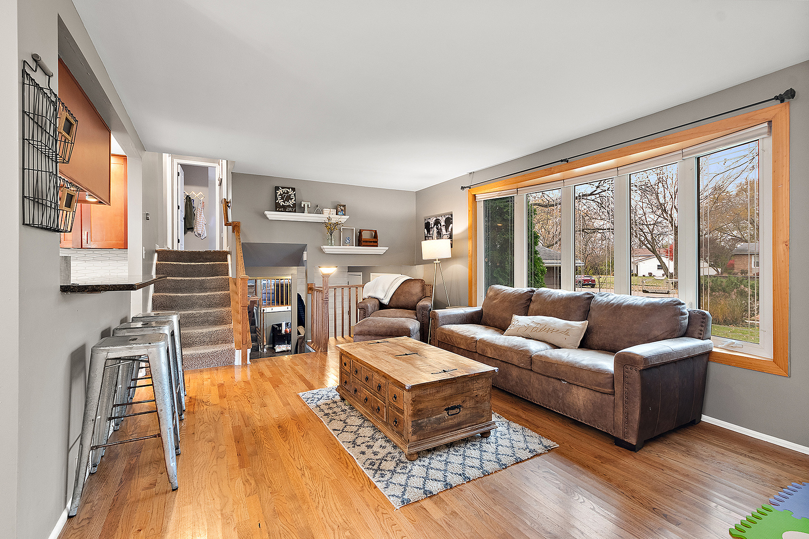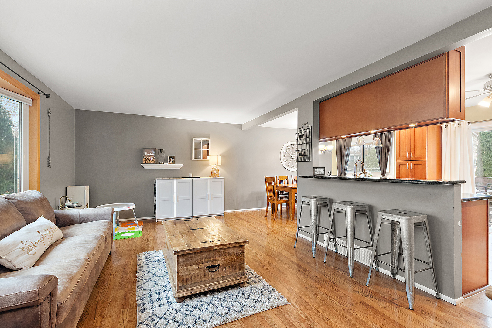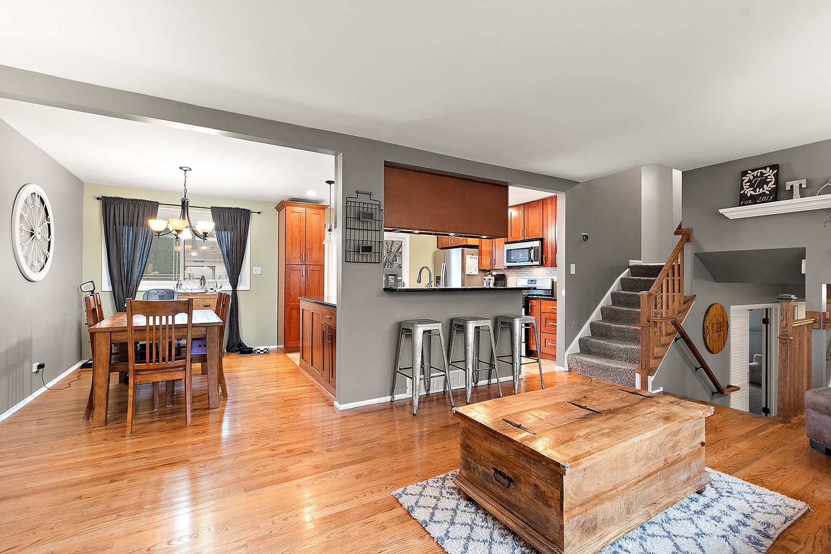 Rare opportunity in Briarcliffe South! This beautifully refreshed home features modern grey tones, gleaming hardwood floors, and an inviting open layout. The updated kitchen showcases custom 42″ cabinetry, under-cabinet lighting, granite countertops with a breakfast bar, and sleek stainless-style appliances. Sun-filled living and dining areas overlook a spacious gallery foyer accented with custom shiplap. A generously sized family room offers a cozy gas fireplace and built-in shelving. Upstairs, original hardwood floors lie beneath the carpet, and the bright primary bedroom features exposed wood flooring and access to a shared en-suite bath. Both bathrooms have been tastefully updated, with the upper bath enhanced by a skylight. The large backyard is fully fenced with newer cedar fencing and includes a convenient storage shed. Recent updates include: sewer line replacement (2025), bathroom renovations (2017), roof (2012), AC (2011). Located in a quiet neighborhood, this home offers the ideal South Wheaton lifestyle-close to parks, highways, shopping, and top-rated schools. Don’t miss this one!