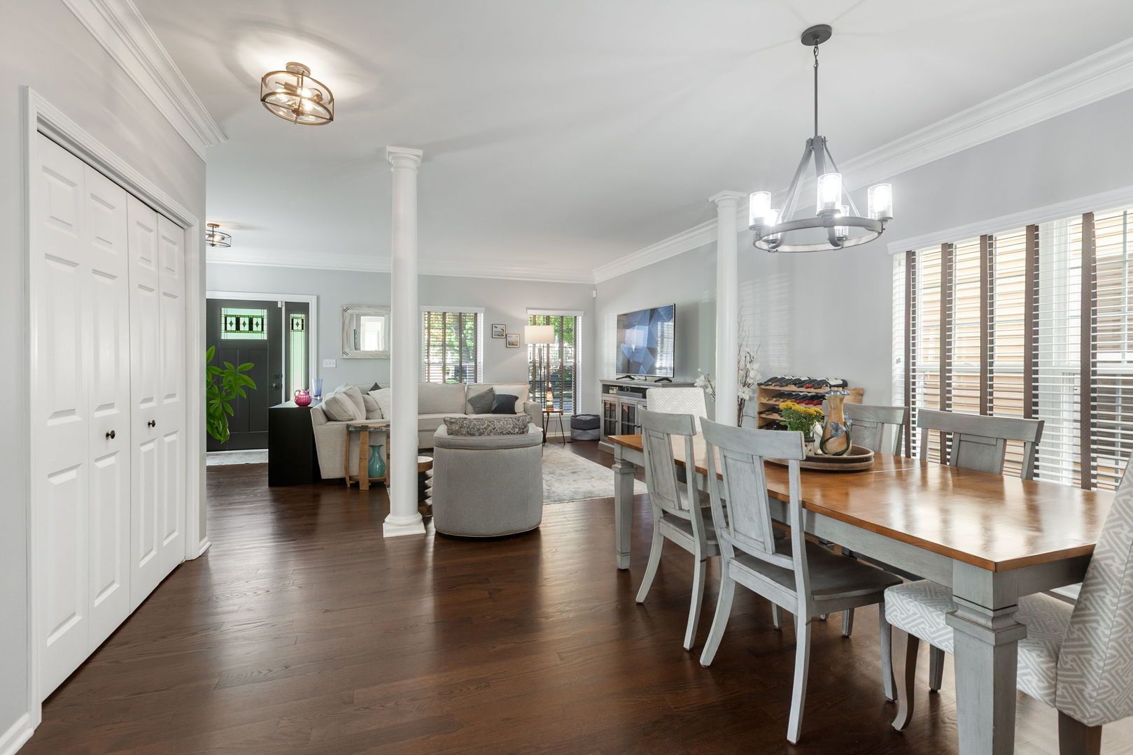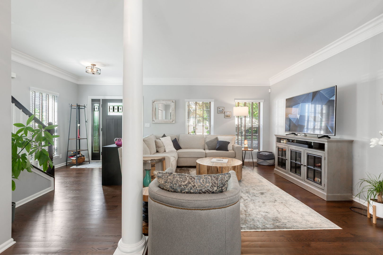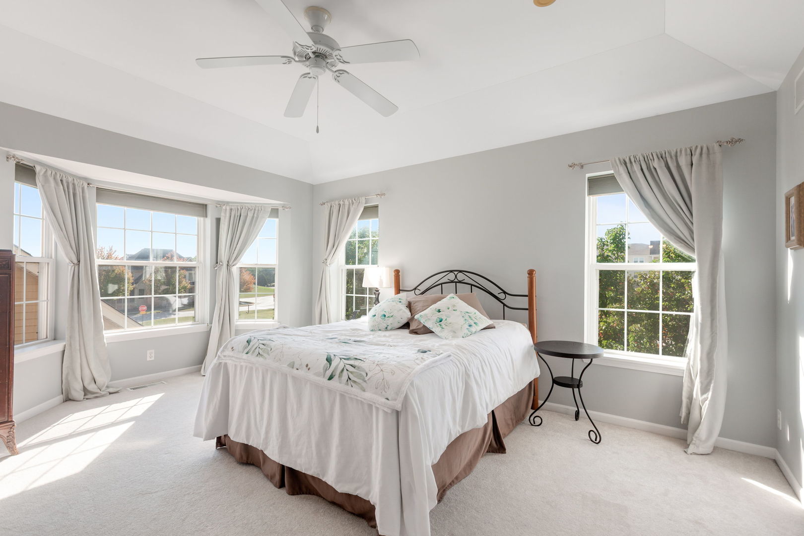 YOU DON’T WANT TO MISS THIS ONE! Meticulously maintained 3 bed, 2.5 bath corner-lot home in a sought-after Geneva Mill Creek! Current owners have lovingly cared for and enhanced this home, offering a true move-in ready opportunity. The front porch has just been repoured with new railings. New Front Door in 2023, along with brand new furnace and AC (May 2025), Striking ebony oak hardwood floors were added throughout the entire first floor and up the stairs. The main level offers a cozy living space divided by decorative pillar columns. The kitchen was fully remodeled in 2016 and features 42″ soft-close white cabinets, LG stainless steel appliances, 24-bottle wine chiller, granite countertops with matching stone-accented backsplash, hammered copper sink, upgraded ventilation, and custom molding. New plantation shutters were added to all main-level windows. All bathrooms were updated in 2016 with new vanities, lighting, paint, and shower heads. Upstairs you’ll find a spacious primary suite with bay window, walk-in closet, and private en-suite bath. Two additional bedrooms and a 2nd floor laundry room (with newer washer, dryer, and storage cabinet) complete the upper level. The deep-pour basement features 9′ ceilings and is roughed-in for a future 4th bathroom-currently used as storage but ready for finishing. The 2+ car garage is a standout with two-story ceilings and stair access to both the main level and the basement. Perfect for storage, hobbies, or future expansion. New Trex deck surrounded by lush landscaping, including Arbor Vitae, rose bushes, lilac, Russian Sage, and more. This unit also features extra side yard space, offering privacy and room to relax-rare for row homes. Lawn care and snow removal handled by the HOA for maintenance-free living. Additional guest parking conveniently located across the street near retail shops. Close to walking trails, golf course, playgrounds, schools, tennis courts, and more. Don’t miss your chance to own this beautifully upgraded home in a vibrant Geneva community-schedule your showing today!