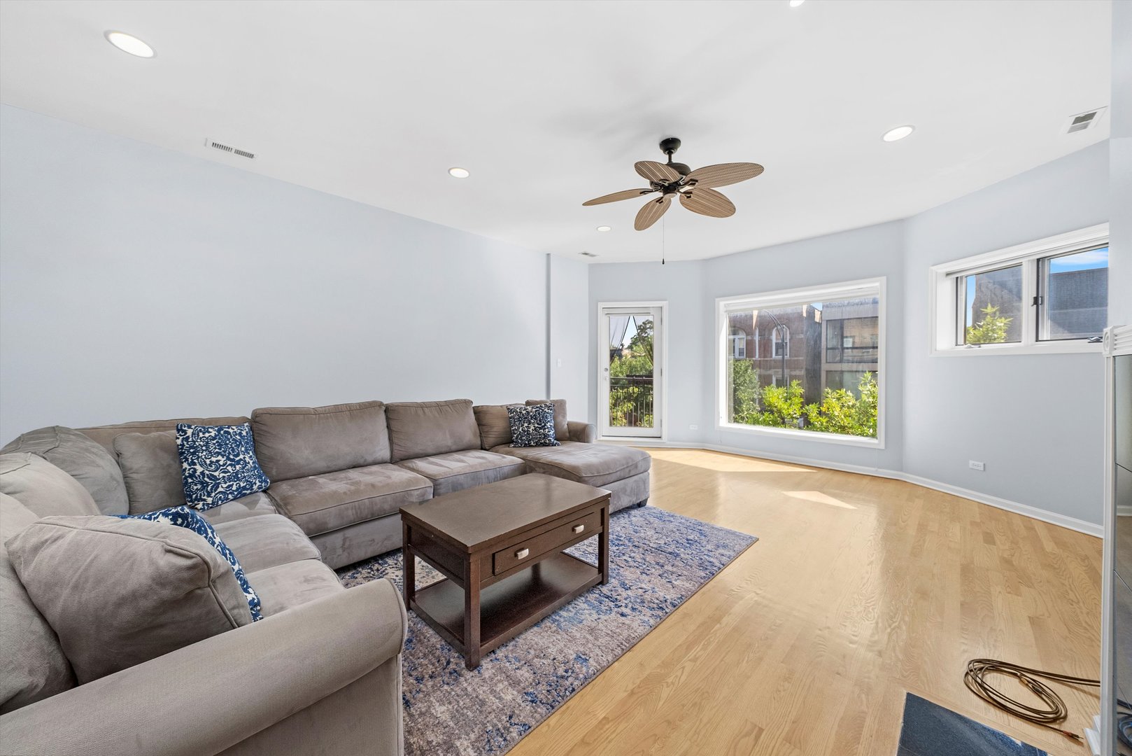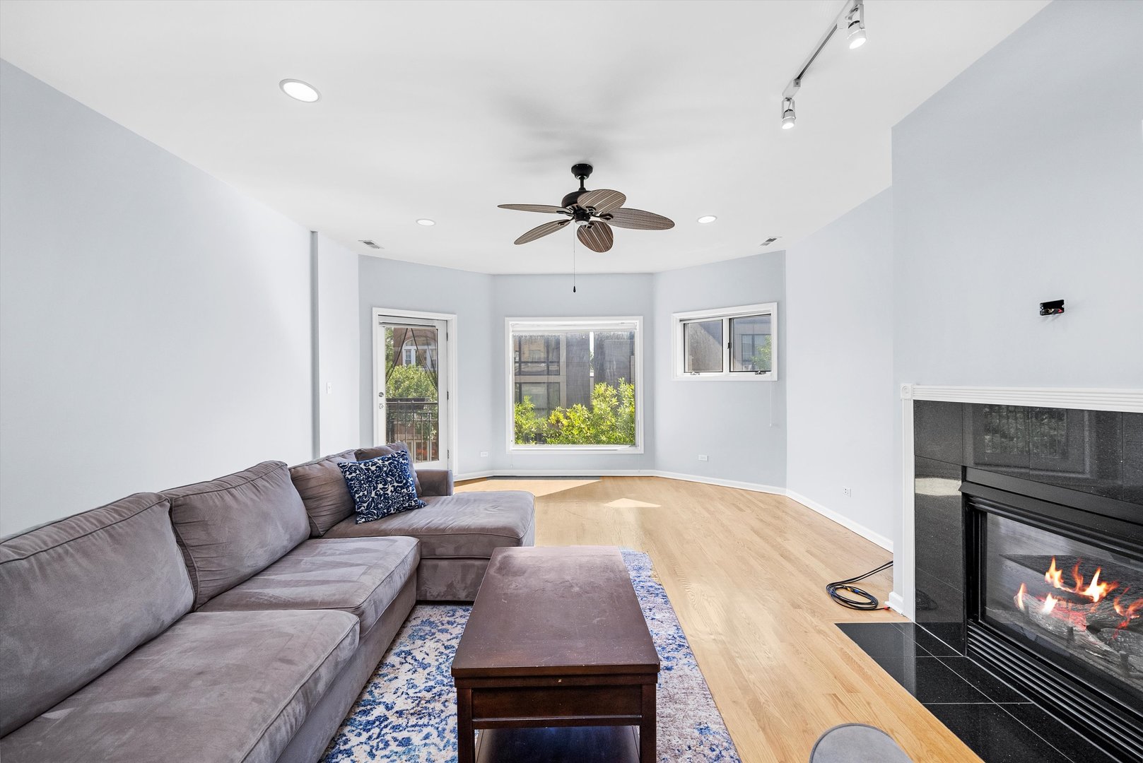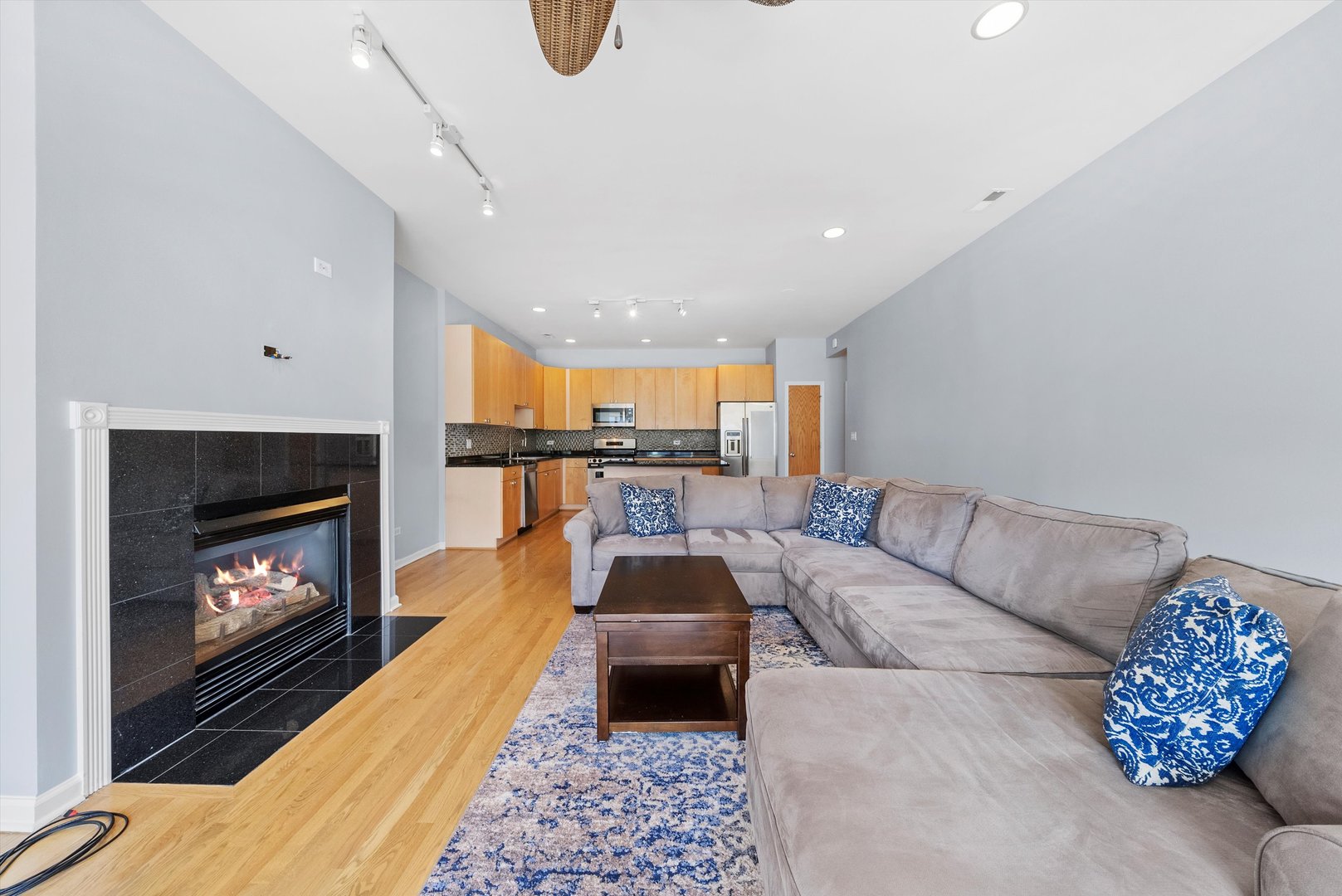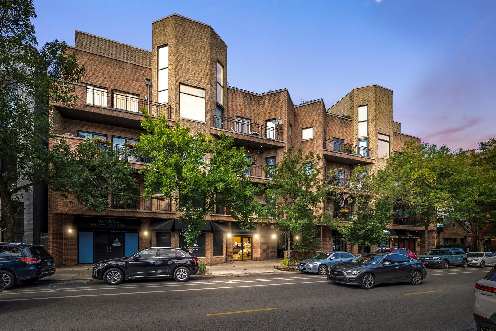Prime Bucktown Location! Sun-filled and spacious 2-bedroom, 2-bath condo in a rare boutique elevator building. This oversized floorplan features an open chef’s kitchen, dining area, and living room with a cozy gas fireplace. The large master suite includes a walk-in closet, while additional storage abounds-coat closet, linen closet, pantry, side-by-side washer/dryer, and walk-in utility closet. Step out onto your private balcony to enjoy southern exposure from both the main living space and master bedroom. The sale includes an extra-wide attached garage parking spot, plus an additional external storage closet. Perfectly situated near new restaurants, shopping, nightlife, the 606 Trail, Holstein Park, and top-rated Pulaski Elementary right behind the building. Conveniently close to The Nook daycare, just 2 blocks from the Western Blue Line, and easy access to 90/94. Armitage Avenue itself was fully repaved a few years ago. Explore in 3D! Click the 3D button to take a virtual tour and experience every detail.