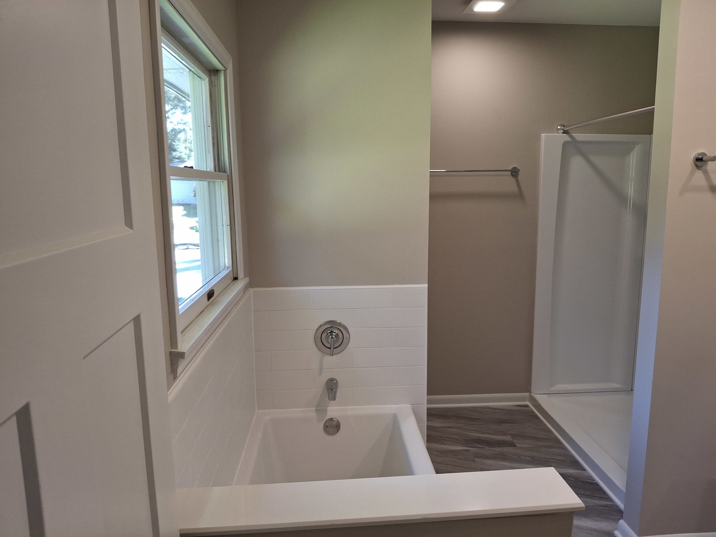 Spacious ranch with 24 x 32 garage. Woodburning fireplace in family room. Large private backyard. Primary bath with large tub and separate shower. Large deck off of primary bedroom and family room. Large eat in kitchen with refrigerator, oven/stove, dishwasher and microwave. Large laundry room with washer and dryer, 5 gal sink, and separate entrance. Located on quiet dead end street. Property has been completely updated with new flooring, new doors, new trim, new plumbing fixtures, new electrical fixtures, new HVAC, new hot water heater, new pressure tank, new water softener. Freshly painted interior and exterior. Available immediately.