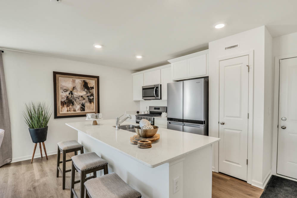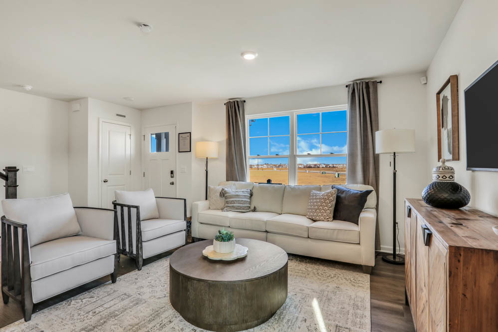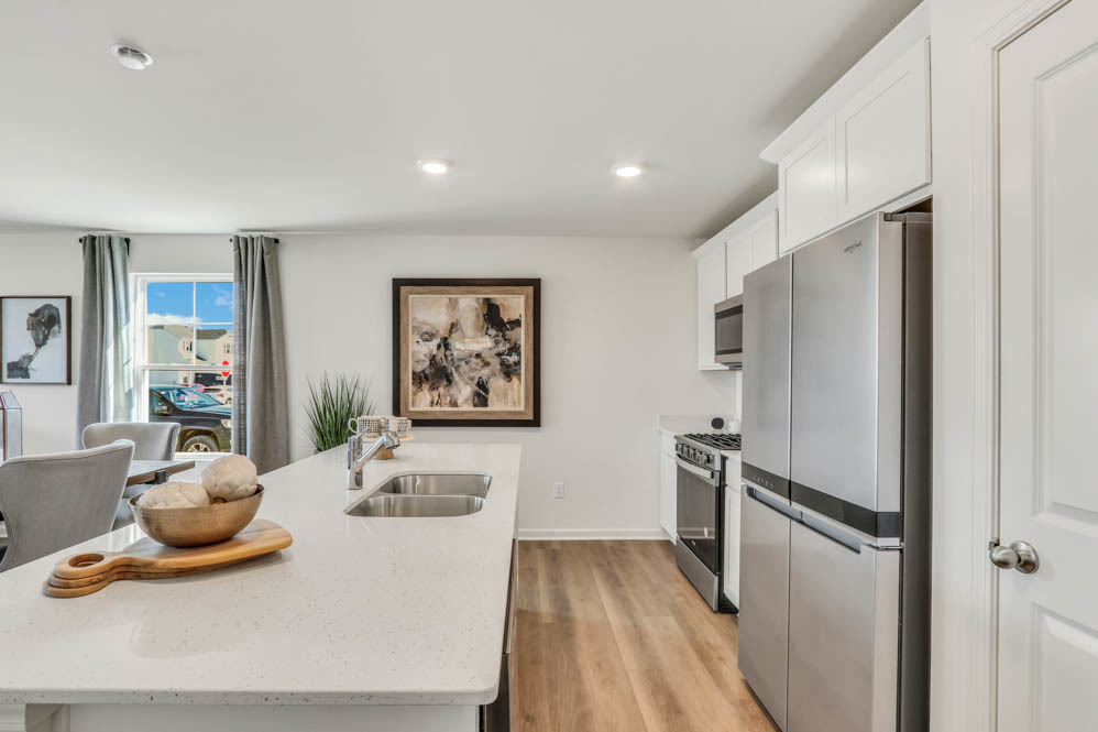 Discover yourself at, 2239 Riesling Rd, Oswego, Illinois, a beautiful new home in our Sonoma Trails community. This townhome is ready for a quick move-in! Homesite includes a fully sodded yard that is maintained throughout the year as well as snow removal in the winter. This home is built on a premium lot with a spacious front yard adjacent to the newer single-family homes. This Richmond townhome plan offers over 1,500 square feet of living space with 3 bedrooms plus a loft, 2.5 baths and a 2-car garage. As soon as you step inside, you’ll be greeted by our open concept living area, featuring luxury vinyl plank throughout the main living areas. The expansive kitchen overlooks both the front dining and back great room areas, making it the ideal space to entertain. Additionally, your kitchen features Smoke designer 42-inch cabinetry, a spacious island with quartz countertops, and pantry. Enjoy your large primary bedroom with a walk-in closet and connecting en suite bathroom. The rest of the upper level features a laundry room, secondary bedrooms with a full second bath, and linen closet. You’ll find luxury vinyl plank flooring throughout the main level living space, bathrooms, and laundry. Impressive innovative ERV furnace system and a 40-gallon water heater round out the amazing features this home has to offer! All Chicago homes include our America’s Smart Home Technology, featuring a smart video doorbell, smart Honeywell thermostat, Amazon Echo Pop, smart door lock, Deako smart light switches and more. Exterior photo of actual home. Interior Photos are of similar home and model home. Actual home built may vary.