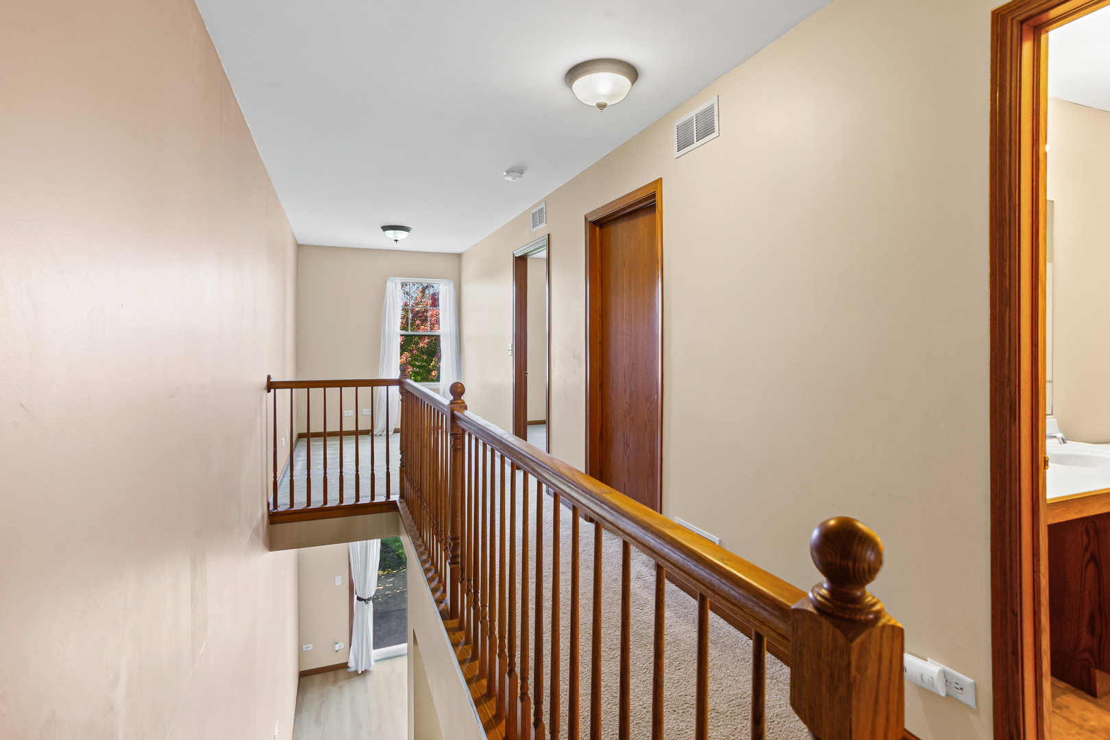 Beautiful 2 story townhome located in Carpentersville. 2bdr 1.5baths with loft space! Newly placed vinyl flooring all on 1st level. Newly renovated half bath, new toilet, new sink faucet, Kitchen has new never used gas range stove/oven with air fryer oven feature. Lovely back patio also! Upstairs has 2 bedrooms 1bth. Loft space for office/multipurpose area. Laundry room is conveniently located upstairs with washer and dryer. Mechanicals also located in laundry room. Home warranty will be included thru American Home Shield. Lovely home very well taken care of. 1 car garage with 2 space sleeve in front. More parking located to the right of home in designated parking area. School district were also updated 3 years ago reflecting Algonquin Schools. Property is vacant easy to show.