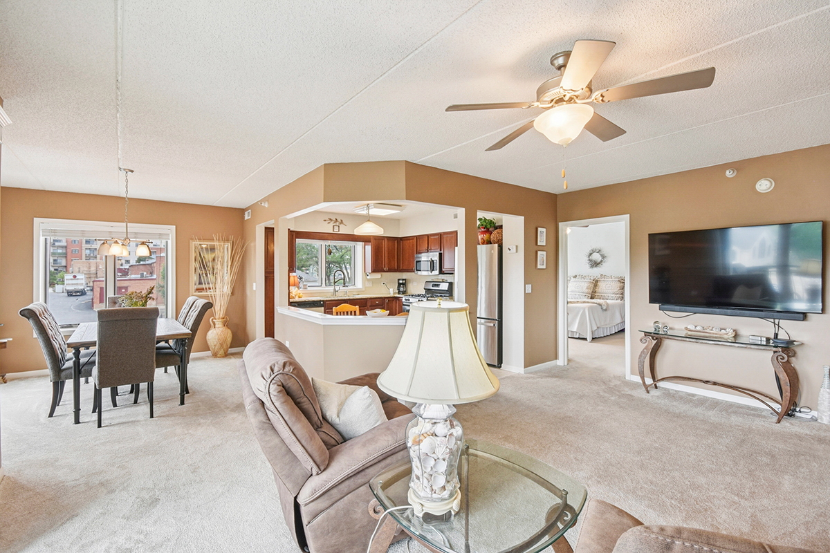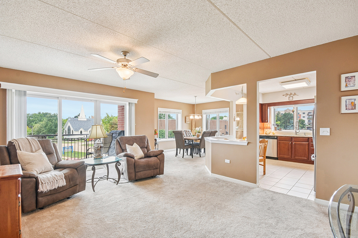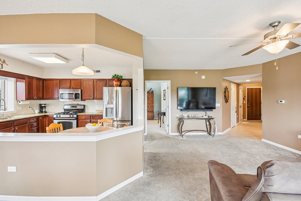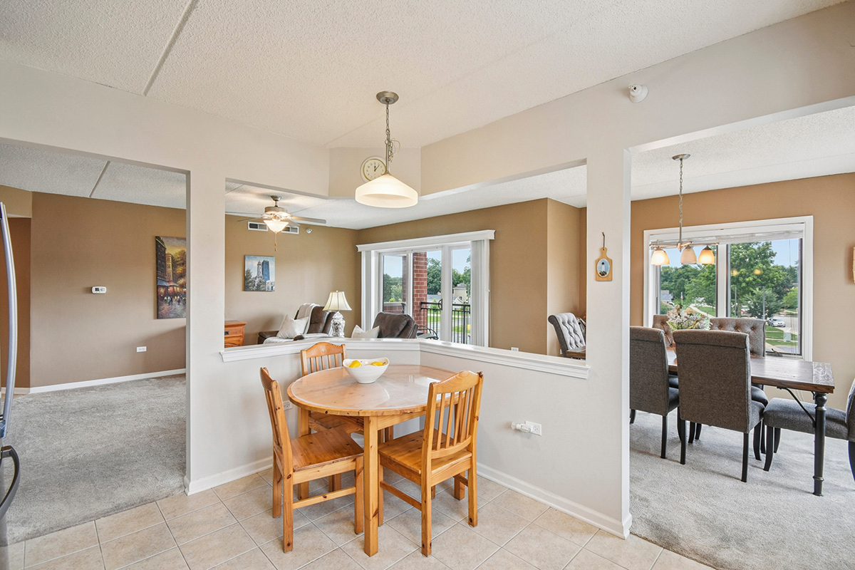 Luxury 2-Bedroom, 2-Bath Corner Unit Condo in the Heart of Downtown Roselle! Enjoy the perfect blend of style and convenience with this beautifully appointed condo just steps from the Metra, library, Starbucks, and Lynfred Winery. The kitchen features stainless steel appliances, maple cabinetry, and granite countertops. Upgraded ceramic tile flooring flows through the entry, hallways, kitchen, laundry, and baths for a sleek, low-maintenance finish. The spacious living area opens to a private balcony-ideal for summer relaxation. This secure, elevator building offers both comfort and peace of mind. The unit includes 1 heated underground garage space with storage plus 1 deeded outdoor parking space. A fantastic opportunity for anyone seeking a modern home in a vibrant downtown setting! FHA Approved