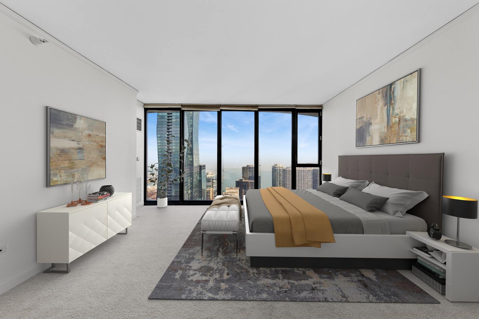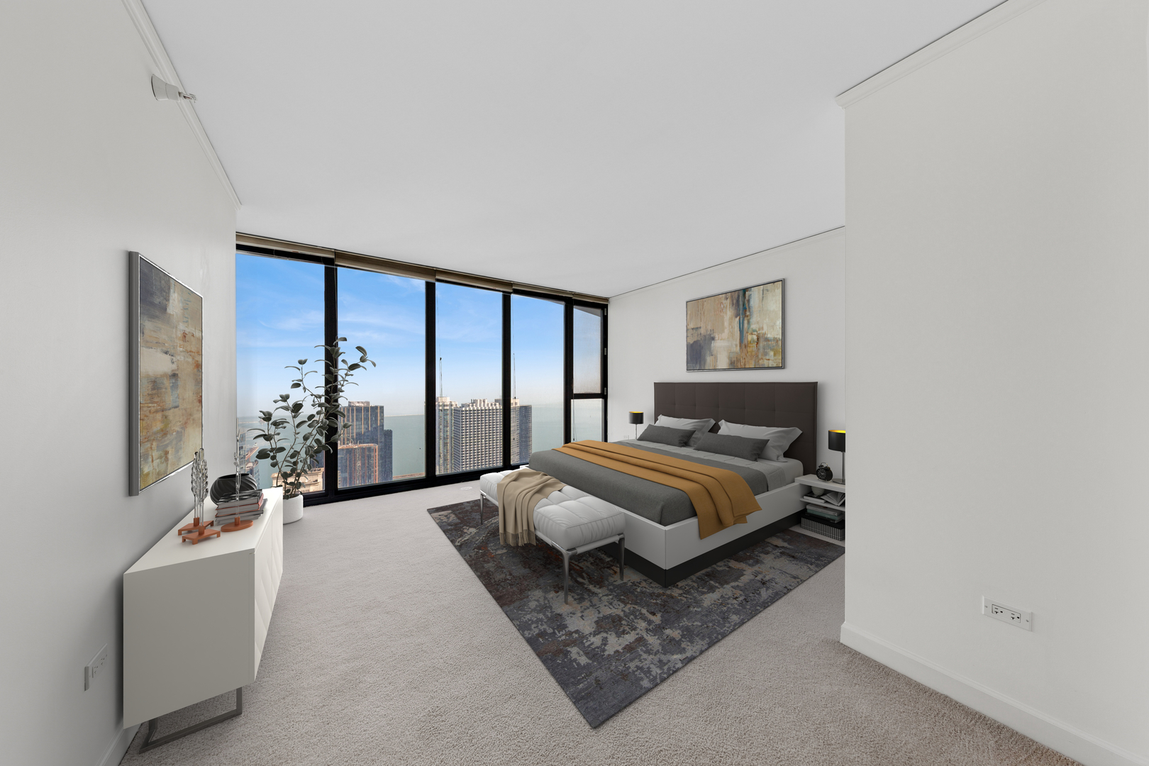 Rare Lakeshore East Offering. Residence 5905 is a true three bedroom and three full bathroom with nearly 2000 square feet of expansive floor plan and unencumbered views from its northeast and south wrapped corner floor plan. Enjoy breathtaking views of Chicago’s most prominent sections of its skyline, most iconic buildings of yesteryear and the modern/contemporary era, enormous Lake Michigan and city park views. Residence 5905 features formal entry, hardwood floors, open kitchen concept with all new Whirlpool stainless steel kitchen appliance, gas cooking, 1.25″ straight edge granite counters, all wood cabinetry, 42′ upper cabinets, raised breakfast bar for seating and entertaining/conversation and dining, floor to ceiling window in the kitchen. Sumptuous living/dining areas with uninterrupted floor to ceiling glass curtain walls, large terraces which allow you to step out and nearly touch the cityscape. All full bathrooms dressed in travertine and marble. Ensuite primary and second bedrooms. Walk in closets. Dual vanity. Separate soaking tub and shower. In-unit washer and dryer. Nothing more complete in Lakeshore East than Aqua Tower. Truly a full service amenity building with easiest access to the Lakeshore East Park, Mariano’s, and Chicago’s Underground Pedway. Aqua is a full service high-rise with 120,000 square feet of amenities space including an indoor lap pool, finest gym, basketball court, cardio room, steam, sauna, movie theatre and game rooms. Outdoor lap pool on sundeck, running track, fire pits, various lounge spaces. 24 hour doorstaff. Two garage parking spaces offered, P3-39 for $65,000 and P3-41 for $54,000 – prime locations. Residence 5905 includes a storage cage. Lakeshore East Three bedrooms are a scarce offering in the Lakeshore East community. Don’t wait. Permanent views, unobstructed views.