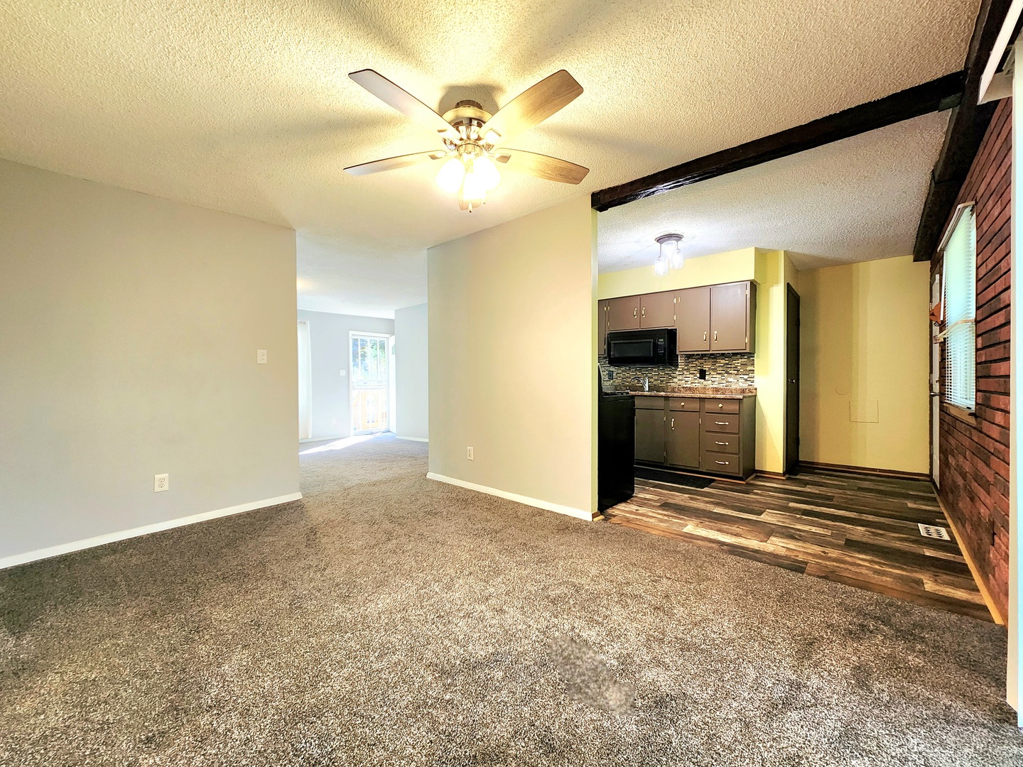 Welcome home to this beautifully updated 4-bedroom, 1-bath residence offering comfort, space, and convenience. Step inside to an open kitchen and dining area with a beautifully exposed brick wall, perfect for entertaining, featuring appliances including a microwave, stove, and refrigerator. The updated bathroom boasts a his-and-hers sink and stylish finishes. Enjoy extra living and storage space in the full basement, complete with a washer and dryer. The home also includes an attached garage for easy parking and added convenience. Out back, you’ll love the huge backyard with a patio – ideal for gatherings, gardening, or simply relaxing outdoors. Conveniently located just off the main road, this property offers quick access to shopping, schools, parks, and transportation routes while maintaining a quiet neighborhood feel. This move-in ready home combines modern updates with classic charm – perfect for comfortable everyday living! Taxes will be lowered with exemptions