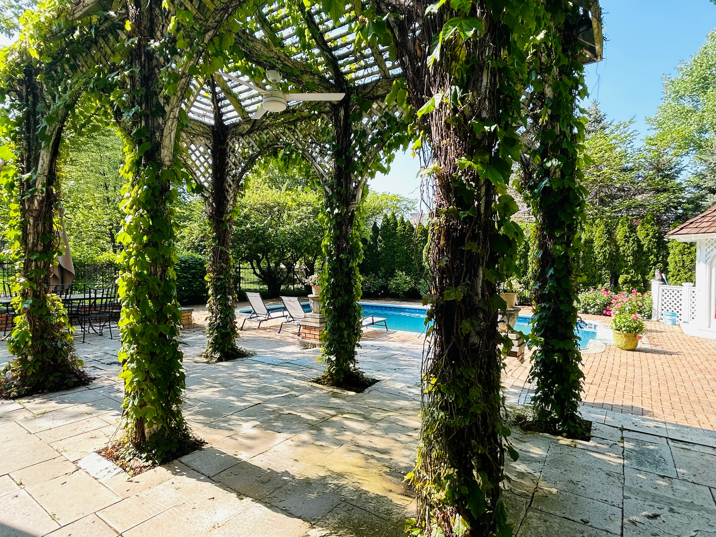Timeless elegance meets resort-style living in this reimagined, custom-built all-brick estate on prestigious Leask Lane in Lisle, within award-winning Naperville District 203 schools. Originally the model home, this sun-filled residence offers exceptional craftsmanship, beautiful woodwork, high ceilings, arched doorways, hardwood floors, leaded glass, and plantation shutters throughout. The gourmet kitchen features Sub-Zero, Bosch, and Dacor appliances, double ovens, large island, and oversized pantry perfectly positioned for entertaining and backyard views. The main level includes a gorgeous oak-paneled office, full bath, and first-floor bedroom, plus a versatile music/flex room with walnut bar, beverage fridge, and ice maker. A sunroom/fitness room has terracotta floors, skylights, and sliders opens to the resort-like yard. Upstairs offers a luxurious primary suite with fireplace, beamed ceilings, dual sinks, and a large bath, along with spacious bedrooms featuring custom built-ins and updated baths. The finished basement is an entertainer’s dream with knotty pine paneling, wet bar, pool table, built-in banquette, office, bedroom, full bath, an integrated audio/visual system for the house and yard, and huge storage room. Additional highlights include a whole-home generator, 3-car epoxy-floor garage, and beautifully reimagined spaces throughout. This home is filled with versatile spaces. This is a rare opportunity to own a private, meticulously maintained luxury retreat!