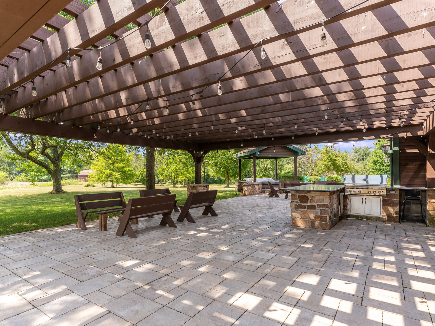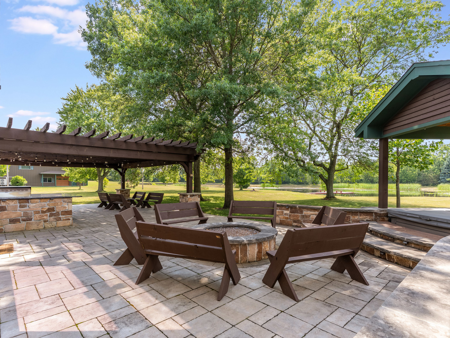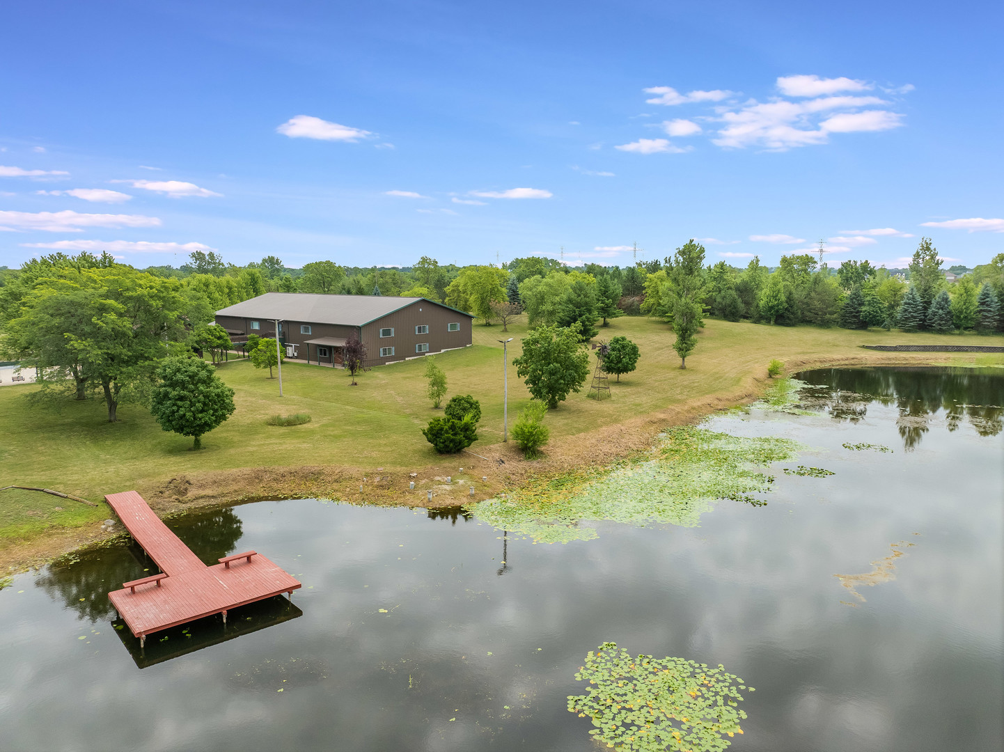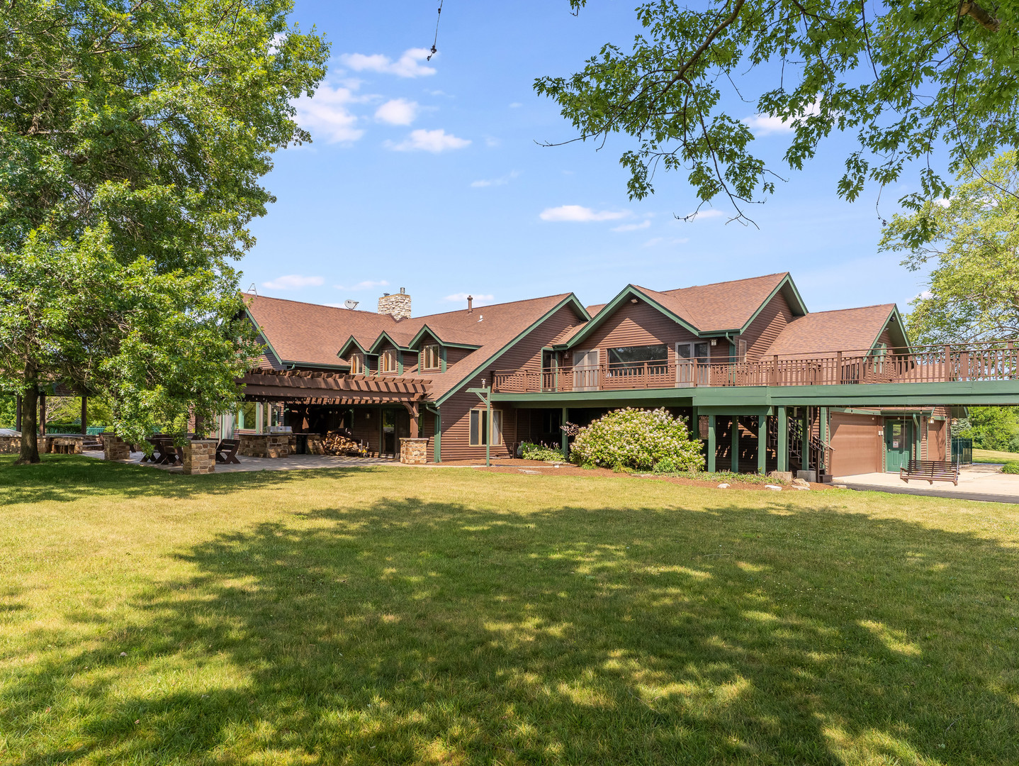Welcome to this extraordinary 22-acre multi-use sprawling estate in Frankfort. Offering a rare combination of luxury living, endless potential, and tranquil surroundings-just minutes from shopping, dining, interstate access, and highly rated schools. This luxury listing features 4 structures – the main 2-story single family home, a large detached guest house, a storage building/animal boarding building, plus your very own gymnasium! Privately gated and meticulously designed, the main 9-bedroom, 6.5-bath residence features Brazilian cherry inlay hardwood floors, a luxury chef’s kitchen, a first-floor office, and a stunning see-through fireplace in the family room with soaring 24-foot vaulted ceilings and floor-to-ceiling windows showcasing panoramic backyard views of the wildlife and private pond. The main floor includes three bedrooms, while the second floor offers five more, including a spacious primary guest suite with a private sitting area, two large walk-in closets, and deck access via an elevated crosswalk connecting three buildings – plus an adjacent work out room or studio. The finished basement is an entertainer’s dream, complete with radiant heated floors, a full guest suite, family room with a dramatic all-stone two-sided fireplace, and a wine cellar. The home features a central vacuum and sound system, an exterior camera monitoring system, and is wired for a commercial grade fire alarm system. The detached guest home offers studio-style/loft living with 1.5 baths, two extra shower stalls, an 18-foot custom built bar, private deck access, and crosswalk views of the serene 3-acre fully stocked pond. An 11,000 sq ft ADA-compliant gymnasium includes sport court flooring for basketball, pickleball, and volleyball, a dance studio, lofted workout space, radiant heated floors, and multiple bathrooms with shower stalls for your guests. The gym has been wired and piped for a full fire protection system allowing for future assembly usage. The sport court flooring is removable, allowing conversion into a custom garage space that can house up to 50 vehicles. Also included is a fourth structure-a cedar-lined luxury dog house featuring heated floors, a camera system, four dog bays, and a separate fenced dog run. Zoned R2 with an approved permit for a PUD (planned unit development), this property presents endless possibilities: a single family estate, retreat center, ministry headquarters, equestrian estate, group home of less than 8 residents, or potential new home development. A unique opportunity-12 subdividable lots are included in this sale and connect to the neighboring community, offering even more value and flexibility. The lots could be developed with the adjacent neighborhood or included with this dream property. This one-of-a-kind property must be seen to be fully appreciated! EM payable via certified funds to Coldwell Banker Real Estate Group. Building breakdown: Home 8,740 sf (9BR/6.5BA), Guest House 1,409 sf (Studio BR/1BA), Gym 11,000 sf (0BR, 3 half BA), Dog House 336 sf (0BR/0BA).