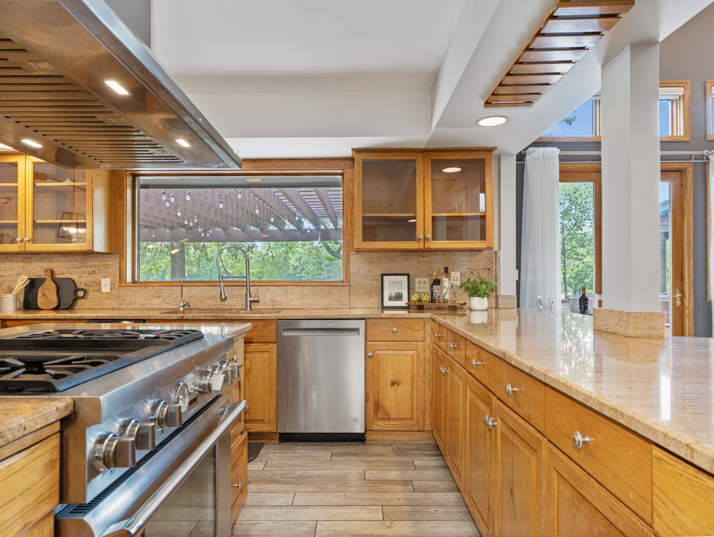 • Interior Features: Vaulted Ceiling(s),1st Floor Bedroom,In-Law Floorplan,Walk-In Closet(s),Beamed Ceilings,Open Floorplan,Granite Counters,Pantry