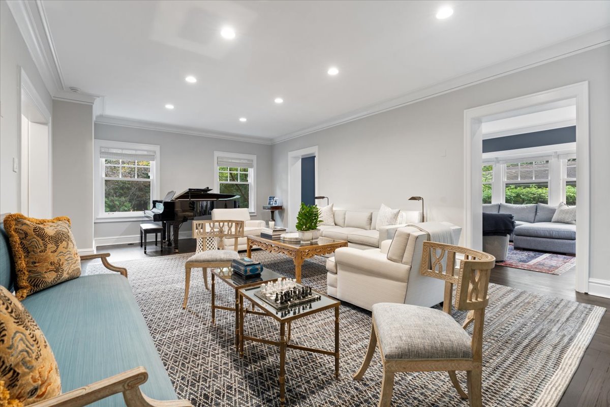 Set on a beautifully landscaped half-acre lot with a circular drive, 2276 Linden is a stunning Georgian residence that blends classic character with thoughtful updates and modern luxury. With exceptional curb appeal, this meticulously maintained home offers an inviting layout ideal for both everyday living and elegant entertaining. Inside, the formal living room featuring an elegant fireplace and the spacious dining room are complemented by a sun-filled breakfast area, a cozy family room with a gas fireplace off the kitchen, and a charming sunroom/secondary family room. The gourmet chef’s kitchen is a true standout, featuring premium appliances including two Miele dishwashers, Wolf six-burner cooktop and oven, Thermador double oven, Sub-Zero side-by-side refrigerator/freezer plus Sub-Zero refrigerator/freezer drawers, and a Dacor warming drawer. Upstairs, the luxurious primary suite impresses with a large walk-in closet, sitting area or office, and access to a private outdoor retreat. The spa-quality marble bath features a steam shower, jacuzzi tub, and custom built-ins. Two additional bedrooms share a full bath, and a convenient second-floor laundry room completes this level. The third floor adds versatility with a spacious playroom, two more bedrooms – one with en-suite bathroom – plus another full hall bath – just perfect for guests, teens, or extended family. The finished basement offers even more living space, including a recreation room, powder room, exercise area, secondary laundry, and generous storage. Outside, enjoy extensive landscaping with an irrigation system, a 3-car heated attached garage with 9-foot doors, and a backup generator for peace of mind. Ideally located near town, the lake, and the train, this exceptional property combines timeless architectural charm with every modern comfort-an unparalleled opportunity to own a true North Shore classic.