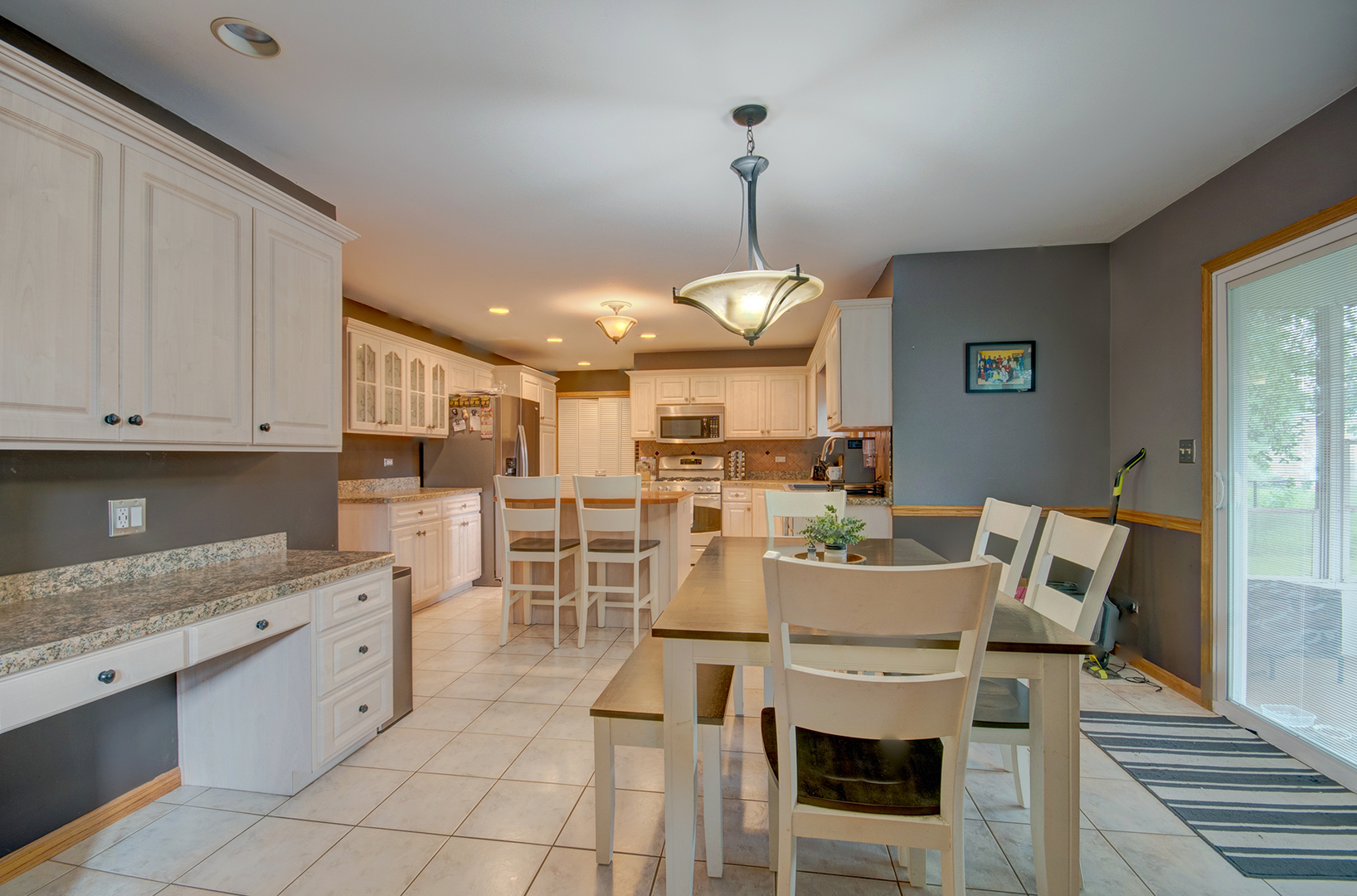 Stunning 2-story home on a wooded half-acre lot, beautifully designed inside and out. Highlights include a curved oak staircase, premium oak trim and doors, 9-foot ceilings, and a formal dining room. The living room/office with French doors opens to a spacious family room featuring a wood-burning fireplace, 10-foot ceilings, and hardwood floors. The large eat-in kitchen boasts a center island, ample cabinetry, and newer refrigerator and dishwasher. Enjoy summer evenings in the screened sunroom overlooking a fenced backyard with a 16×12 oversized shed and firepit. The master suite offers a vaulted ceiling, extensive closet organizers, and a luxurious bathroom with a whirlpool tub. Additional upgrades: New Roof and gutters in 2023, new humidifier, furnace, and A/C (2018), newer hot water heater. A must-see, absolutely gorgeous! Close to I80 & I55.