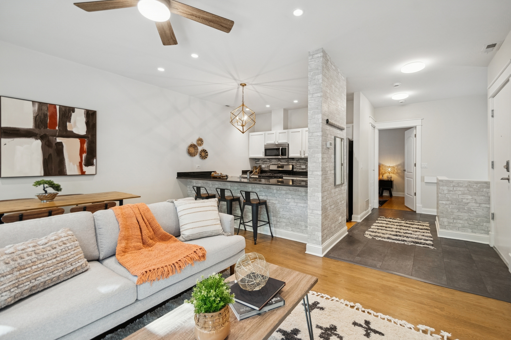 Rarely Available Corner Duplex in the Heart of West Loop’s coveted Block X. Welcome to this beautifully maintained corner duplex located in one of West Loop’s most sought-after gated communities. This spacious 2 bedroom/ 2 bath has an open floorplan, large gated patio off main living area overlooking the beautifully landscaped courtyards -an ideal setting for morning coffee, evening relaxation, or outdoor play. This unique living space has been impeccably maintained, freshly painted, hardwood floors, an updated kitchen, an office nook, laundry room, generously sized and organized closets for optimal storage. One of only two units in the building with a private, attached garage-offering not only secure parking but also valuable additional storage. All of this in a prime West Loop location-just steps to world-class dining, top tech companies, boutique shopping, excellent schools, parks, and multiple public transit options.