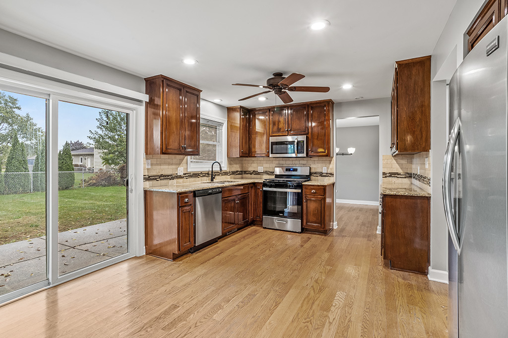 Nestled in the highly sought after Lincoln Way West school district! Beautiful home filled with tons of natural sunlight and features gleaming hardwood flooring throughout the main level .Incredibly spacious 4 bedroom home located that has been rehabbed and is move in ready! Formal living room and dining room is the ideal space to entertain. The gorgeous kitchen boasts 42-inch custom cabinets, granite countertops, a glass tiled backsplash, stainless steel appliances and a breakfast bar for additional seating and storage. Relaxing family room off of the kitchen with a stunning fireplace. On the second level The master bedroom includes a walk-in closet, and private full bathroom with a seperate shower. Three additional bedrooms also on the second level that are generous sizes and all share a full bathroom. Full unfinished basement includes a laundry area and opportunity to turn into your dream space for recreation, family area, gaming storage and more. Great yard space with a patio to unwind, fenced yard and firepit. Easy access to I-80, I-355, walking paths, parks, dining and more.