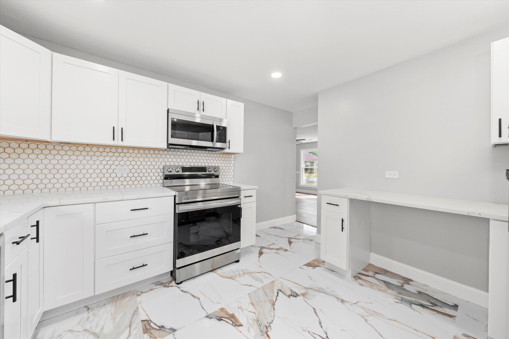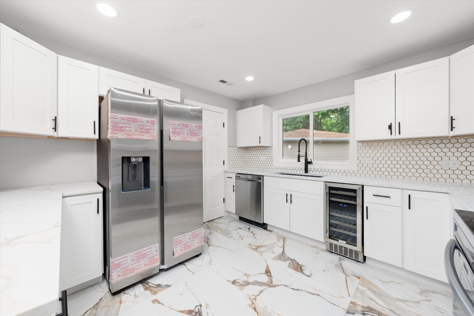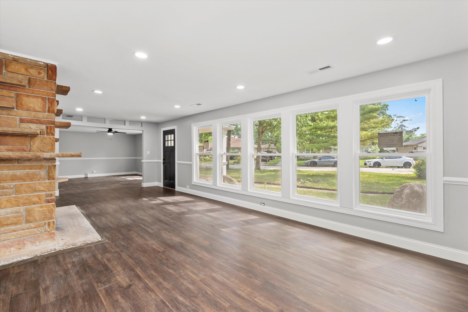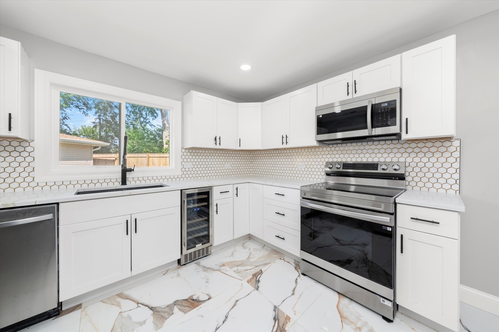 Simply beautiful! This sprawling corner ranch home stands out in this quiet neighborhood. Great pride has been taken into restoring it inside and out. Exterior: The home on this large tree-lined lot has been “wrapped” with new siding, new windows and a new roof. New siding was installed on the 2-car garage as well. A new privacy fence surrounds the entire spacious backyard. The newly re-surfaced driveway is great for additional parking. Interior: Upon entering, you will observe the custom-built fireplace encased in stone in the expansive living room. New flooring has been installed throughout. The primary bedroom has its own private bathroom. Both bathrooms were meticulously updated from top to bottom. In addition, the kitchen received a makeover with all new cabinets/faucets/sink/backsplash/quartz countertops/floor/appliances, incl a wine cooler fridge! To top it off, we have a new furnace/AC/water heater. In other words, it’s move-in ready! See for yourself. Parks, restaurants, the University Park Golf Club, places of worship are nearby. Perfect home for a disabled resident. Fireplace AS-IS.