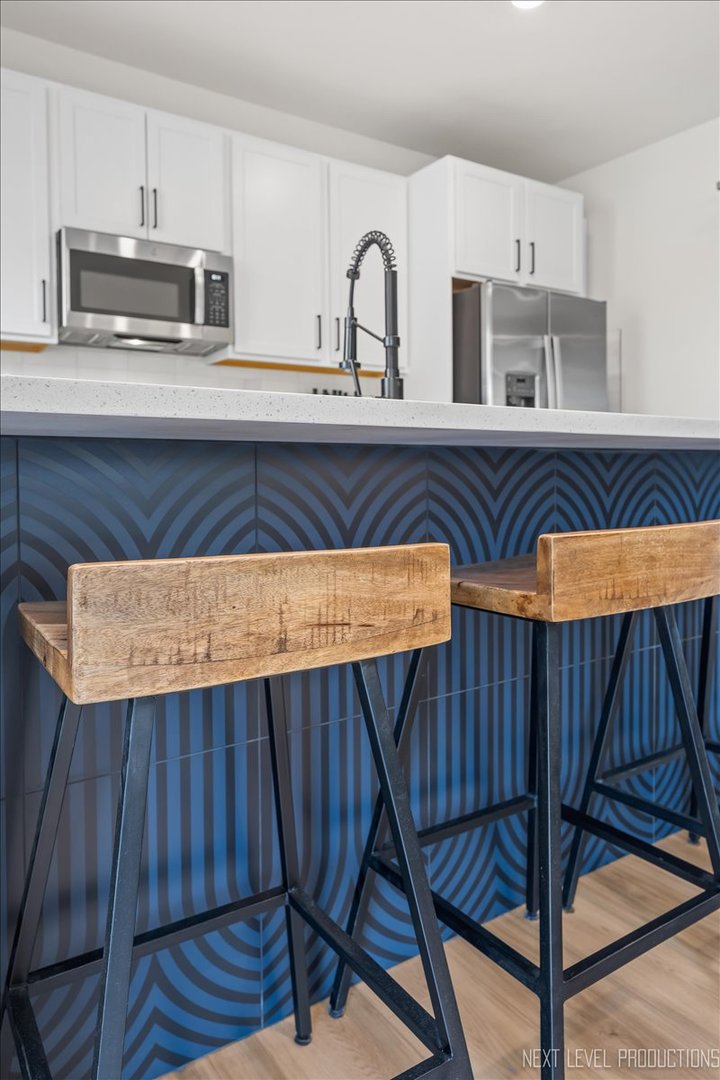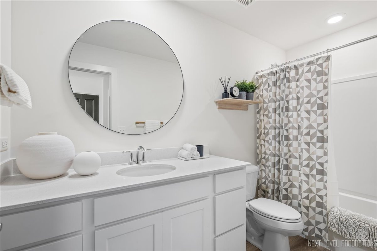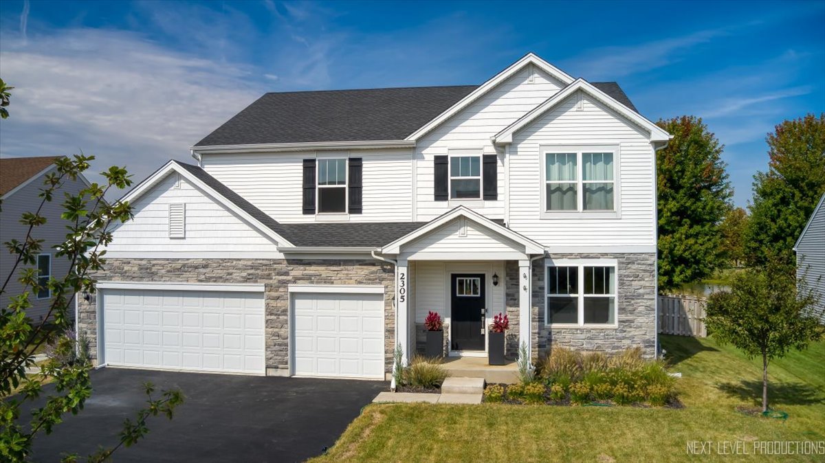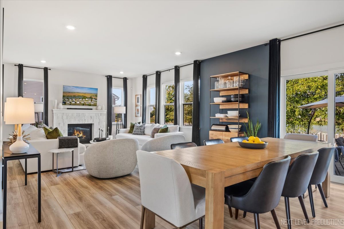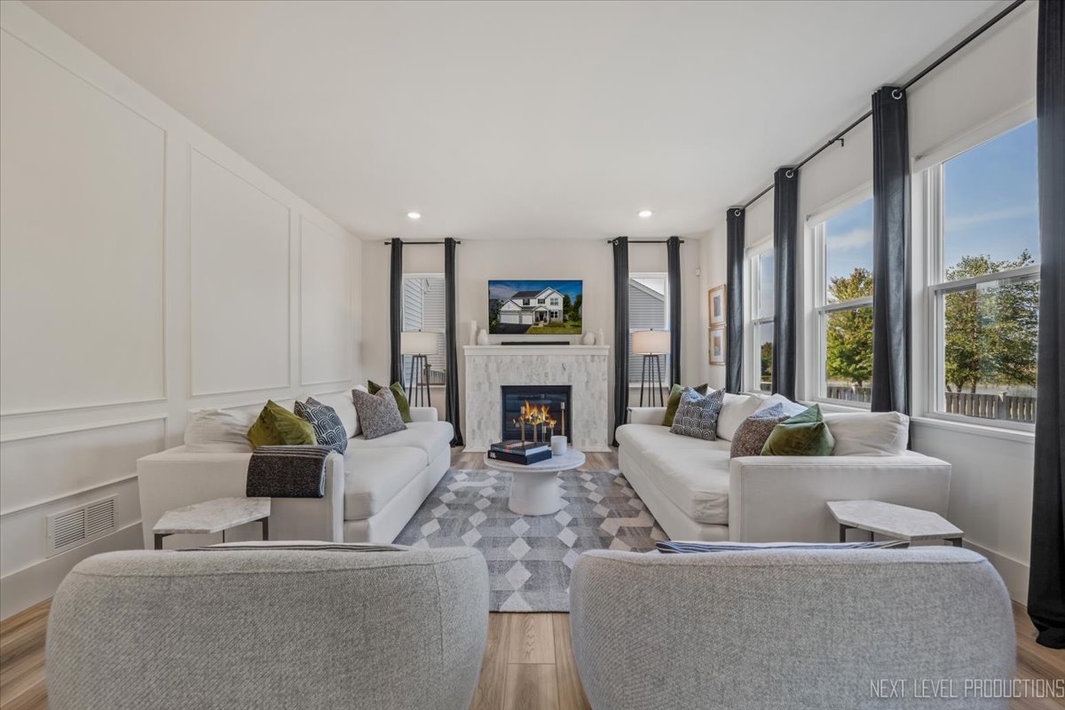 Discover the epitome of move-in ready luxury in this spectacular modern retreat. A perfect blend of classic charm and contemporary design with high-end finishes and thoughtful details. Each detail has been sensibly selected, from high-end finishes to custom upgrades, so you can begin your next chapter in modern luxury. Step inside to an open-concept living space designed for gathering and entertaining. The heart of the home is a stunning kitchen, featuring an approximate 9-foot quartz island with waterfall edge, sleek tile accents, and additional custom cabinetry and counters for maximum functionality. Stainless steel appliances complete the space making it both stylish and purposeful. The family room is a showstopper, featuring a gas fireplace wrapped in custom marble for a bold yet elegant centerpiece. Throughout the main level, you’ll find upgraded 8-inch baseboards coupled with 4-inch door trim, painted feature walls, a wainscot moulding accent wall, solid surface floors, and carbon black painted doors for an added touch of sophistication. The powder room has been improved with a floor to ceiling marble wall complete with a modern designed vanity. Upstairs, the same flooring runs throughout, creating a cohesive look across the home. The second floor offers four spacious bedrooms for comfort and privacy. The primary suite is a standout, featuring an en-suite bath with a large walk-in shower, private water closet, double vanity with quartz counters, and a custom closet outfitted with a premium Container Store organization system that is versatile and easily configurable. The second bedroom is impressively sized to accommodate a king bed with ease, while two additional bedrooms include walk-in closets, providing generous storage space. The shared bath features a sleek mirror, large vanity with quartz counter, and a tub shower combination. The laundry room with front load washer and dryer is conveniently located off the hall in close proximity to all bedrooms. Unwind after a long day in your stunning west-facing backyard.. an idyllic, private retreat overlooking a serene large retention pond. This premium lot offers peace of mind with a full fence, an expansive patio perfect for entertaining or quiet evenings, and a raised garden for homegrown produce. Enjoy breathtaking sunsets from your own front-row seat. The community features top-tier amenities including a pool, fitness center, parks, and more. This community has something for everyone. Don’t miss this rare opportunity. Schedule your showing today!