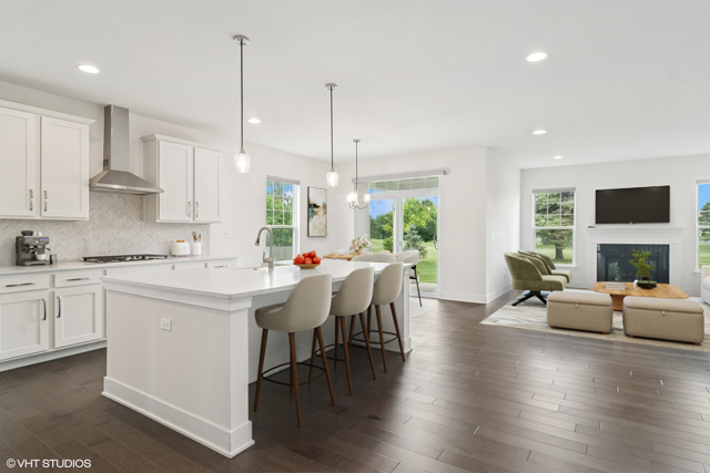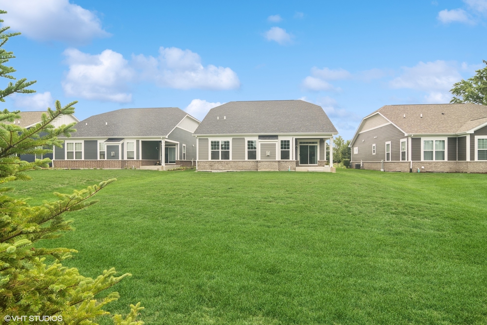 Welcome to this exceptional new construction ranch, perfectly positioned on the 5th fairway of Kemper Lakes Golf Course with sweeping views of the lush greens and tranquil water features. This custom-built home offers the ultimate in single-level living with 3 spacious bedrooms, elegant finishes, and a thoughtful floor plan designed for both comfort and style. From the moment you step inside, you’ll notice the expansive windows that fill the home with natural light and frame the breathtaking golf course scenery. The open-concept design flows seamlessly from the bright living space into the chef’s kitchen, where you’ll find top-of-the-line stainless steel appliances, an oversized island, and abundant cabinetry-ideal for everyday living and entertaining alike. Adjacent to the dining area, a porch invites you to relax and unwind while taking in the peaceful views-whether you’re enjoying a quiet morning coffee or entertaining guests in the evening. The serene primary suite offers a luxurious escape, complete with a large walk-in closet and a spa-inspired en-suite bath featuring double vanities, separate walk-in shower, and private water closet. Two additional bedrooms offer flexibility for family, guests, or a dedicated office space. Downstairs, the 2,200 sq ft unfinished basement with high ceilings and rough-in plumbing presents endless opportunities-whether you’re dreaming of a home gym, rec room, theater, or expanded living space. Located in the award-winning Stevenson High School District, this home combines luxury, convenience, and an unbeatable golf course setting. Enjoy modern living in a truly picturesque environment-this is a rare opportunity you won’t want to miss.