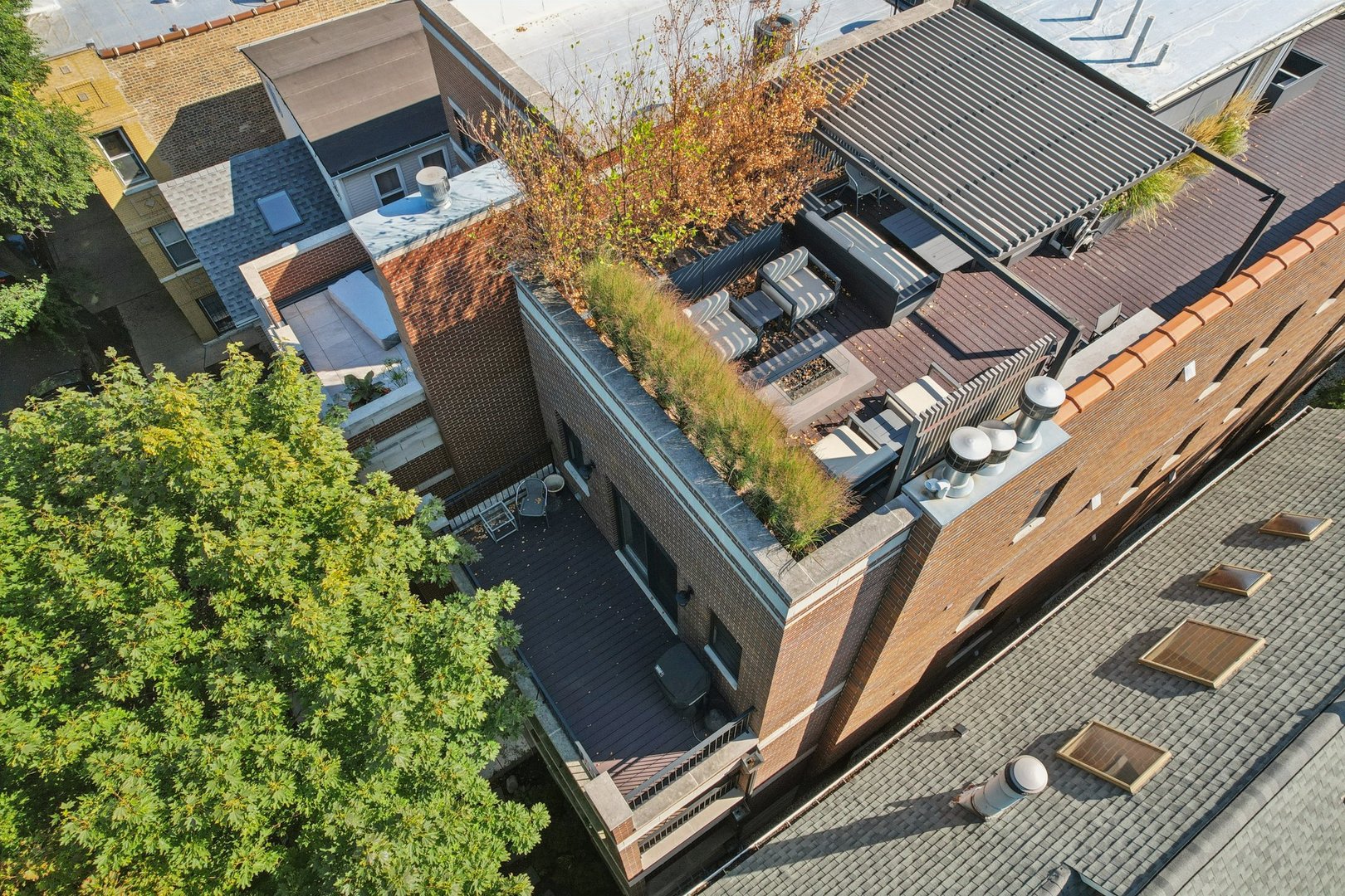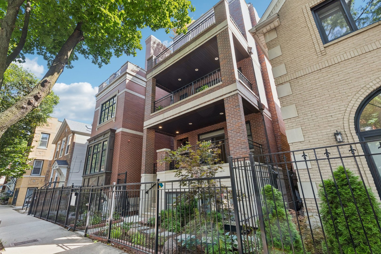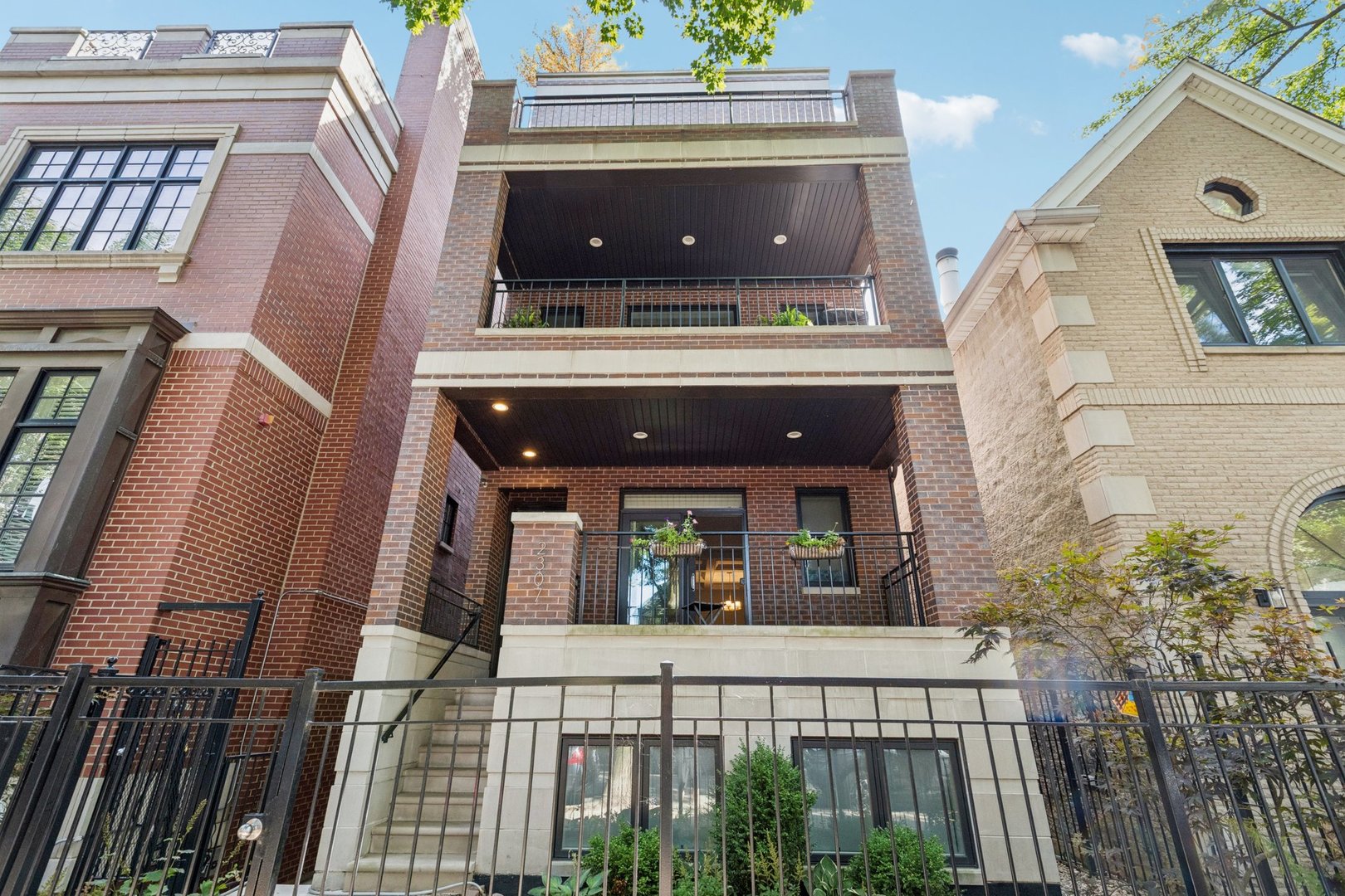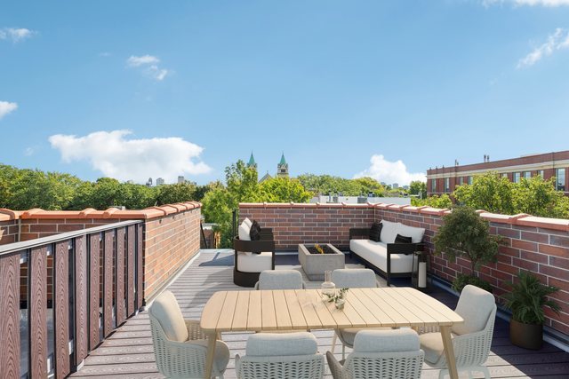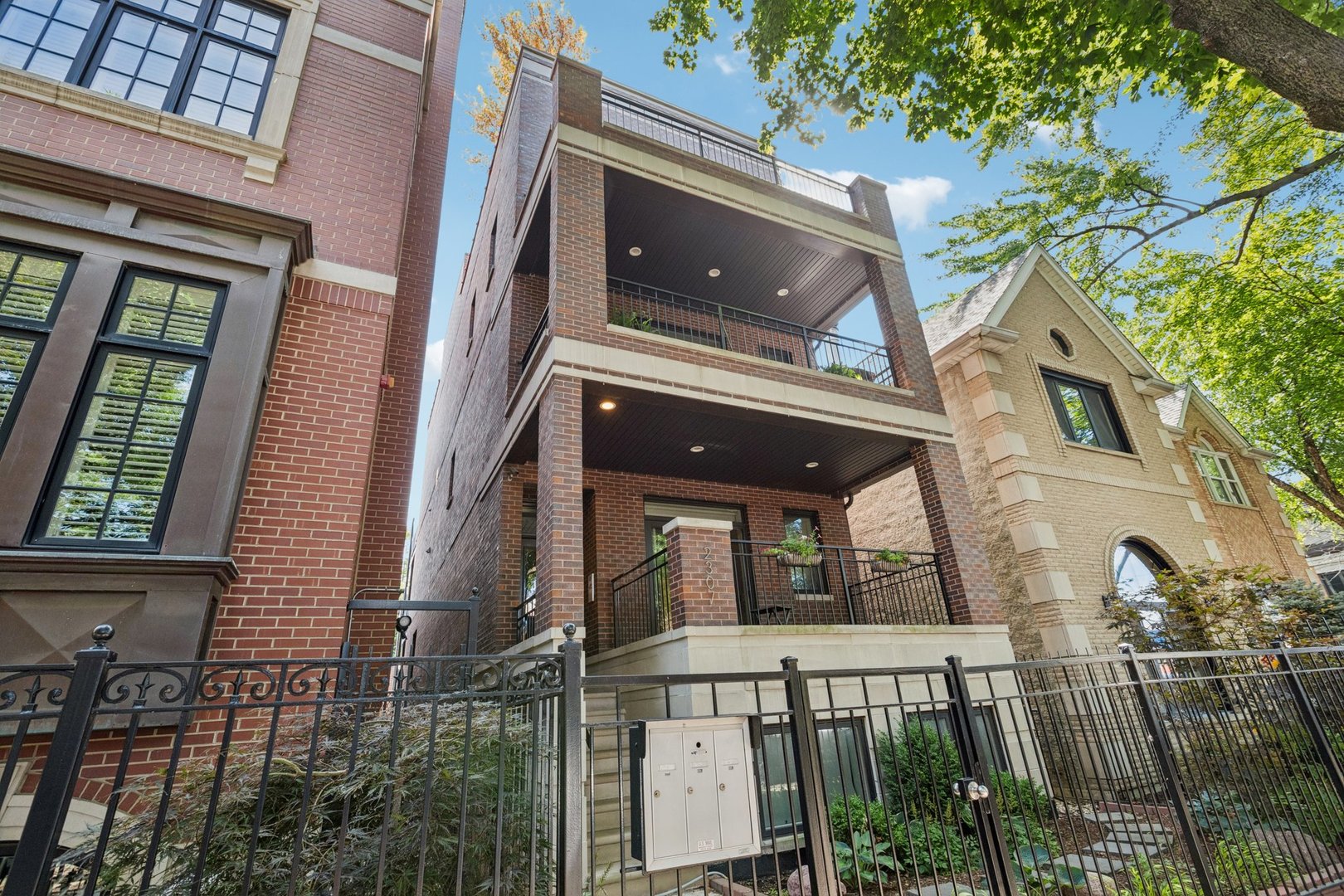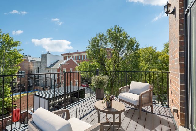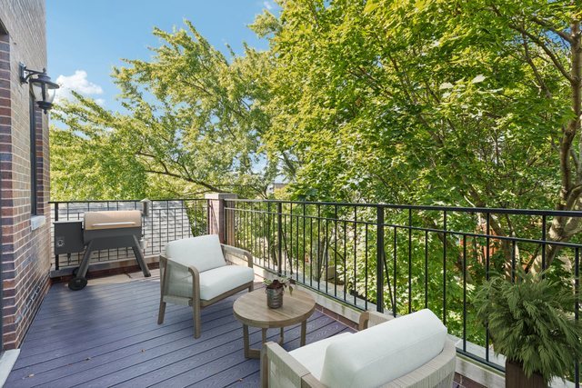 Welcome to 2307 N. Greenview! This refined 2-bedroom, 2-bath penthouse is situated in a boutique, newer-construction building within the coveted Oscar Mayer school district. It offers luxury finishes and rare outdoor space, and its deeper lot provides a larger-than-standard layout, complemented by concrete soundproofing between floors. This thoughtfully designed home features an expansive floor plan with rich millwork, tall coffered ceilings, and walnut hardwood floors. The bright and spacious living room comfortably accommodates a dining table and includes a gas fireplace, and a large front patio overlooking the treetops on Greenview Street. The living room seamlessly opens into a gorgeous white kitchen, which boasts quality Orchard Hill cabinetry (including glass-lit upper cabinets reaching the ceiling), a stainless Wolf Range with hood, an oversized Subzero refrigerator, an Bosch dishwasher, a built-in microwave, Quartz counters, pendant lighting, and a large double peninsula perfect for entertaining. Both bedrooms are generously sized. The king-sized primary suite offers a spa-like bath with classic white and gray marble subway tile, a double sink vanity, radiant heated floors, and a large walk-in steam shower with a rain shower head and body sprays, plus a walk-in closet. An interior staircase leads to a spacious loft area, equipped with a built-in dry bar featuring elegant quartz countertops, a convenient beverage fridge, and a large utility closet. The outdoor living spaces are truly unmatched, with front and rear terraces, plus a private rooftop deck showcasing sweeping city views. This oasis features low-maintenance Trex decking and is an ideal space for entertaining, complete with a custom pergola, planters with foliage, a fire pit, water access, and custom lighting, allowing the rooftop to be enjoyed day and night. Additional highlights of this home include in-unit laundry, surround sound speakers, garage parking, extra storage, and low HOA fees. This penthouse is located on a quiet, tree-lined, one-way block in Lincoln Park, offering a blend of everyday convenience and elevated style. Its amazing location provides easy access to all the city has to offer, including tremendous dining and nightlife in Lincoln Park, excellent shopping at North and Clybourn, and convenient public transit from both the Fullerton El stop and Metra. Additionally, you’ll find easy access to I-90/94, a variety of grocery stores, and multiple great parks just moments away. This home boasts many impressive features, and I encourage you to schedule a private appointment today to experience it for yourself. Central Vac, RH deck furniture, TV, sonos speaker system, and Webster Grill included in sale.