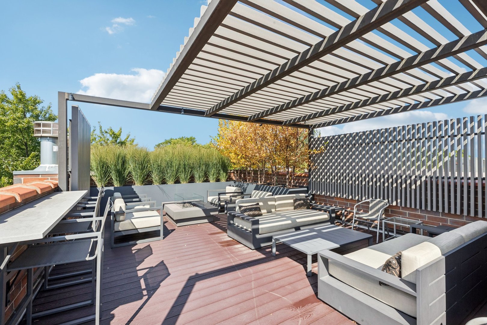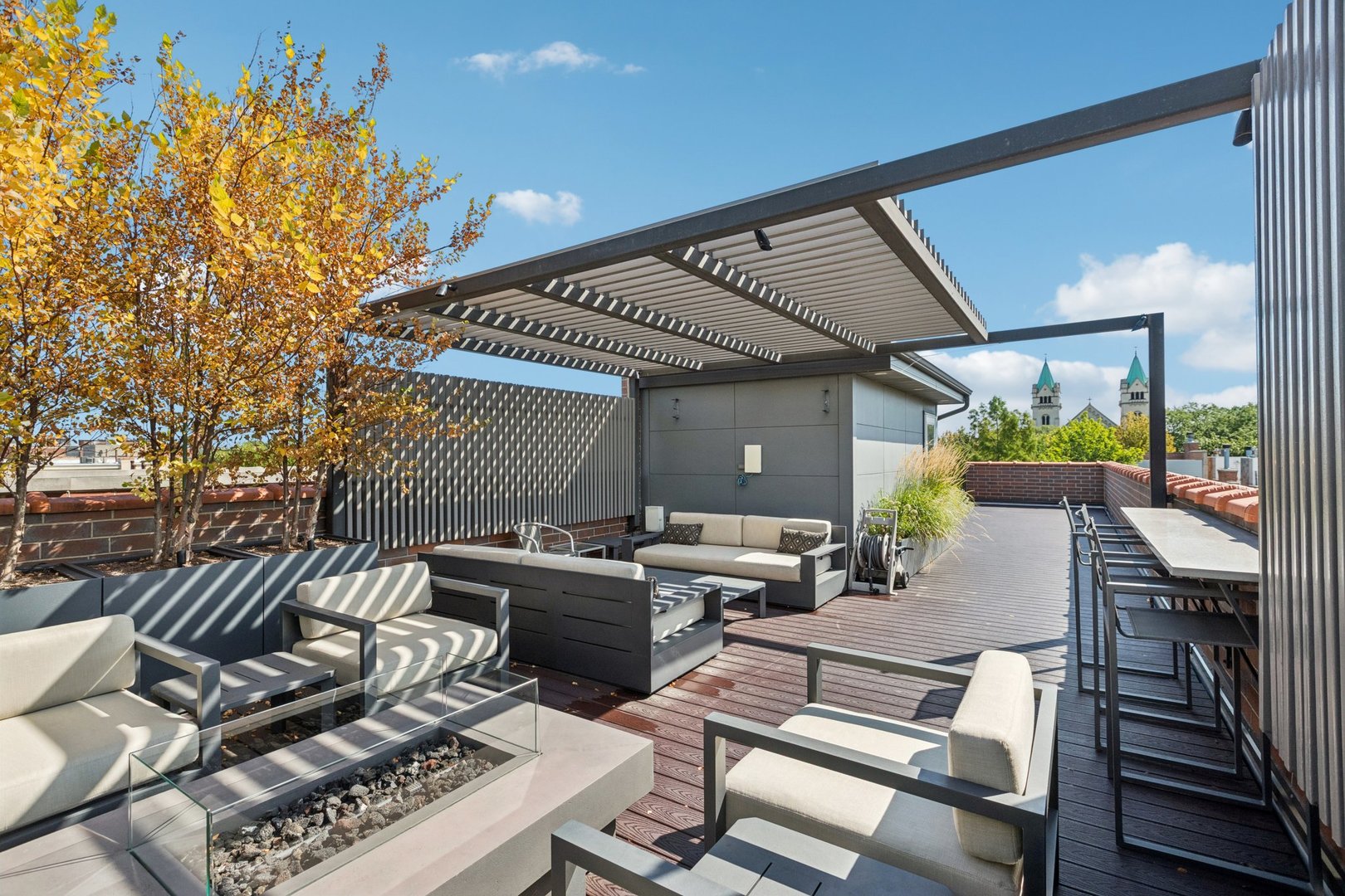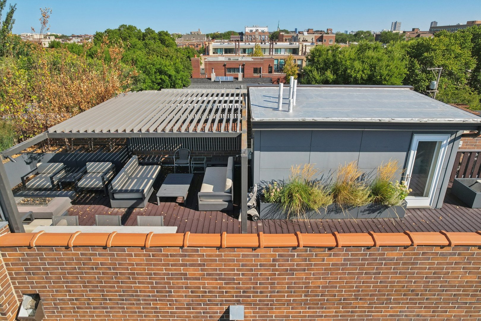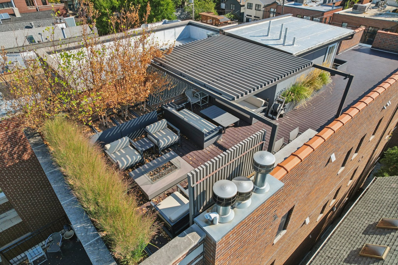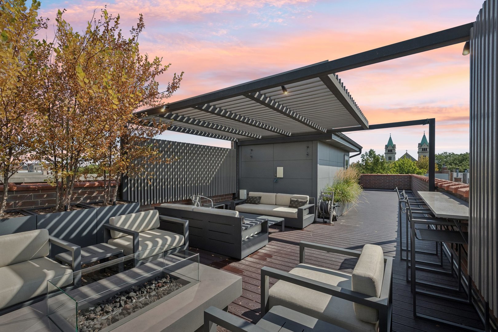 Welcome to 2307 N. Greenview! This refined 2-bedroom, 2-bath penthouse is situated in a boutique, newer-construction building within the coveted Oscar Mayer school district. It offers luxury finishes and rare outdoor space, and its deeper lot provides a larger-than-standard layout, complemented by concrete soundproofing between floors. This thoughtfully designed home features an expansive floor plan with rich millwork, tall coffered ceilings, and walnut hardwood floors. The bright and spacious living room comfortably accommodates a dining table and includes a gas fireplace, and a large front patio overlooking the treetops on Greenview Street. The living room seamlessly opens into a gorgeous white kitchen, which boasts quality Orchard Hill cabinetry (including glass-lit upper cabinets reaching the ceiling), a stainless Wolf Range with hood, an oversized Subzero refrigerator, an Bosch dishwasher, a built-in microwave, Quartz counters, pendant lighting, and a large double peninsula perfect for entertaining. Both bedrooms are generously sized. The king-sized primary suite offers a spa-like bath with classic white and gray marble subway tile, a double sink vanity, radiant heated floors, and a large walk-in steam shower with a rain shower head and body sprays, plus a walk-in closet. An interior staircase leads to a spacious loft area, equipped with a built-in dry bar featuring elegant quartz countertops, a convenient beverage fridge, and a large utility closet. The outdoor living spaces are truly unmatched, with front and rear terraces, plus a private rooftop deck showcasing sweeping city views. This oasis features low-maintenance Trex decking and is an ideal space for entertaining, complete with a custom pergola, planters with foliage, a fire pit, water access, and custom lighting, allowing the rooftop to be enjoyed day and night. Additional highlights of this home include in-unit laundry, surround sound speakers, garage parking, extra storage, and low HOA fees. This penthouse is located on a quiet, tree-lined, one-way block in Lincoln Park, offering a blend of everyday convenience and elevated style. Its amazing location provides easy access to all the city has to offer, including tremendous dining and nightlife in Lincoln Park, excellent shopping at North and Clybourn, and convenient public transit from both the Fullerton El stop and Metra. Additionally, you’ll find easy access to I-90/94, a variety of grocery stores, and multiple great parks just moments away. This home boasts many impressive features, and I encourage you to schedule a private appointment today to experience it for yourself. Central Vac, RH deck furniture, TV, sonos speaker system, and Webster Grill included in sale.