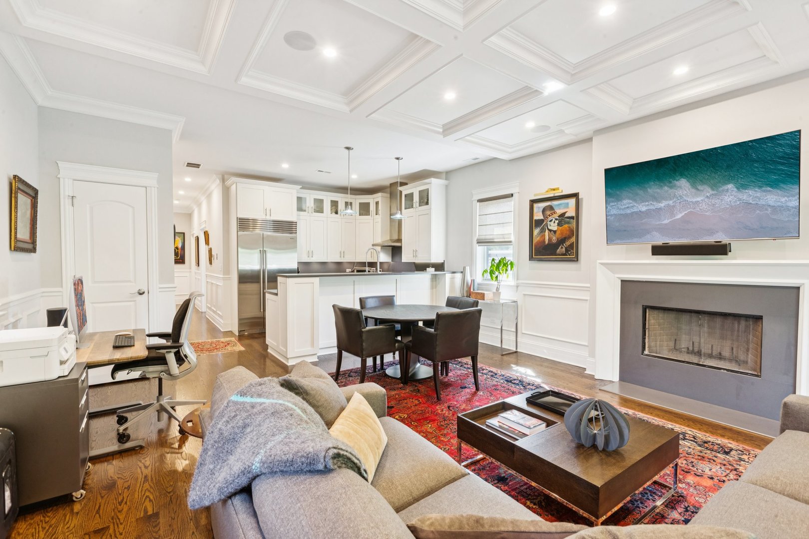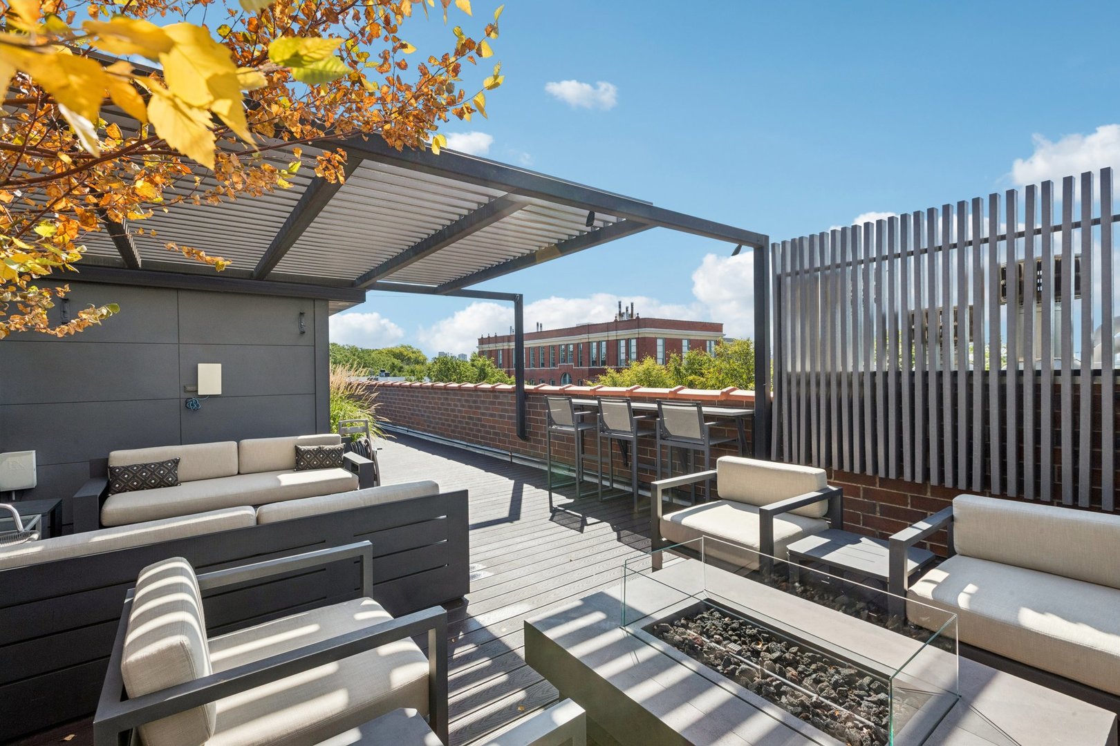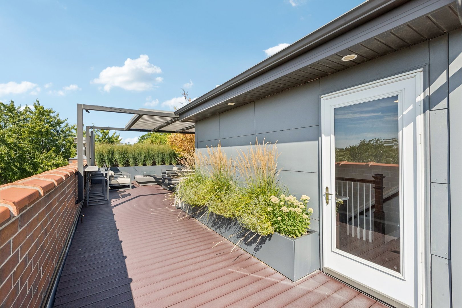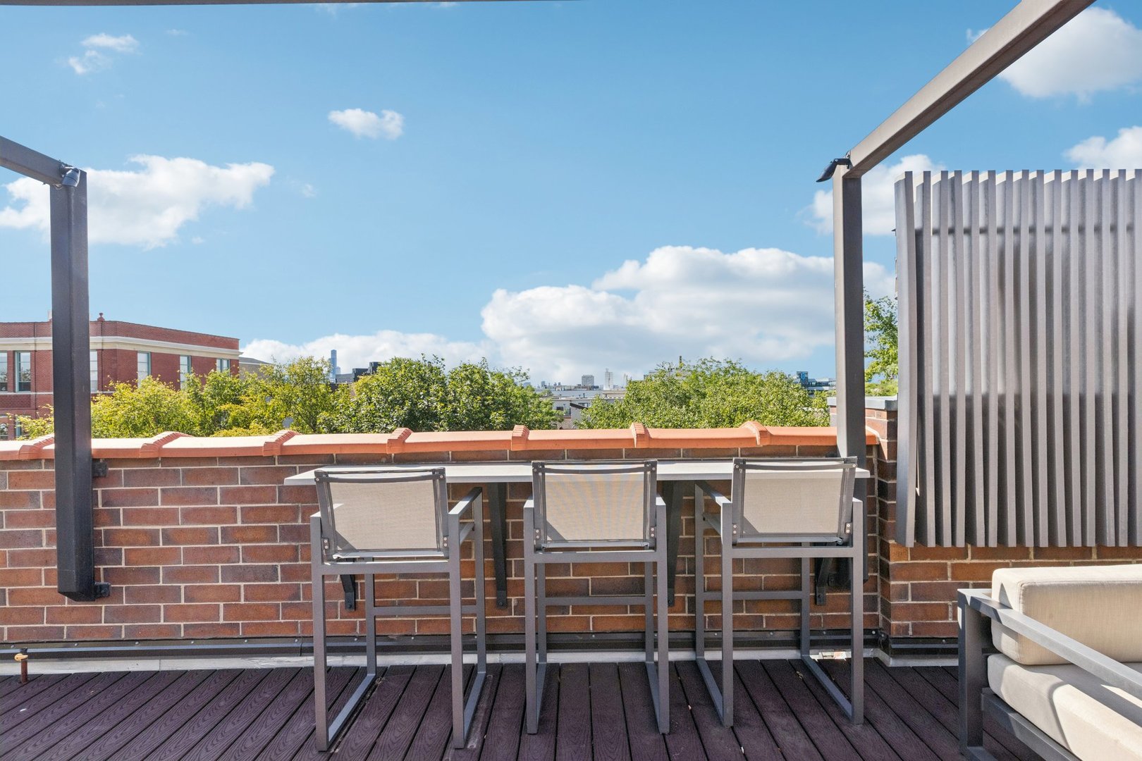 Welcome to 2307 N. Greenview! This refined 2-bedroom, 2-bath penthouse is situated in a boutique, newer-construction building within the coveted Oscar Mayer school district. It offers luxury finishes and rare outdoor space, and its deeper lot provides a larger-than-standard layout, complemented by concrete soundproofing between floors. This thoughtfully designed home features an expansive floor plan with rich millwork, tall coffered ceilings, and walnut hardwood floors. The bright and spacious living room comfortably accommodates a dining table and includes a gas fireplace, and a large front patio overlooking the treetops on Greenview Street. The living room seamlessly opens into a gorgeous white kitchen, which boasts quality Orchard Hill cabinetry (including glass-lit upper cabinets reaching the ceiling), a stainless Wolf Range with hood, an oversized Subzero refrigerator, an Bosch dishwasher, a built-in microwave, Quartz counters, pendant lighting, and a large double peninsula perfect for entertaining. Both bedrooms are generously sized. The king-sized primary suite offers a spa-like bath with classic white and gray marble subway tile, a double sink vanity, radiant heated floors, and a large walk-in steam shower with a rain shower head and body sprays, plus a walk-in closet. An interior staircase leads to a spacious loft area, equipped with a built-in dry bar featuring elegant quartz countertops, a convenient beverage fridge, and a large utility closet. The outdoor living spaces are truly unmatched, with front and rear terraces, plus a private rooftop deck showcasing sweeping city views. This oasis features low-maintenance Trex decking and is an ideal space for entertaining, complete with a custom pergola, planters with foliage, a fire pit, water access, and custom lighting, allowing the rooftop to be enjoyed day and night. Additional highlights of this home include in-unit laundry, surround sound speakers, garage parking, extra storage, and low HOA fees. This penthouse is located on a quiet, tree-lined, one-way block in Lincoln Park, offering a blend of everyday convenience and elevated style. Its amazing location provides easy access to all the city has to offer, including tremendous dining and nightlife in Lincoln Park, excellent shopping at North and Clybourn, and convenient public transit from both the Fullerton El stop and Metra. Additionally, you’ll find easy access to I-90/94, a variety of grocery stores, and multiple great parks just moments away. This home boasts many impressive features, and I encourage you to schedule a private appointment today to experience it for yourself. Central Vac, RH deck furniture, TV, sonos speaker system, and Webster Grill included in sale.