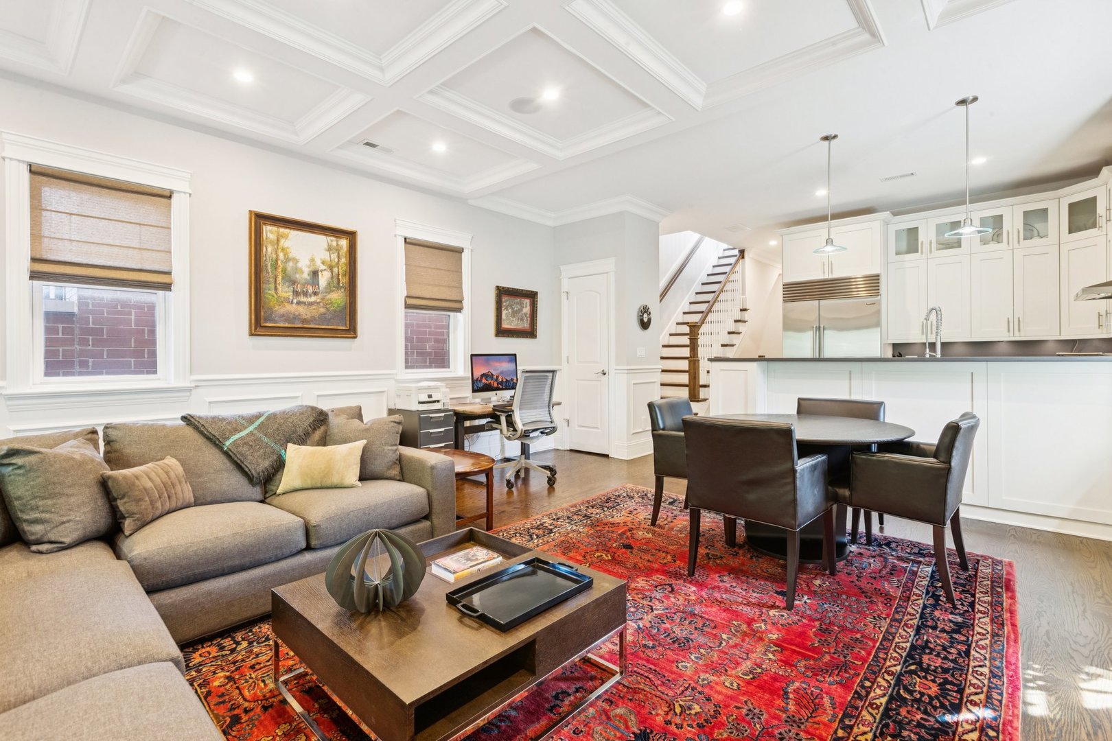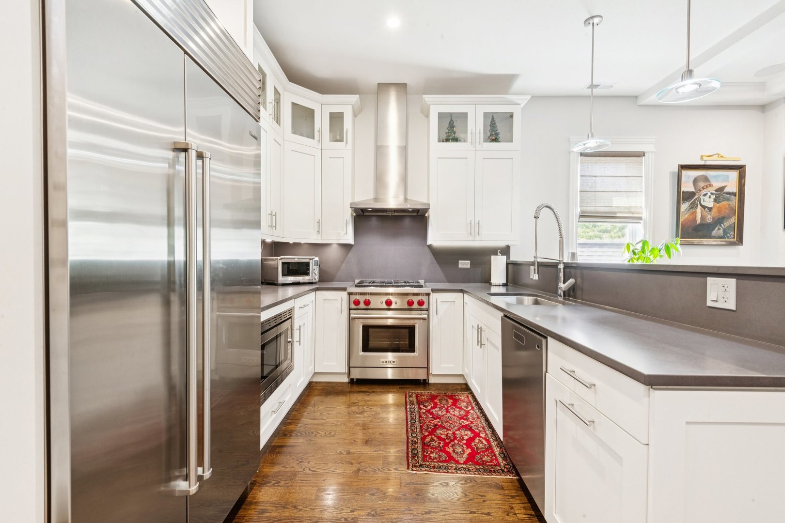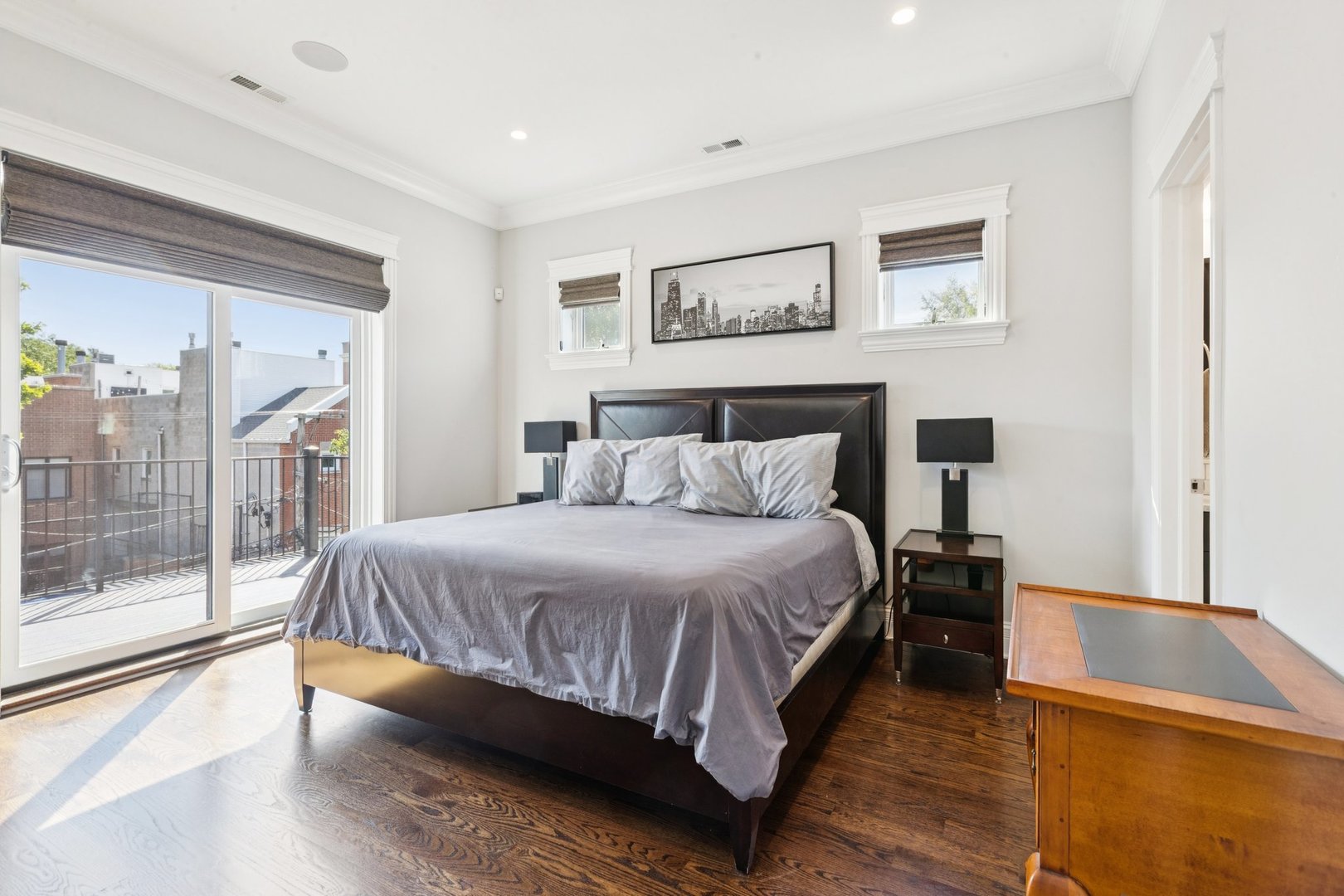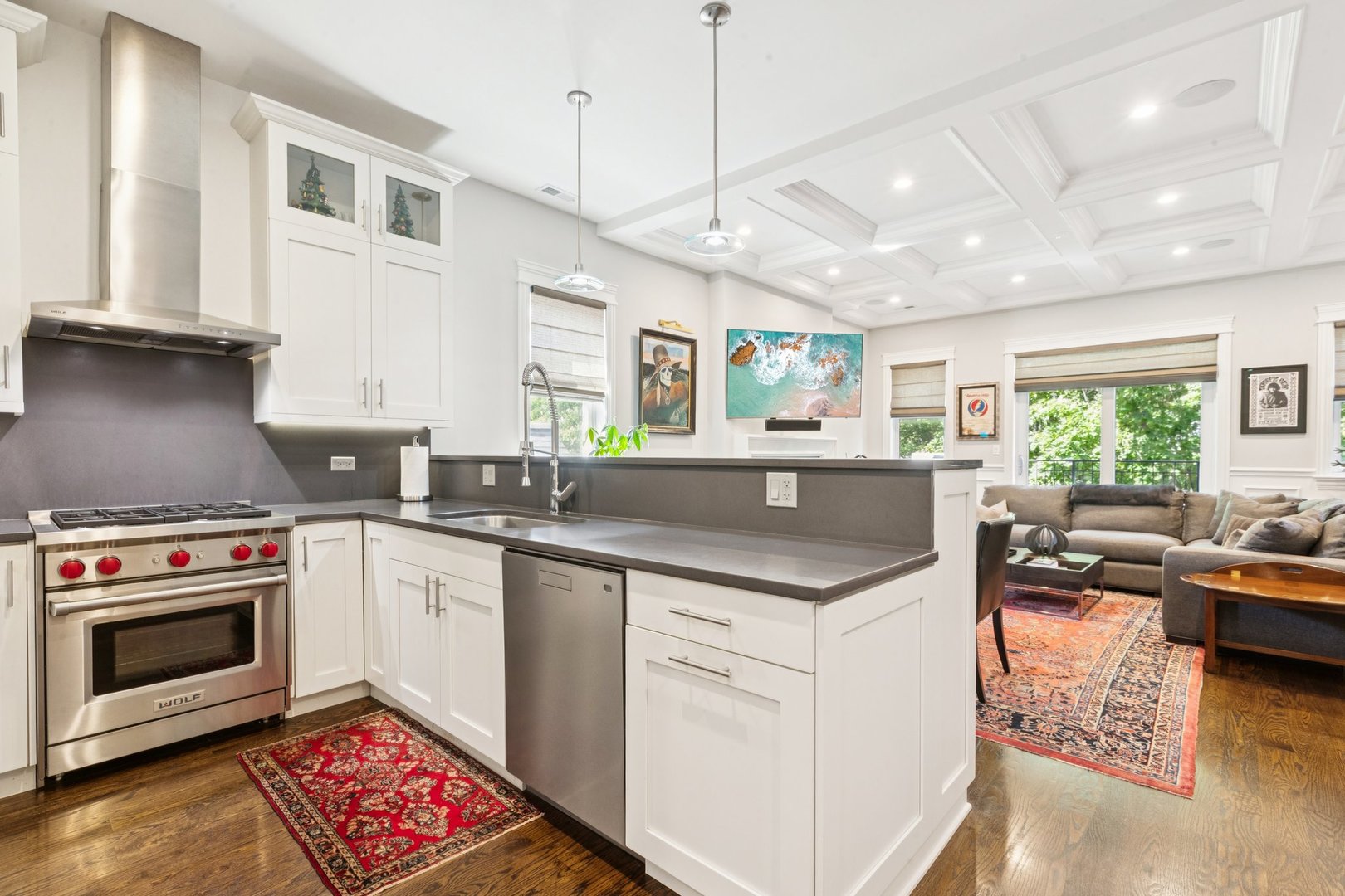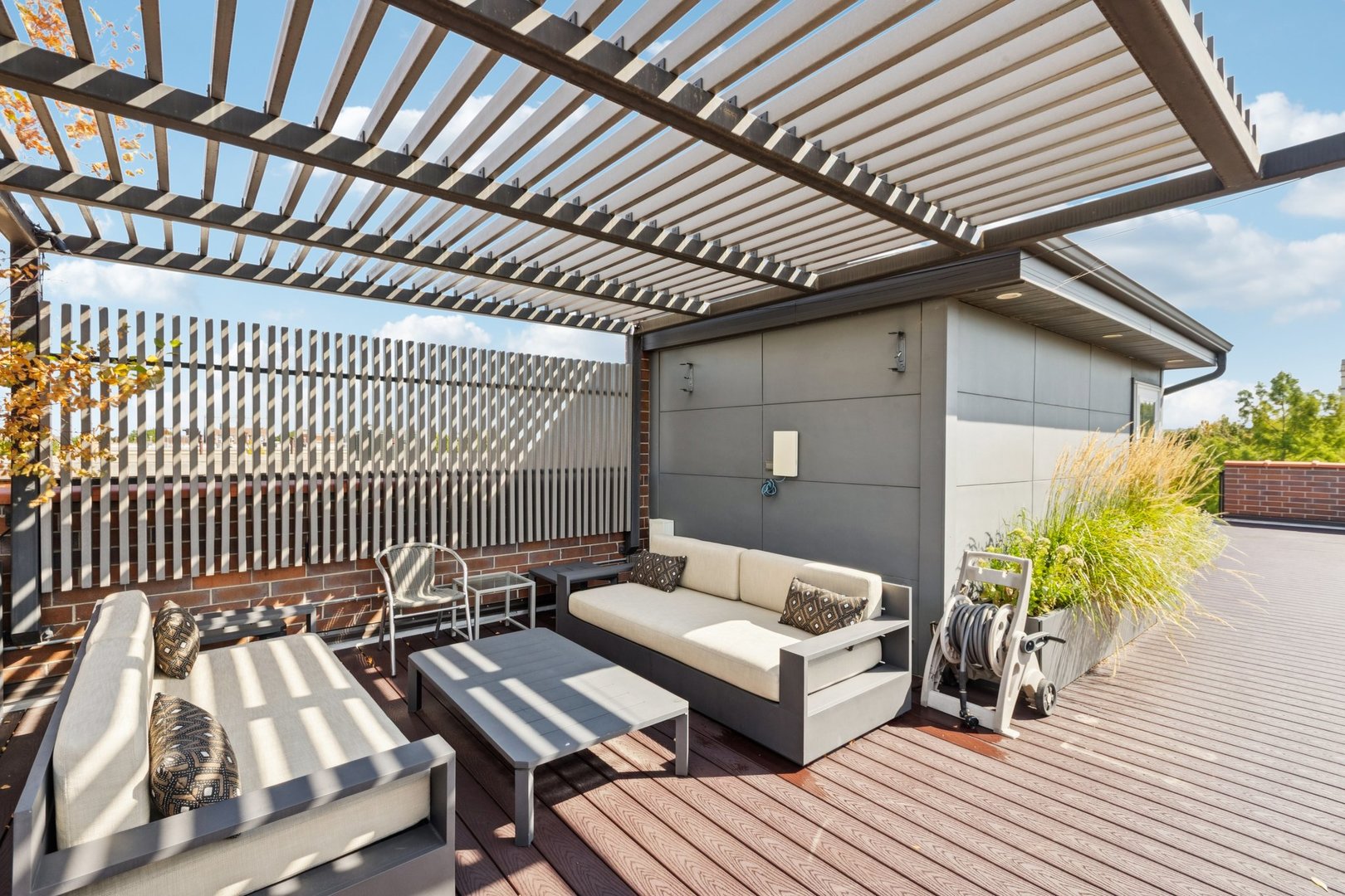 Welcome to 2307 N. Greenview! This refined 2-bedroom, 2-bath penthouse is situated in a boutique, newer-construction building within the coveted Oscar Mayer school district. It offers luxury finishes and rare outdoor space, and its deeper lot provides a larger-than-standard layout, complemented by concrete soundproofing between floors. This thoughtfully designed home features an expansive floor plan with rich millwork, tall coffered ceilings, and walnut hardwood floors. The bright and spacious living room comfortably accommodates a dining table and includes a gas fireplace, and a large front patio overlooking the treetops on Greenview Street. The living room seamlessly opens into a gorgeous white kitchen, which boasts quality Orchard Hill cabinetry (including glass-lit upper cabinets reaching the ceiling), a stainless Wolf Range with hood, an oversized Subzero refrigerator, an Bosch dishwasher, a built-in microwave, Quartz counters, pendant lighting, and a large double peninsula perfect for entertaining. Both bedrooms are generously sized. The king-sized primary suite offers a spa-like bath with classic white and gray marble subway tile, a double sink vanity, radiant heated floors, and a large walk-in steam shower with a rain shower head and body sprays, plus a walk-in closet. An interior staircase leads to a spacious loft area, equipped with a built-in dry bar featuring elegant quartz countertops, a convenient beverage fridge, and a large utility closet. The outdoor living spaces are truly unmatched, with front and rear terraces, plus a private rooftop deck showcasing sweeping city views. This oasis features low-maintenance Trex decking and is an ideal space for entertaining, complete with a custom pergola, planters with foliage, a fire pit, water access, and custom lighting, allowing the rooftop to be enjoyed day and night. Additional highlights of this home include in-unit laundry, surround sound speakers, garage parking, extra storage, and low HOA fees. This penthouse is located on a quiet, tree-lined, one-way block in Lincoln Park, offering a blend of everyday convenience and elevated style. Its amazing location provides easy access to all the city has to offer, including tremendous dining and nightlife in Lincoln Park, excellent shopping at North and Clybourn, and convenient public transit from both the Fullerton El stop and Metra. Additionally, you’ll find easy access to I-90/94, a variety of grocery stores, and multiple great parks just moments away. This home boasts many impressive features, and I encourage you to schedule a private appointment today to experience it for yourself. Central Vac, RH deck furniture, TV, sonos speaker system, and Webster Grill included in sale.