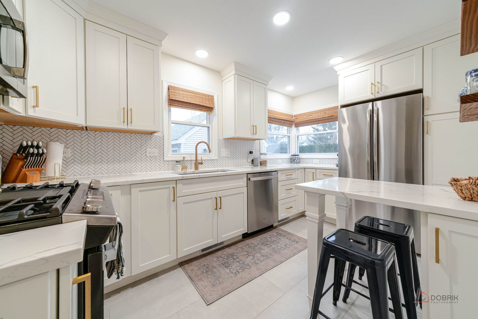 Rare opportunity to own a charming Cape Cod just steps from Downtown Grayslake, schools, walking paths, Central Park, and Jones Island Beach. This beautifully renovated 3-bedroom, 2-bath home has been thoughtfully designed for everyday functionality and comfort. Sun-filled living spaces feature a warm blend of wood and tile flooring throughout. Both interior and exterior spaces are designed for year-round enjoyment and comfort. Recent updates include a kitchen renovation (2021), restored and replaced second-floor hardwood floors (2021), privacy fence (2021), concrete patio (2022), new roof (2023), partial basement remodel (2023), and a fully updated first-floor bathroom (2024). Enjoy modern updates, timeless charm, and an exceptional location.