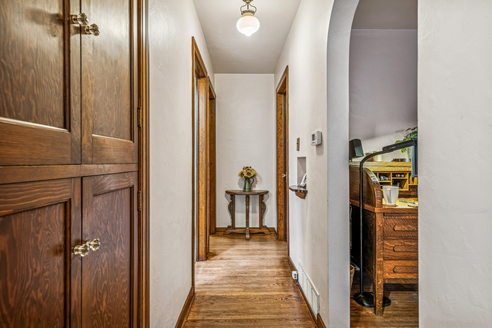 Move right in and enjoy this charming 1940’s single story home, cared for with love. The warm and inviting atmosphere is enhanced by hardwood floors in the main living areas and bedrooms. The largest bedroom has one full wall of cedar lined closets. You’ll find the windows and front and back doors are newer. The full basement offers ample storage or potential for finishing. The highlight is the private backyard which is fully fenced and creates a space for quiet reflection or for entertaining on the patio. With a one car garage this well maintained home offers the perfect blend of character and convenience. Don’t miss this rare opportunity. The two work benches and freezer in the basement will not be staying along with the refrigerator in the kitchen.