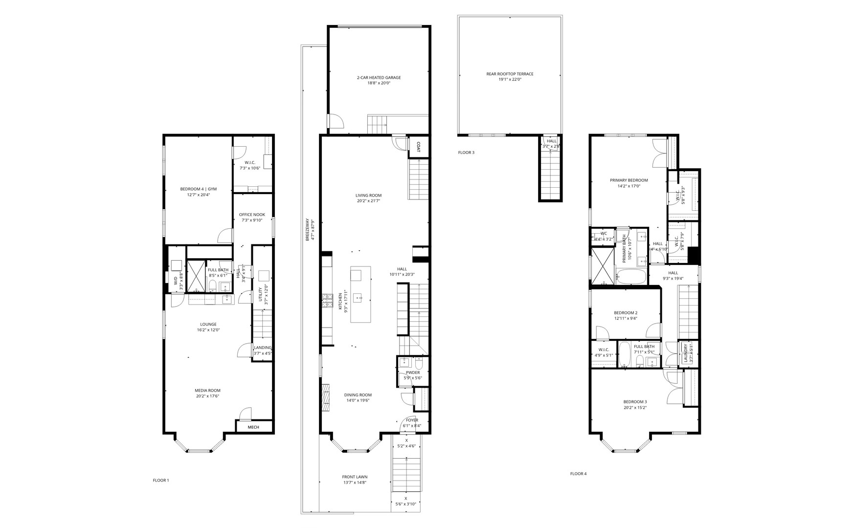Effortlessly beautiful and elegantly designed, this Bucktown single-family home is truly a breath of fresh air. Ideally situated on a charming one-way street, this home enjoys all the conveniences of the eclectic adjacent neighborhood while savoring the serene surroundings of a tree-lined, residential street. Designed for comfort, the home features enhanced acoustic windows and an all-brick exterior that create a peaceful retreat from the city’s energy. Highlights include a chef’s kitchen with high-end appliances, rooftop deck with pergola, heated 2-car attached garage, fully finished lower level with 125″ home theater and wet bar, two laundry areas on the upper bedroom level and lower level, abundant storage, and luxurious spa-like baths. Prepare to be wowed by the level of finishes and meticulous attention to detail throughout this incredible home. Blonde, white oak hardwood floors and motorized window shades can be found throughout the residence. Large windows facing three exposures, soaring ceilings, and an open floor plan allow an abundance of natural light to bathe and warm the living space. The dining room features a bay window overlooking the front yard, a gas fireplace, and a chandelier from Restoration Hardware. Conveniently located just off the dining room is a powder room with charcoal colored shiplap walls. The newly renovated kitchen features a custom-designed range hood with commercial-grade exhaust fan, Monogram double oven with 6-burner range and griddle, Sub-Zero refrigerator, and Bosch dishwasher and microwave. The countertops and oversized waterfall edge island with breakfast bar are made of honed Taj Mahal quartzite. A full wall of newly added storage cabinets with RH hardware creates extensive pantry space, while RH sconces and overhead lighting complete the sophisticated look. The kitchen seamlessly flows into the spacious, sun-drenched living room where you will find easy access to the attached, heated 2-car garage. Stairs from the living room lead to the composite roof deck with pergola, grill, plantings, and a water spigot. Three bedrooms are conveniently located on the second floor. The luxurious, light-filled primary suite has a graciously sized bedroom with large windows overlooking the roof deck, two walk-in closets plus an additional wall closet, and a spa-like ensuite bath with white herringbone wall tile, a double vanity with quartz counters, a soaking tub w/ convenient handheld, and an oversized walk-in shower with rain head, handheld, niche, and bench. The sprawling second bedroom could rival the size of any primary and features a bay window overlooking Montana Street, a chandelier, and a large, professionally organized closet. The sizable third bedroom enjoys a walk-in closet. A well-appointed, black and white, full bathroom with tub/shower stands in between the bedrooms and across the hall from a laundry room with oversized Samsung W/D. Downstairs, the fully finished lower level has heated flooring throughout and is an entertainer’s dream with a rec room outfitted with a 125″ movie screen and Sonos sound system. This recreational space features a full wet bar with wine fridge, quartz counters, and quartz backsplash. A substantially sized 4th bedroom (currently configured as a gym) has a spacious walk-in closet. An office nook provides the perfect place to work from home, and a full bath and a second laundry room with Samsung W/D complete the lower level. Restored exterior details include a turret and architectural shingled roof. Recent updates feature artificial turf in the front yard with a custom-designed, low-maintenance parkway featuring a cherry tree, river rock, and perennials. Ideally situated at the edge of Bucktown and close to Logan Square, the dining, shopping, and nightlife options are endless. Easy access to 90/94 and CTA trains and buses make it a breeze to get anywhere in the city quickly. Welcome home!