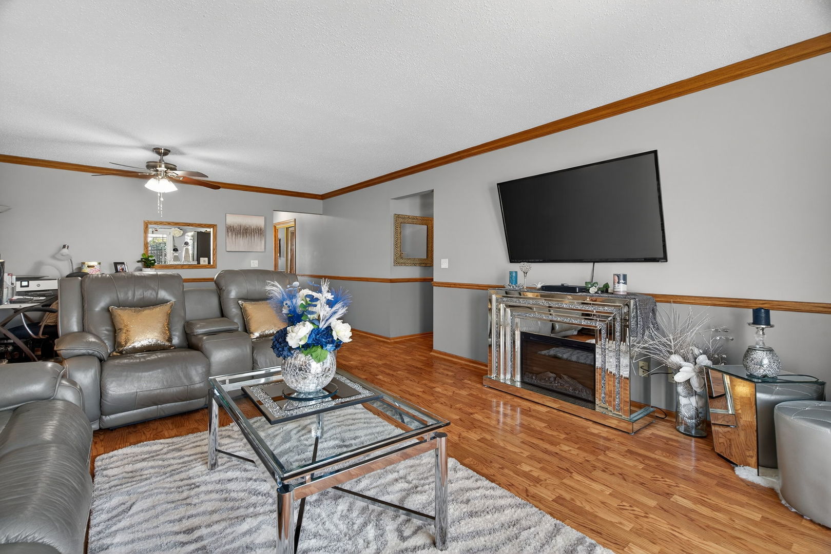 Beautiful all-brick ranch townhome in desirable Elwood! This well-maintained home offers a functional and flexible layout with a 2-car attached garage, accessible either through the foyer just inside the front door or through a convenient laundry/mudroom entrance. The spacious kitchen features an abundance of cabinetry, stainless steel appliances, and a large eating/dining area filled with natural light. The expansive living room (24×15) provides plenty of space for entertaining and includes a sliding glass door leading to a large backyard deck with peaceful views of the yard and Children’s Garden at Lloyd Erickson Park, located just across the street. The main level also includes a primary bedroom with private en-suite bath, an additional bedroom, a full hall bath, and a laundry/mudroom. The fully finished basement offers exceptional additional living space, including a family room, bedroom, office/workout room (potential 4th bedroom), full kitchen, full bath, and utility/storage room-ideal for related living, guests, or a live-in caretaker. Major updates include newer windows (2020) and roof (2020). HOA covers lawn care and snow removal, making this home truly low-maintenance. A rare opportunity for ranch-style living with versatile space in a fantastic location!