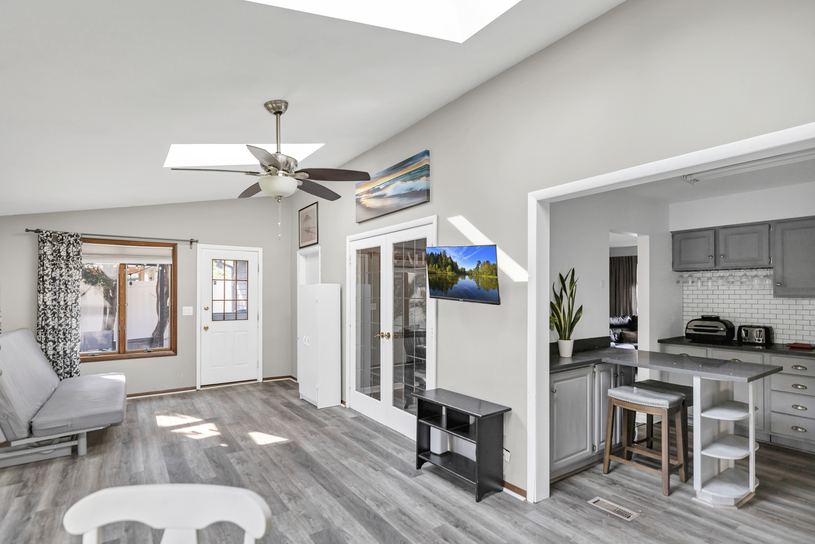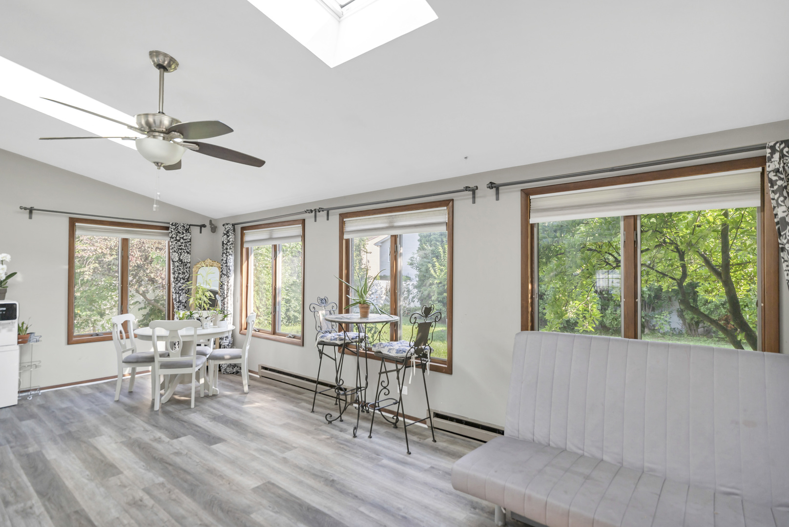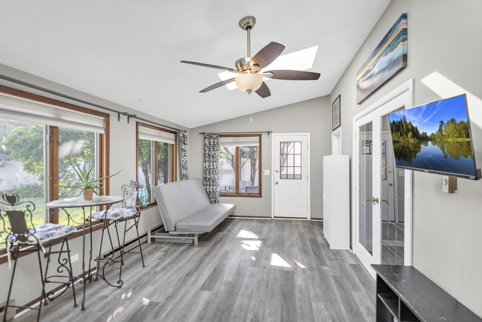 Stunning updated 3-bedroom split level nestled in the heart of Hanover Park. This home offers comfort, style, convenience, and cozy living at every turn. The inviting living room features a large picture window that fills the space with natural light, complemented by new laminate flooring, and flows seamlessly into the dining area with grand French doors leading to a beautiful four seasons room. This gorgeous addition boasts vaulted ceilings, adjustable skylights, and plenty of room to gather. Step outside to relax on the cement patio under the charming pergola while enjoying the privacy of the fenced yard with low-maintenance vinyl fencing. The completely updated kitchen is a chef’s delight with stainless steel appliances, white subway tile backsplash, glittering quartz countertops, a coffee bar, and a breakfast bar for casual meals. Upstairs, you’ll find a spacious primary bedroom with a private en-suite bath, two additional bedrooms, and another full bathroom. The English basement downstairs offers even more living space and can be used as a 4th bedroom that includes a walk-in closet. With a half bath, storage, and a laundry area with sink, this space can even be used as in-law suite. Ideally located near shopping, restaurants, parks, Metra, and major highways. This home perfectly blends modern updates with everyday convenience, and is ready for you to move in and start making memories!