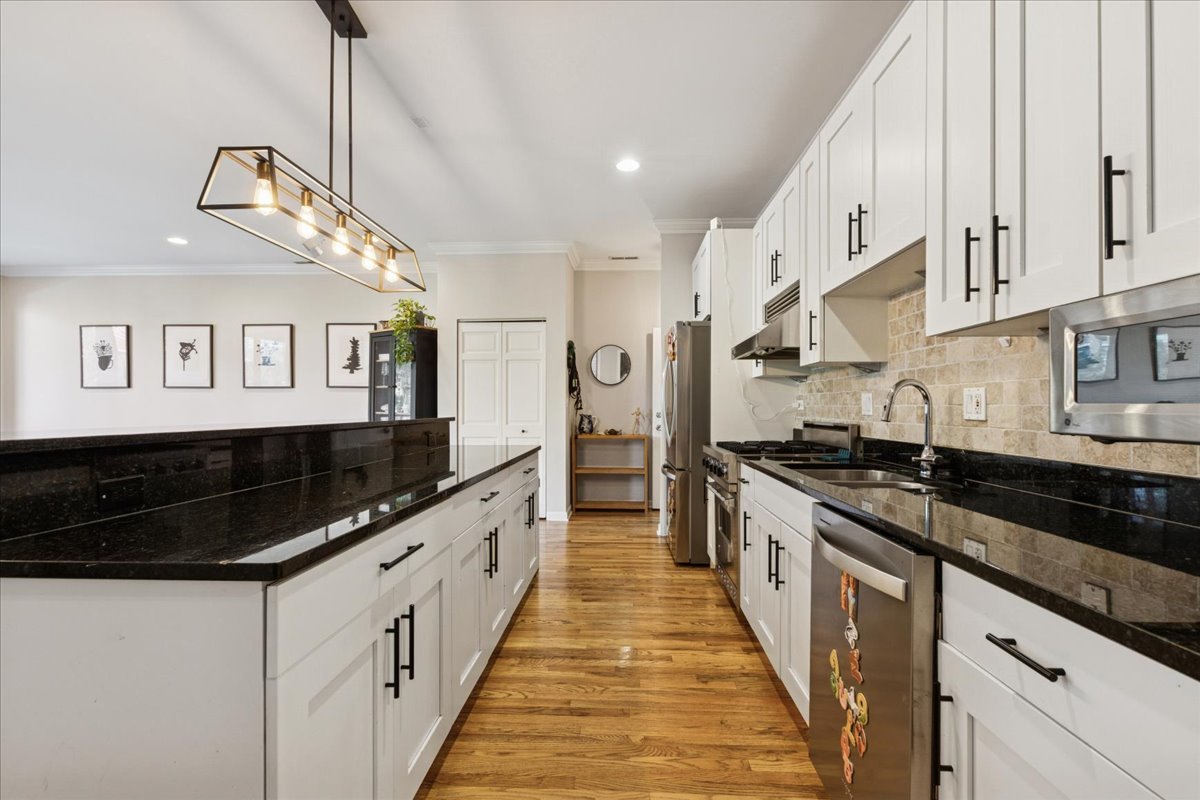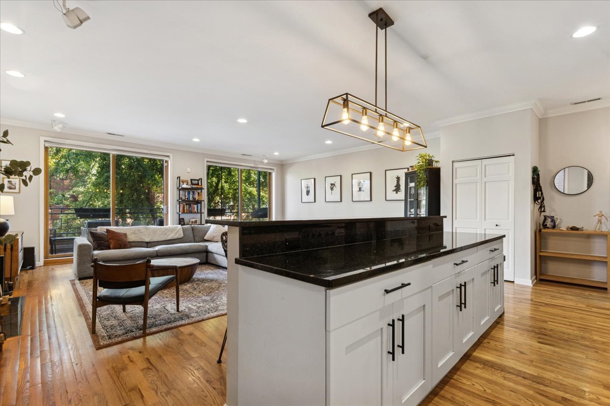 Check out this stunning 2-bedroom, 2-bathroom extra wide condo perfectly nestled in the heart of Bucktown! Step inside to a bright, airy space with an extra large open-concept living and dining area that glows with natural light pouring through oversized windows. Gorgeous hardwood floors flow throughout, complemented by a cozy fireplace that makes this the perfect spot for relaxing or entertaining. The kitchen features sleek stainless steel appliances (including a brand-new fridge and dishwasher), gleaming granite countertops, and plenty of cabinetry. Plus, a breakfast bar makes for an easy hangout spot. The primary suite is a true retreat, with a spacious walk-in closet and a luxurious en-suite bath boasting dual vanities, a soaking tub, and a separate glass-enclosed shower. The second bedroom is equally spacious, ideal for guests, a home office, or a creative space, and has access to another beautiful full bath. Even better-you get two private outdoor spaces: a large front balcony perfect for lounging, grilling, or entertaining, and a second private balcony off the back for extra flexibility. Additional highlights include in-unit laundry with a brand-new washer/dryer, parking and surround sound system. Just steps away from the iconic 606 Trail, shops, top-tier dining, and easy public transportation, this place has it all.