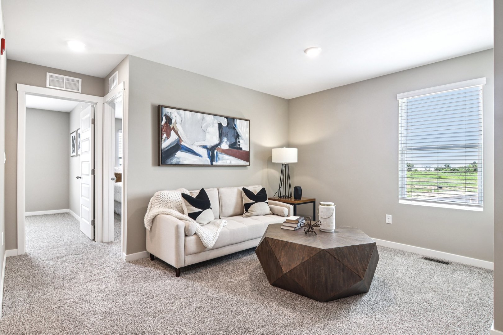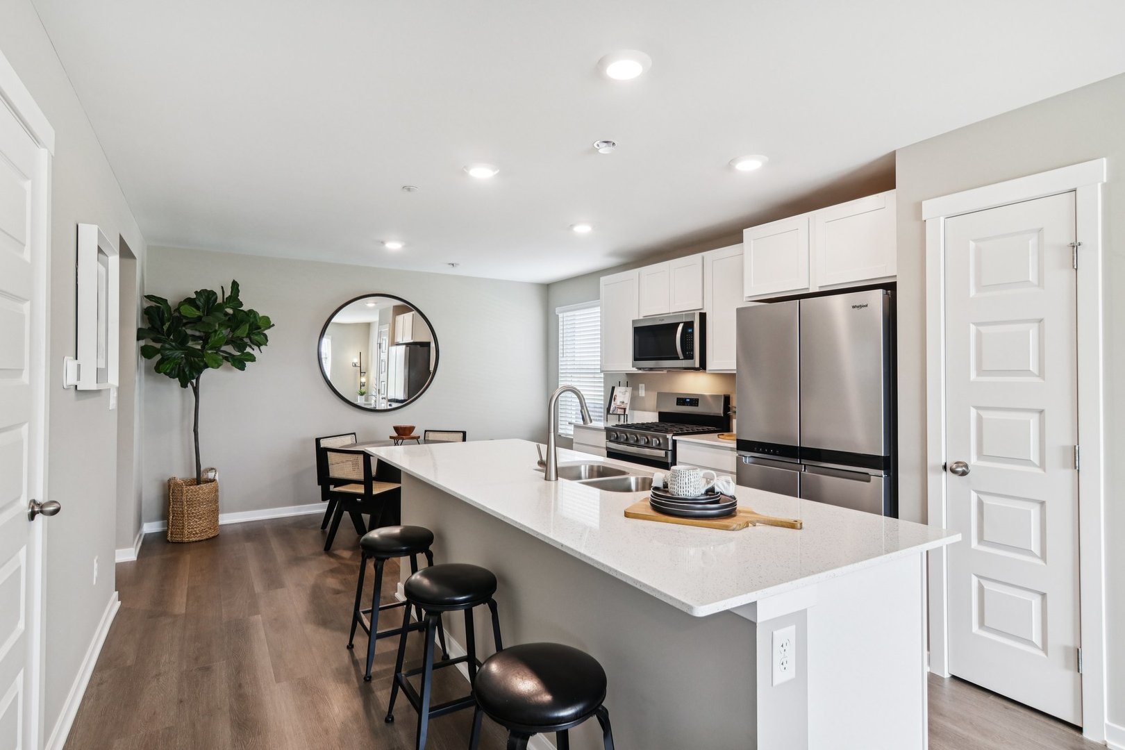 Discover yourself at 2320 Noble Lane, Yorkville, IL, a beautiful new townhome in our Grande Reserve community. This townhome will be ready for SPRING move-in! Homesite includes a fully sodded yard that is maintained throughout the year as well as snow removal in the winter. The Fairfax townhome plan offers over 1,500 square feet of living space with 3 bedrooms plus a loft, 2.5 baths, a mudroom and a 2-car garage. As soon as you step inside you are greeted by an open and airy space featuring 8ft ceilings and loads of natural sunlight. The expansive kitchen is centrally located providing separation between your living and dining room. Additionally, your kitchen features designer 36-inch cabinetry, a spacious island with quartz countertops, and pantry. Heading upstairs you will enjoy your large primary bedroom with a walk-in closet and connecting en suite bathroom. The rest of the upper level features a laundry room, secondary bedrooms with a full second bath, and linen closet. Impressive innovative ERV furnace system and a tankless water heater round out the amazing features this home has to offer! All Chicago homes include our America’s Smart Home Technology, featuring a smart video doorbell, smart Honeywell thermostat, smart door lock, Deako smart light switches and more. Exterior and interior photos are of similar home and model home. Actual home built may vary.