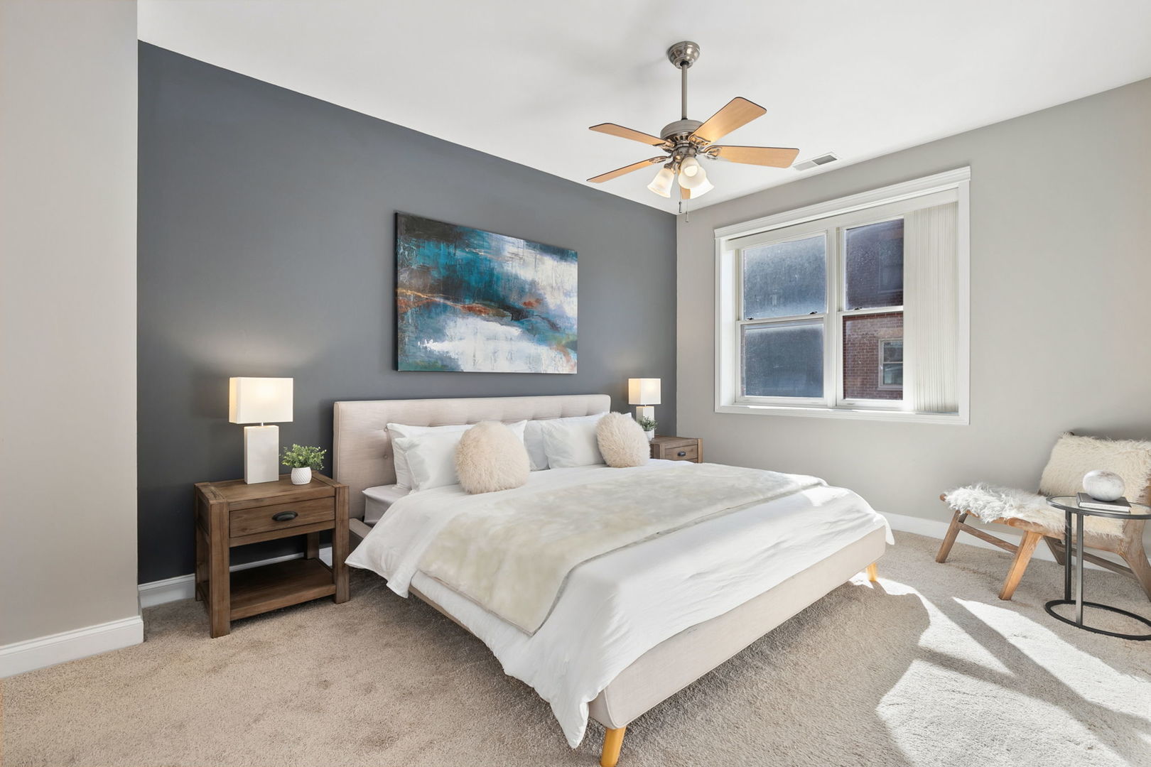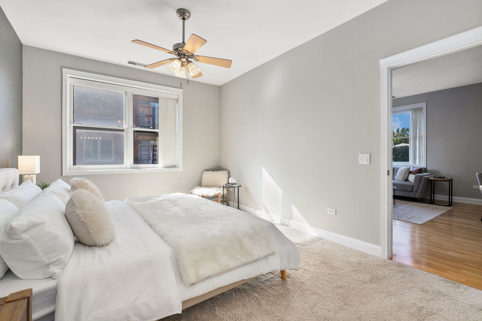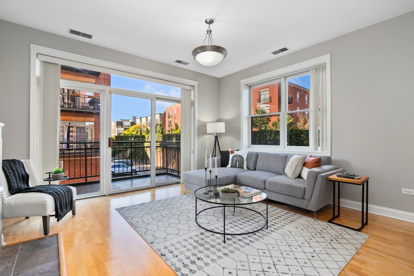 Welcome home to this sun-drenched 2 bed, 2 bath condo in one of Bucktown’s most desirable boutique elevator buildings. Enter through the formal foyer with large closet that enters into to the spacious open living concept that leads to a great sized balcony that overlooks the 606 which is perfect for entertaining. The U-shaped kitchen features stainless steel appliances, granite counter tops, and stone backsplash. The kitchen opens up to the living space that allows for enough room for full dining table, large sectional, and is highlighted with a gas fireplace. This corner unit features desirable split floor-plan with a huge master suite that includes a walk-in closet and nice size en-suite bathroom. The second bedroom is a great size that allows tons of flexibility. Secured gated parking space for $15,000 and additional storage for added connivence. The professionally managed association is well run with beautiful landscaping, and a shared private courtyard space. Enjoy the unbeatable location just steps from Bucktown’s best shopping, dining, coffee shops, and nightlife, two blocks to the Blue Line and easy access to the 606 Trail at Milwaukee Ave.